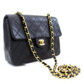 CHANEL Mini Square Small Chain Shoulder Bag Crossbody Black Quilt k85