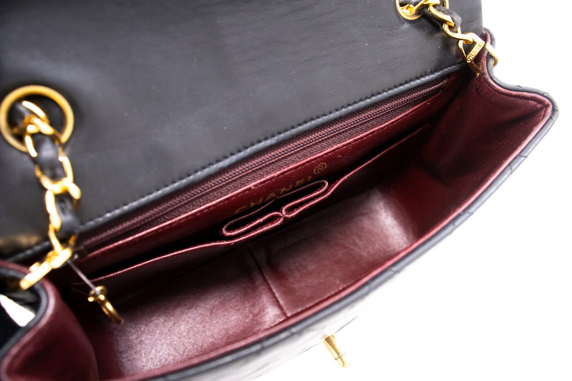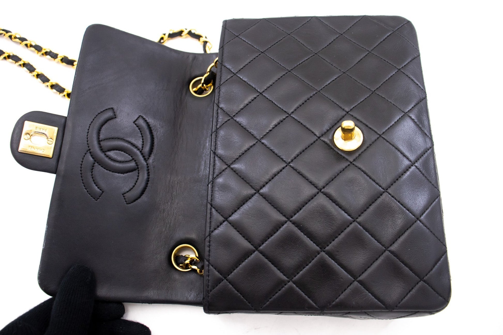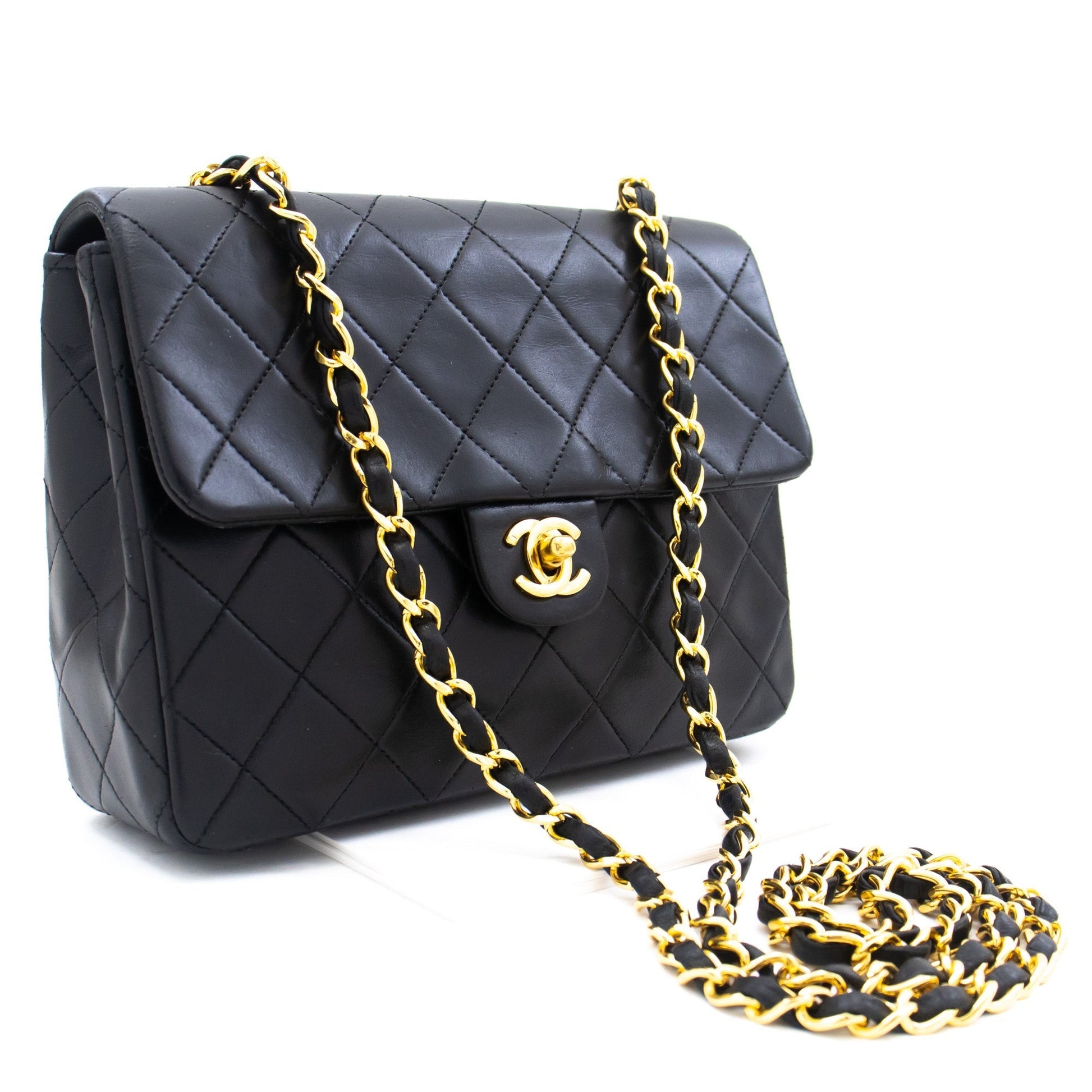An authentic CHANEL Mini Square Small Chain Shoulder Bag Crossbody Black Quilt k85 This item is Vintage / Classic. The year of manufacture would be 1989-1991.