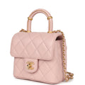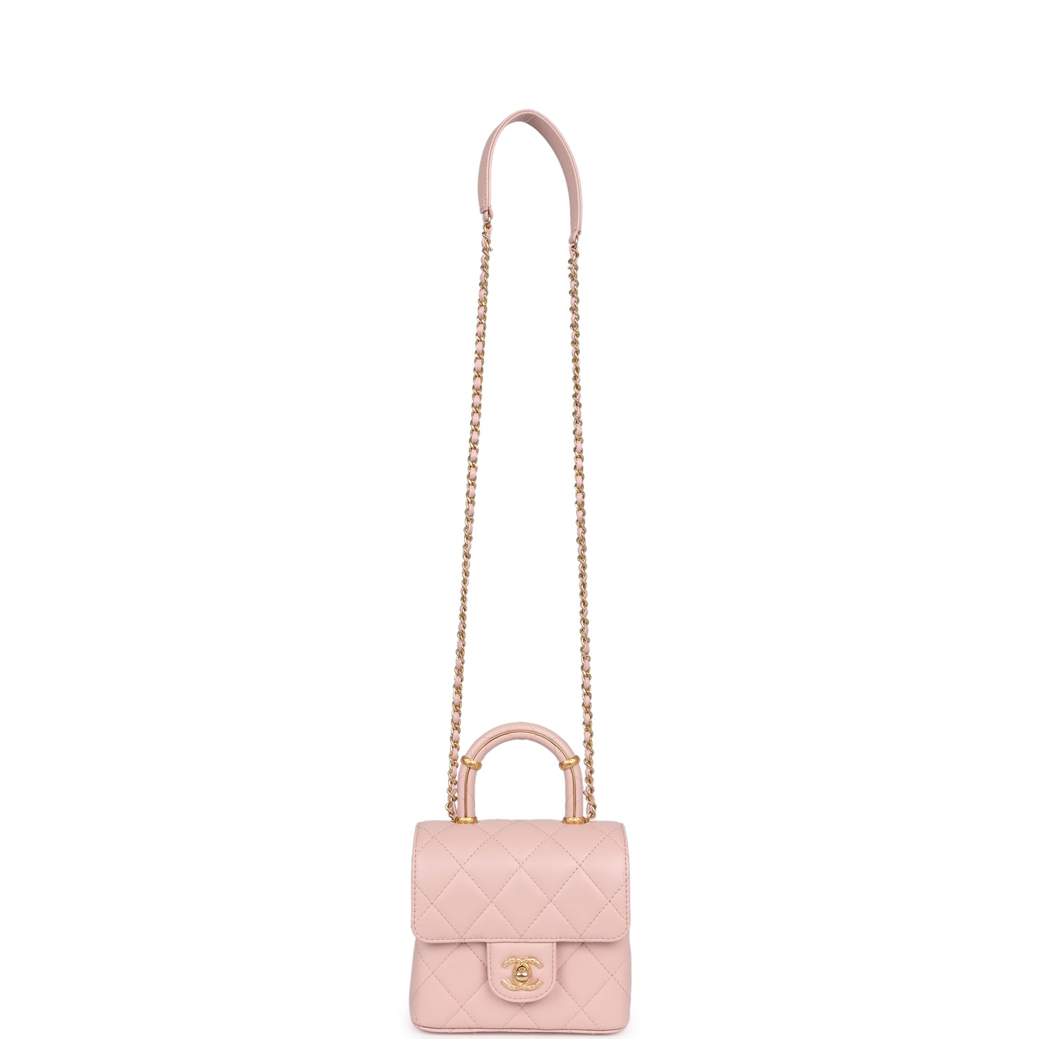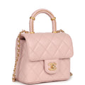 Chanel Mini Square Top Handle Flap Light Pink Lambskin Antique Gold Hardware