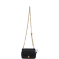 This Mini Sweetheart Crush flap bag is in black caviar leather with antique gold tone hardware, a front flap with CC turnlock closure, half moon back pocket and an interwoven antique gold tone chain link adjustable crossbody strap with a heart crush stopper.