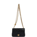 This Mini Rectangular Sweetheart Crush Flap Bag is in black shiny calfskin leather with antique gold tone hardware, tonal stitching, a front flap with CC turnlock closure, half moon back pocket and an interwoven antique gold tone chain link adjustable crossbody/shoulder strap with a heart shape crush stopper.