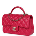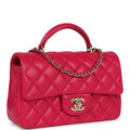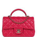 Chanel Mini Top Handle Rectangular Flap Bag Fuchsia Lambskin Light Gold Hardware