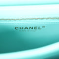 The interior is lined in Turquoise leather and features two compartments and a zipper pocket with Chanel pull.