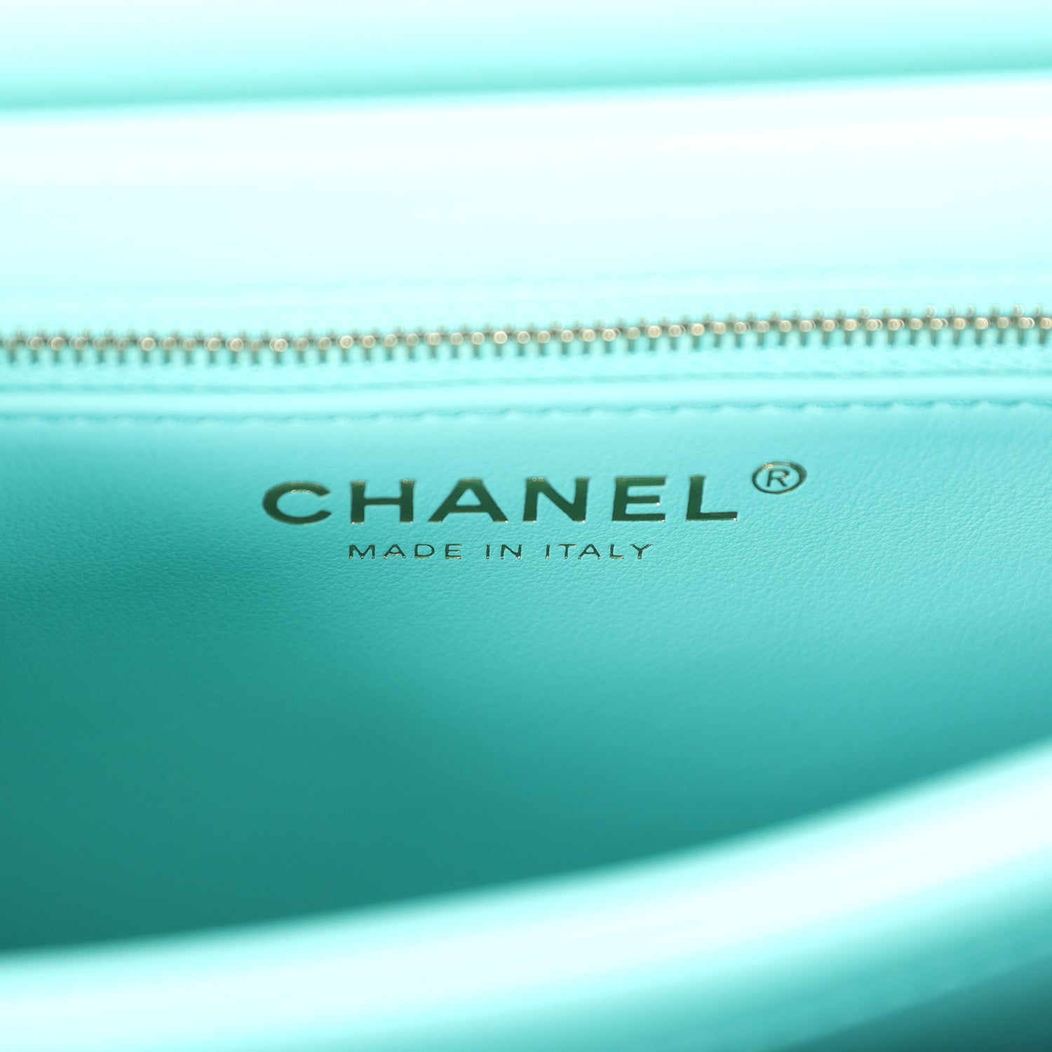 Chanel Mini Trendy CC Flap Bag Turquoise Lambskin Light Gold Hardware