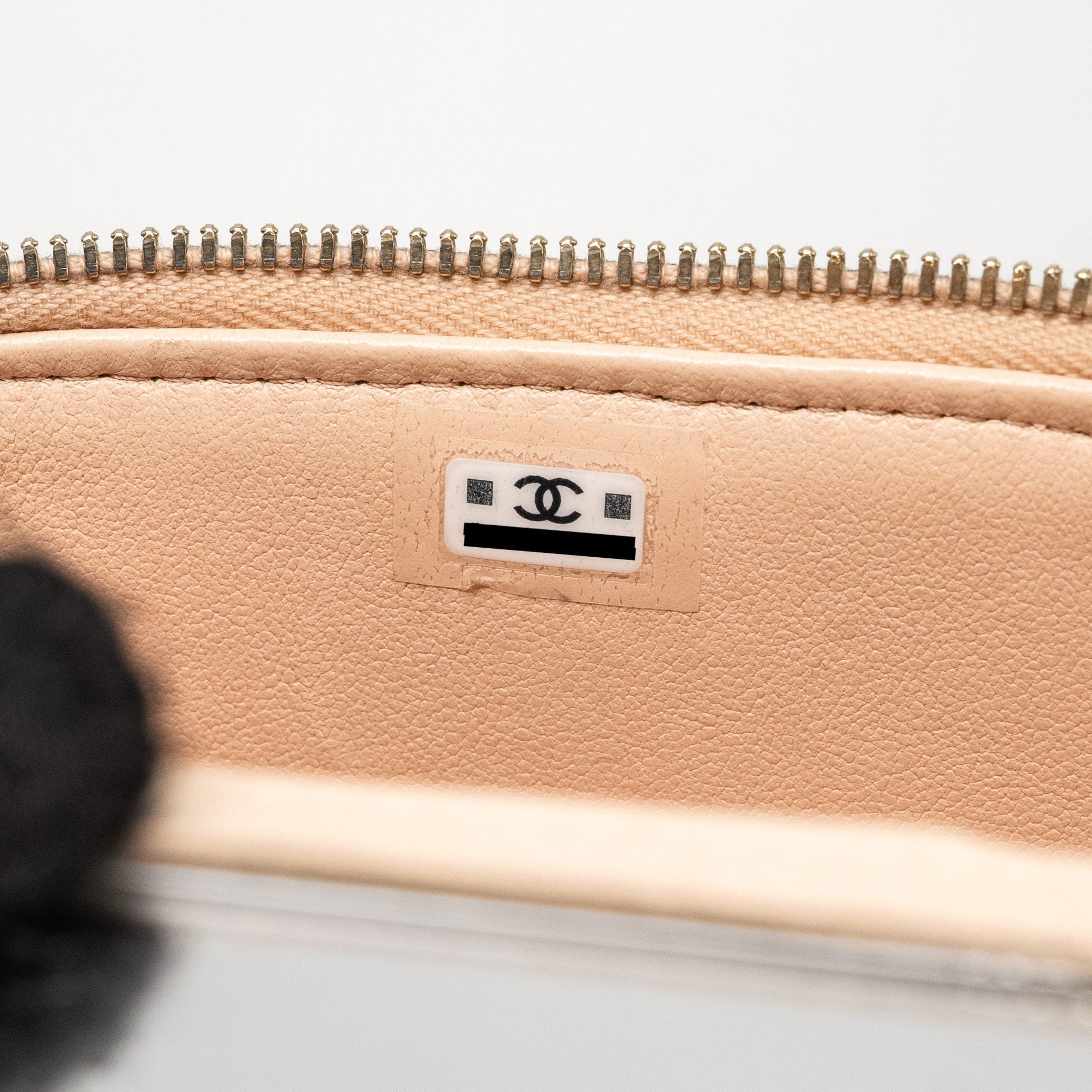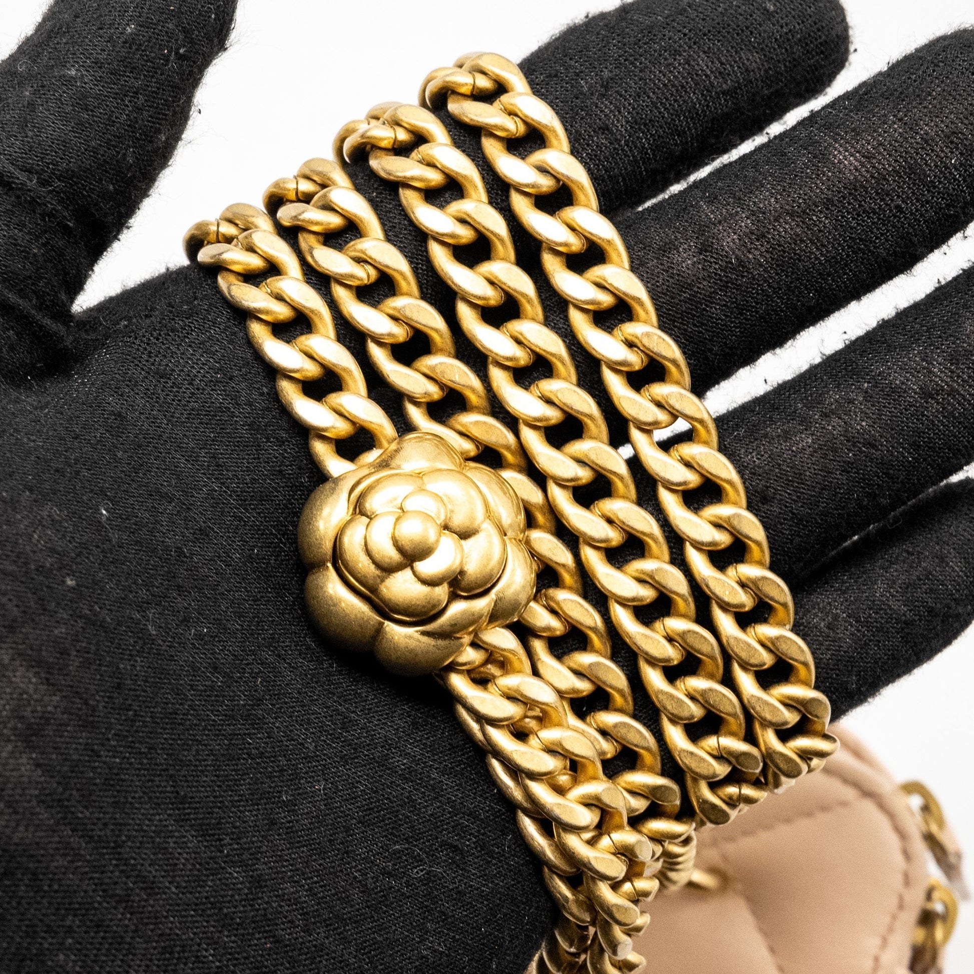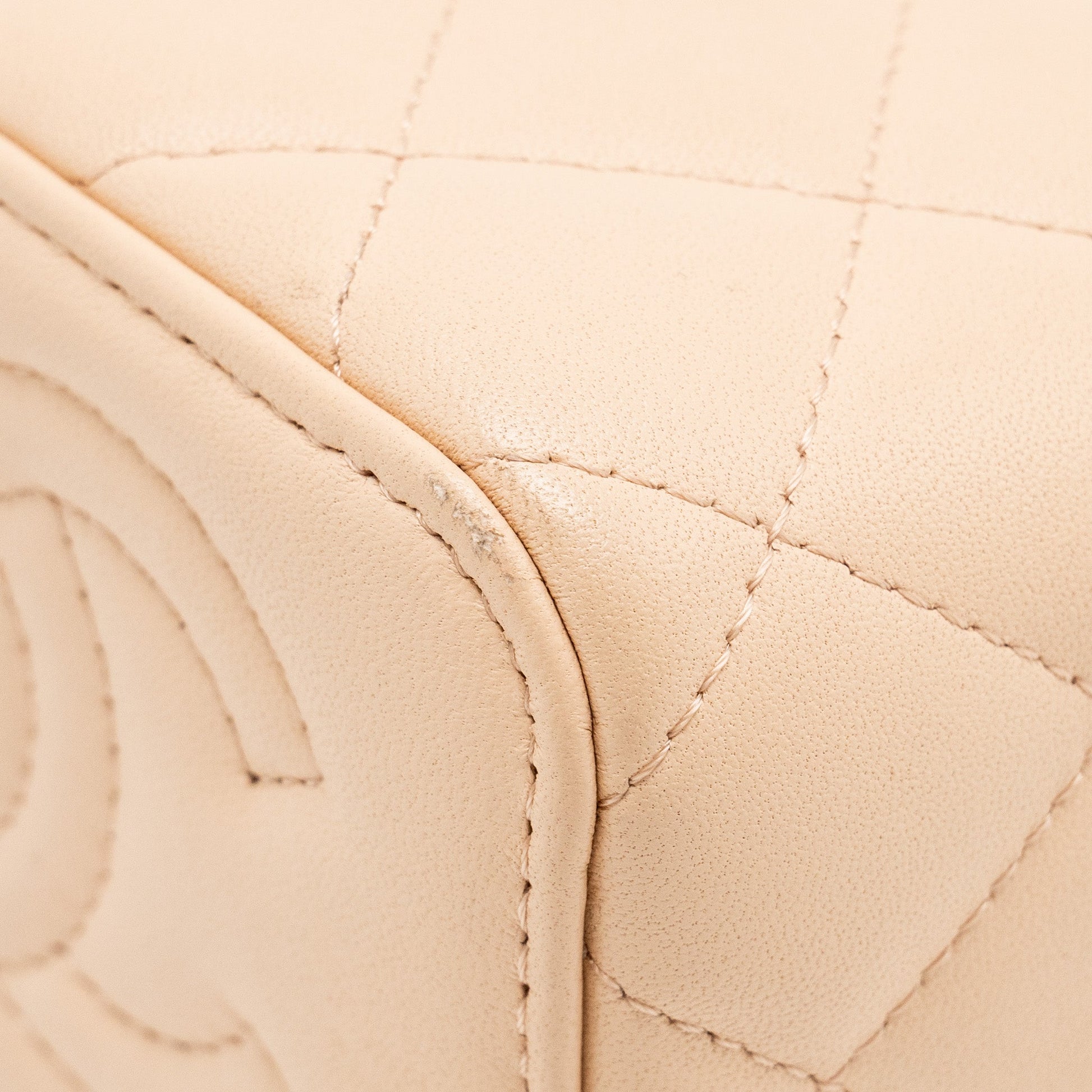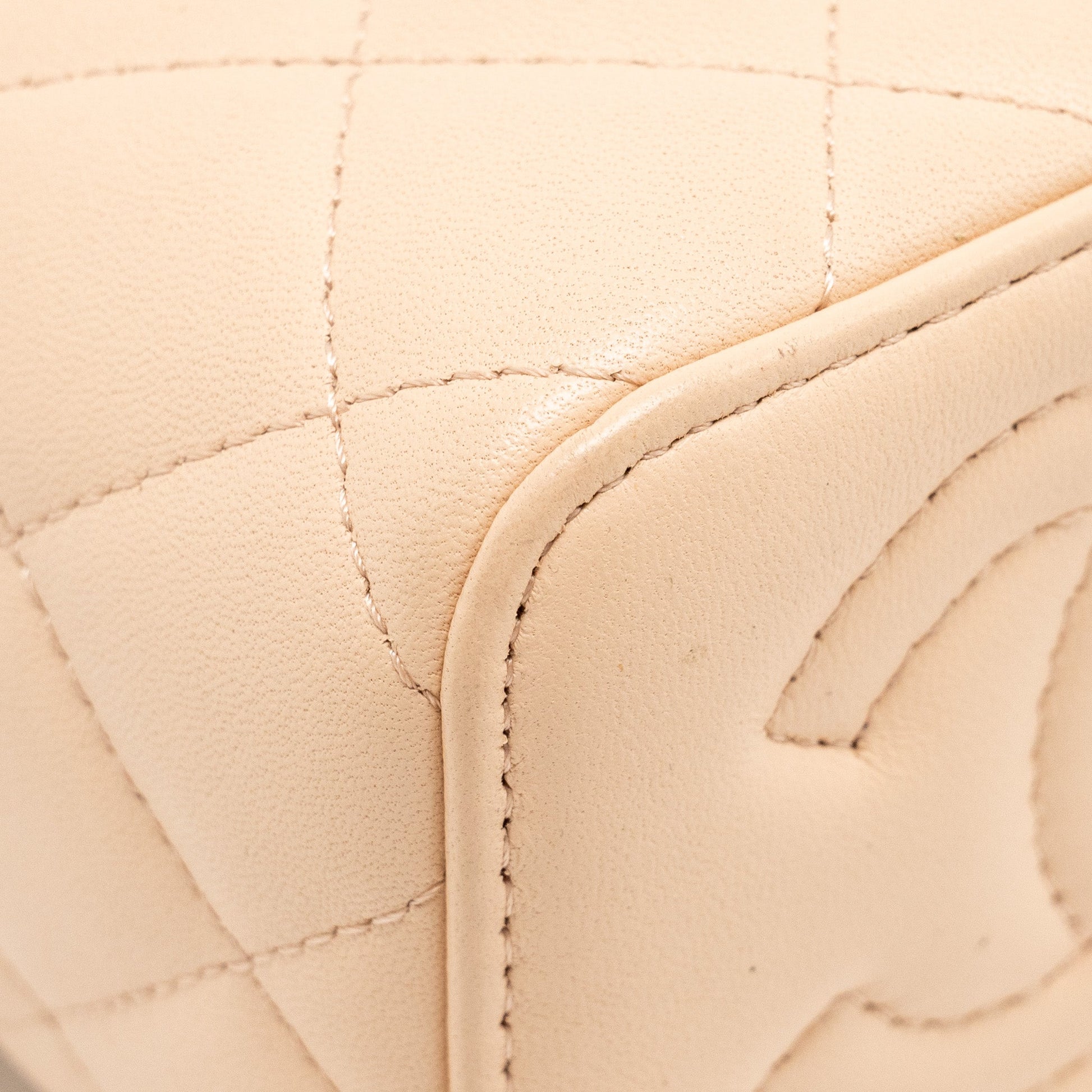 Chanel Mini Vanity Case With Camellia Adjustable Chain Lambskin Beige GHW (Microchip)