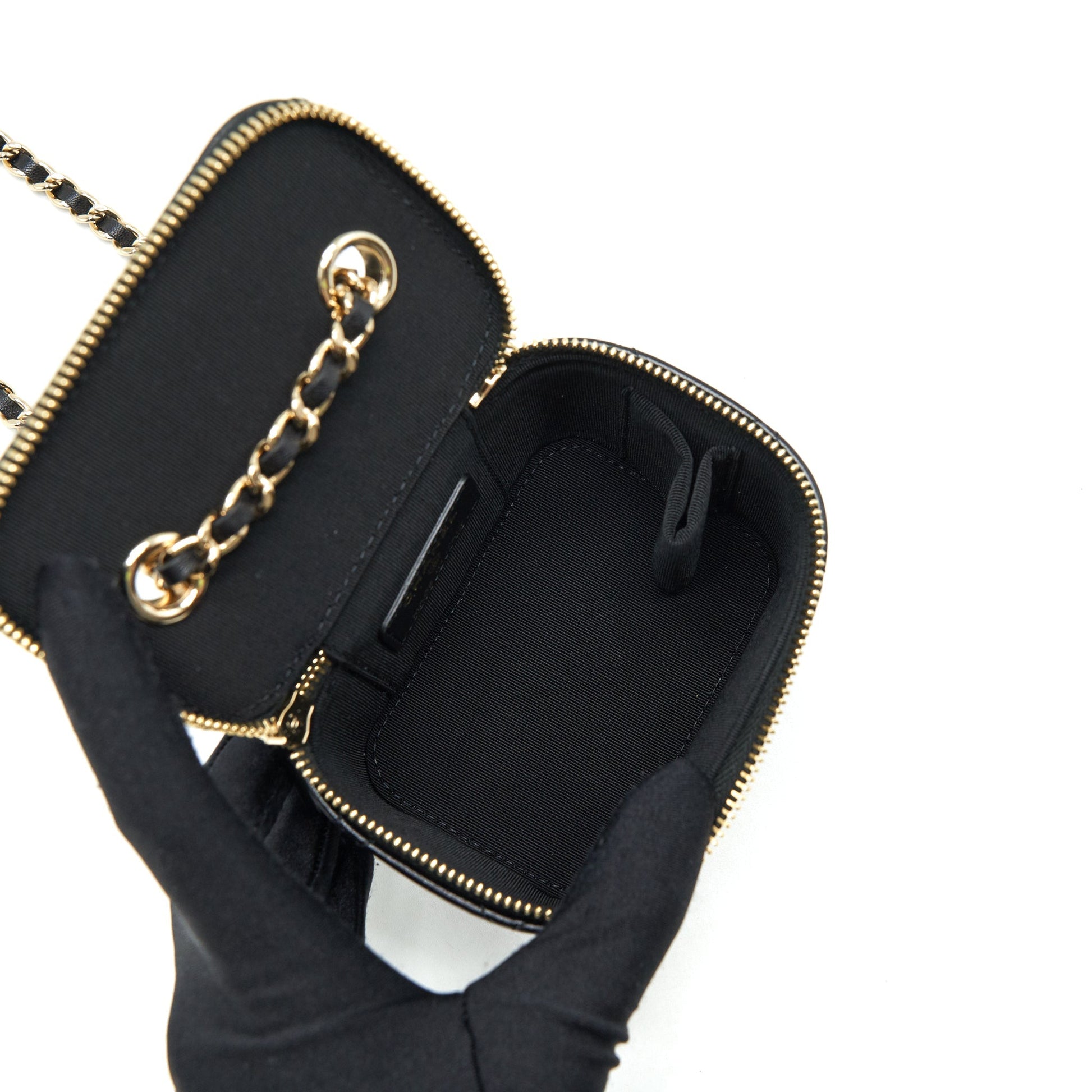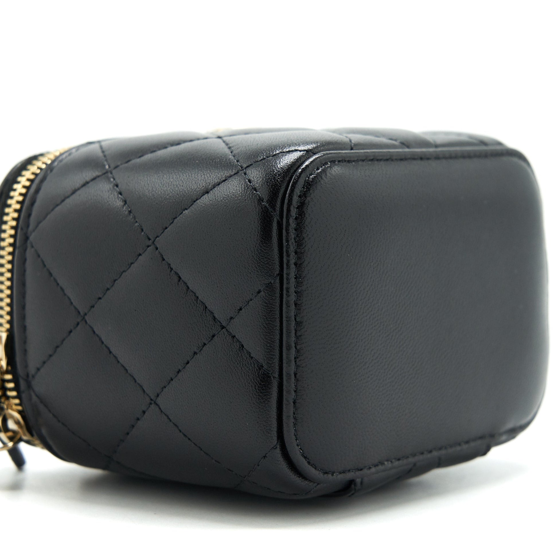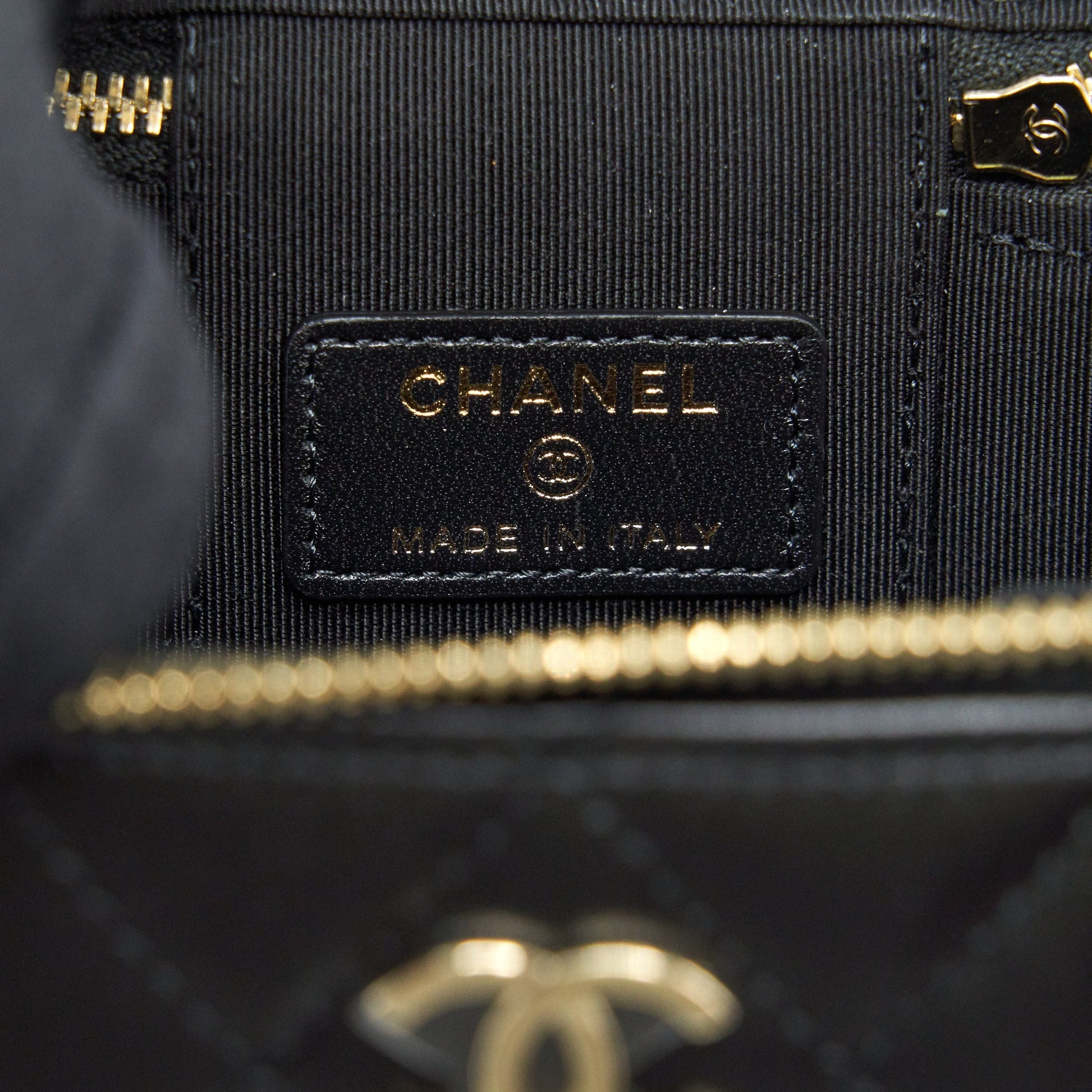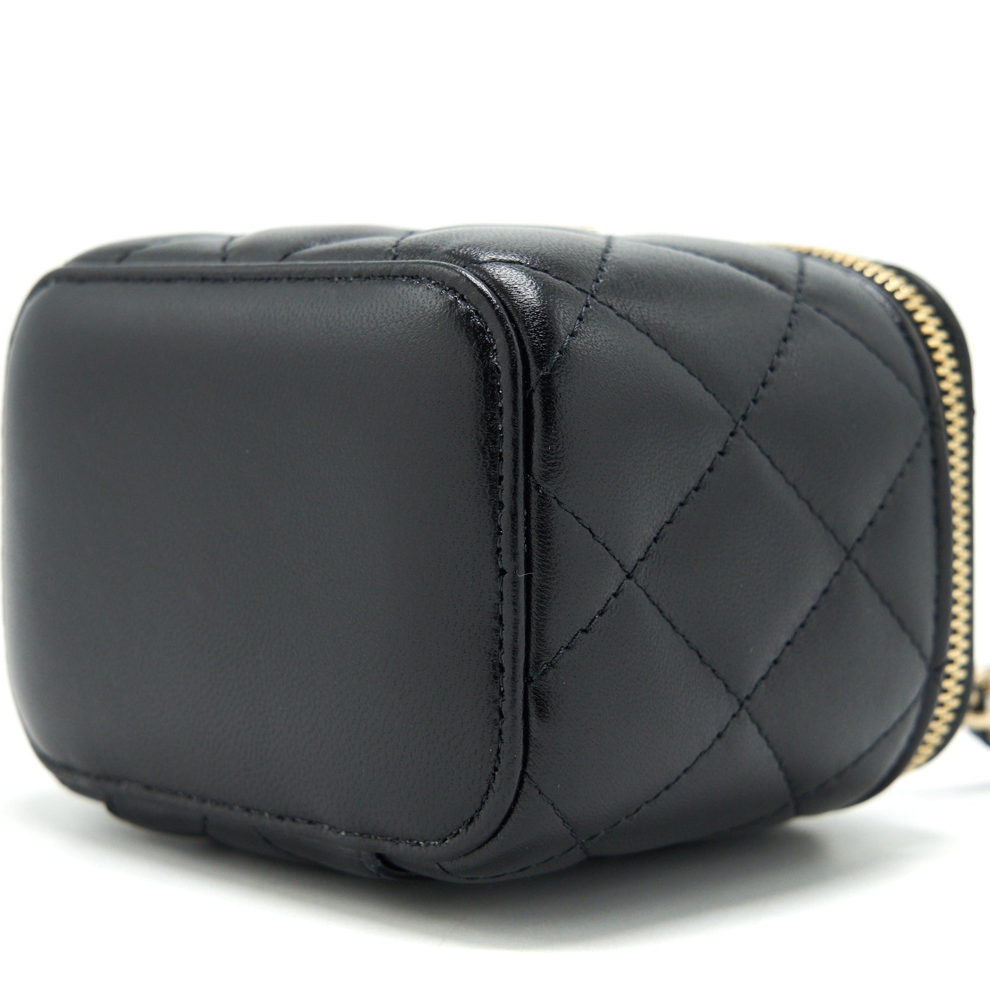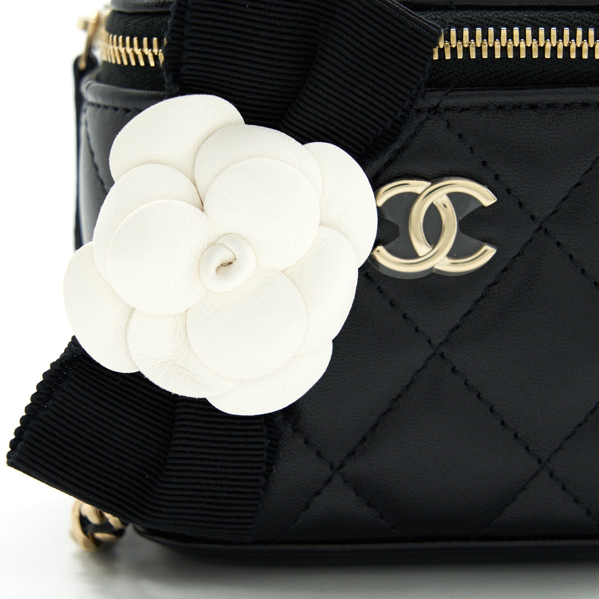 Chanel Mini Vanity With Camellia Chain Lambskin Black LGHW