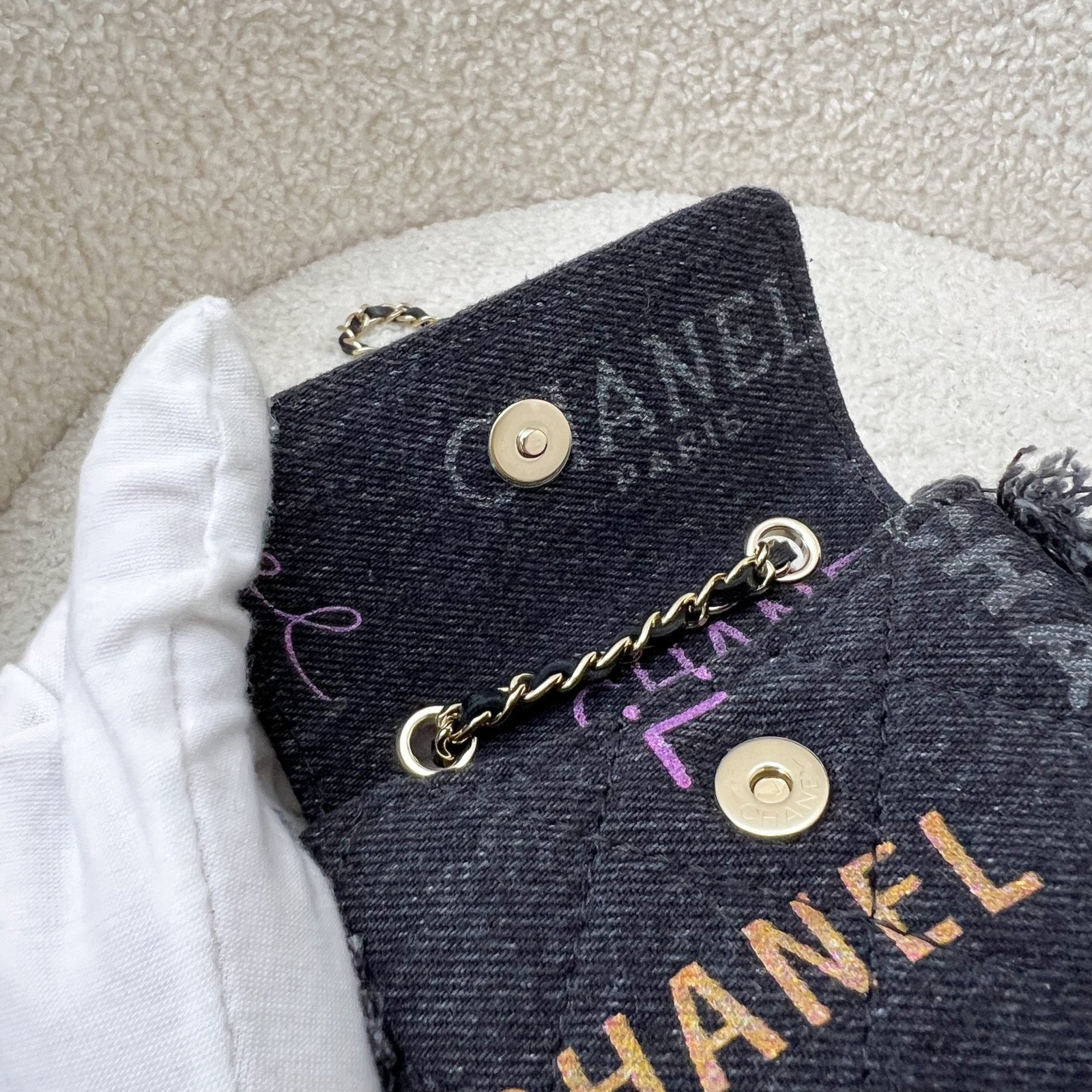 Chanel 22P Waist Bag / Clutch on Chain in Black Printed Denim and GHW