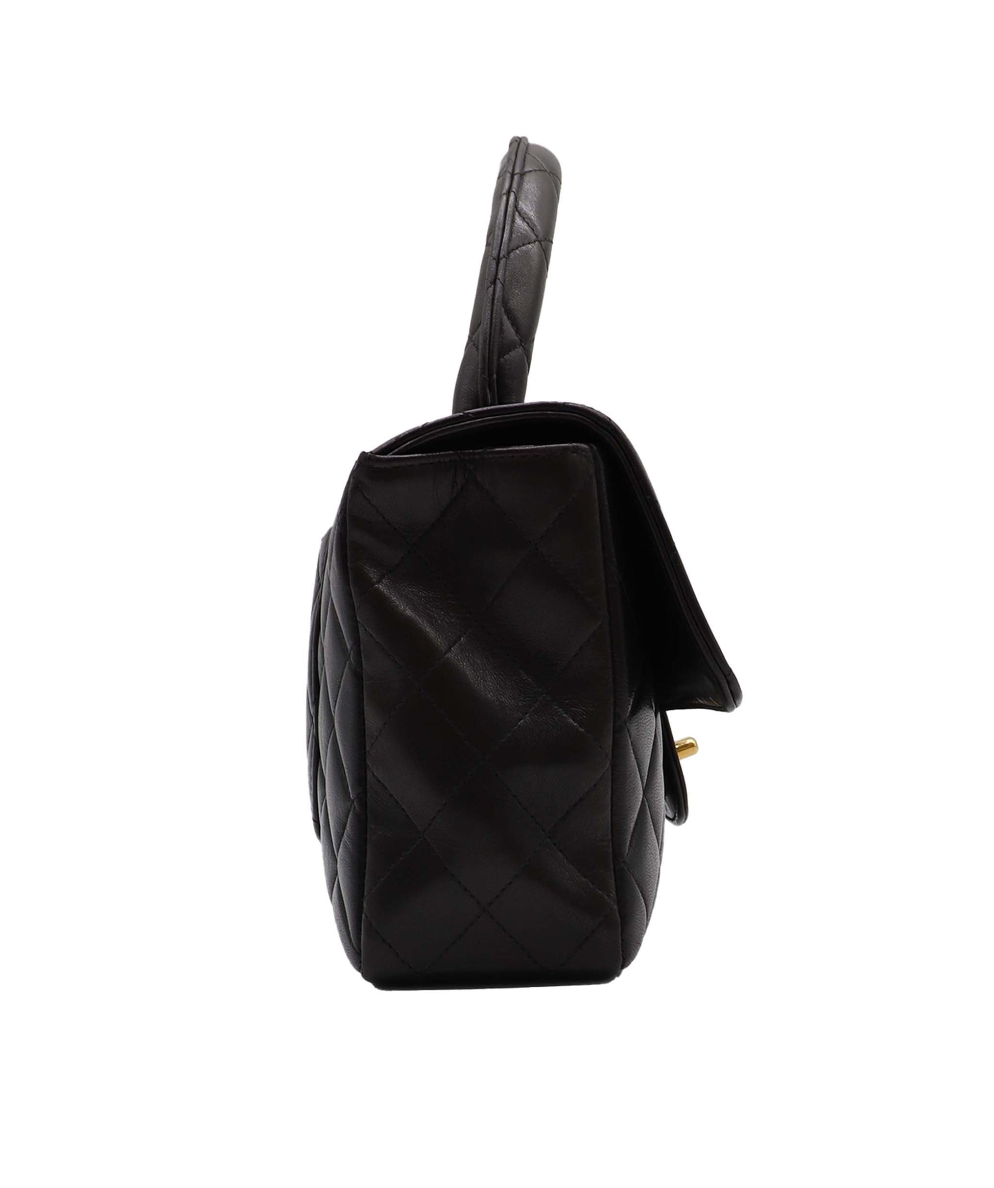 Description: This Chanel Top Handle Flapbag in Black Lambskin Leather, Gold Hardware, is in New condition.