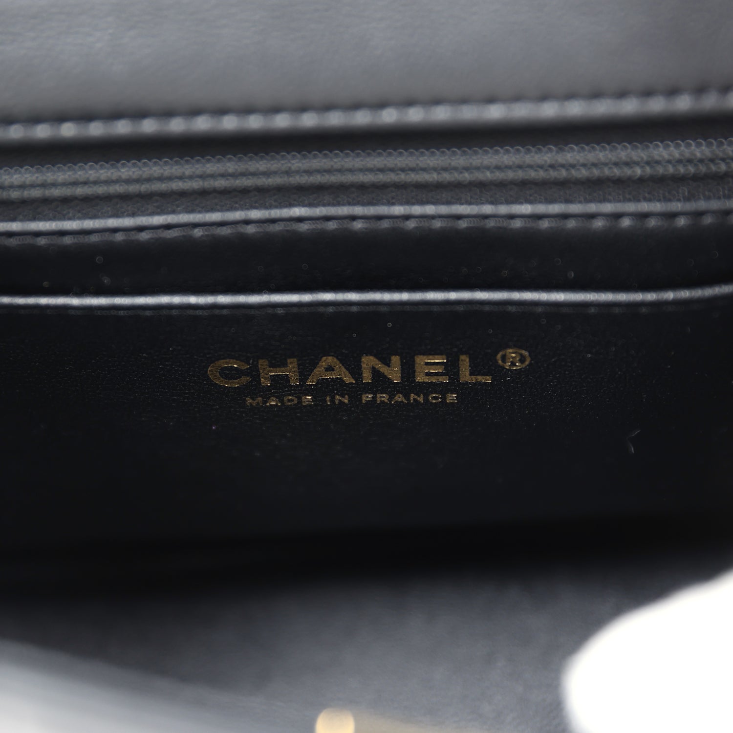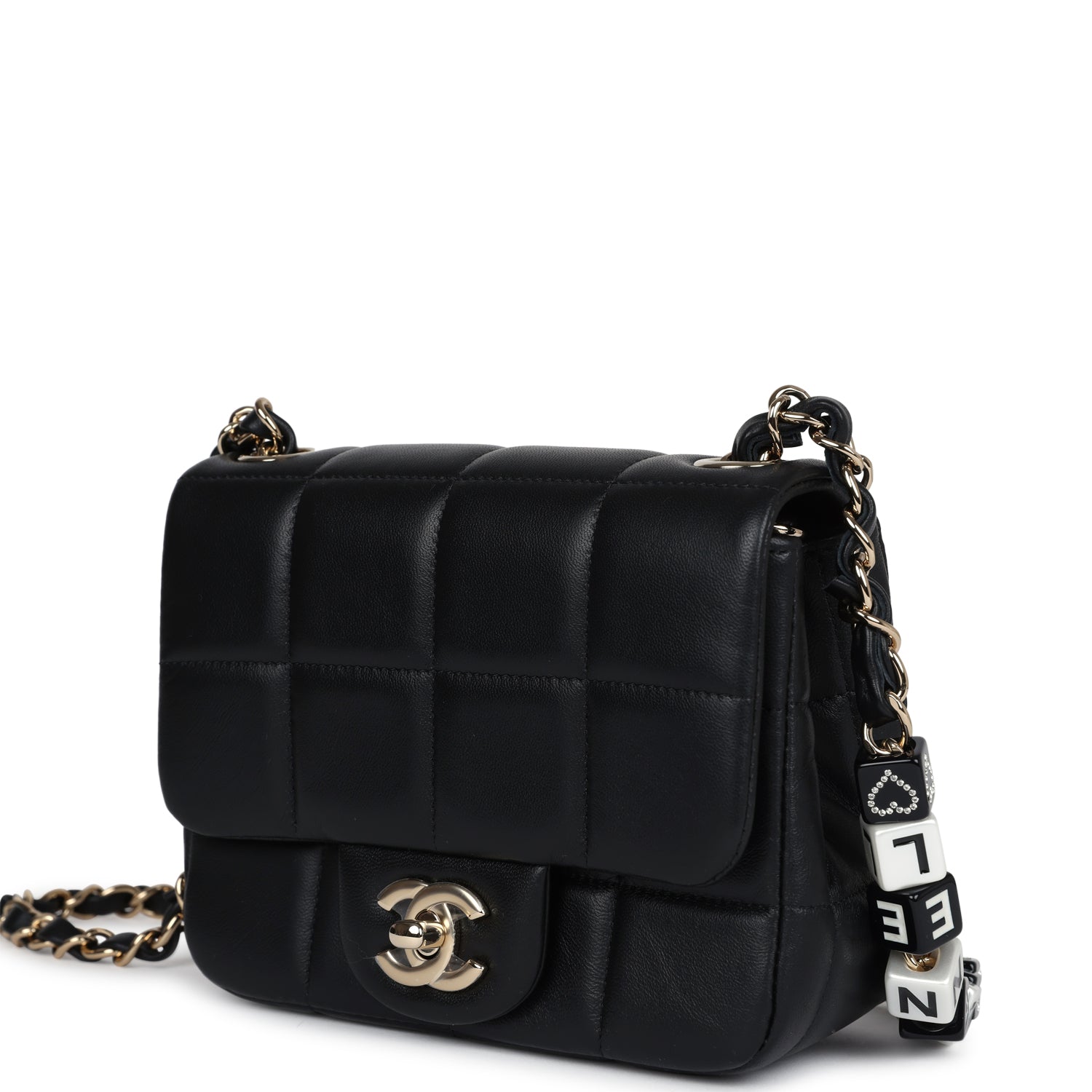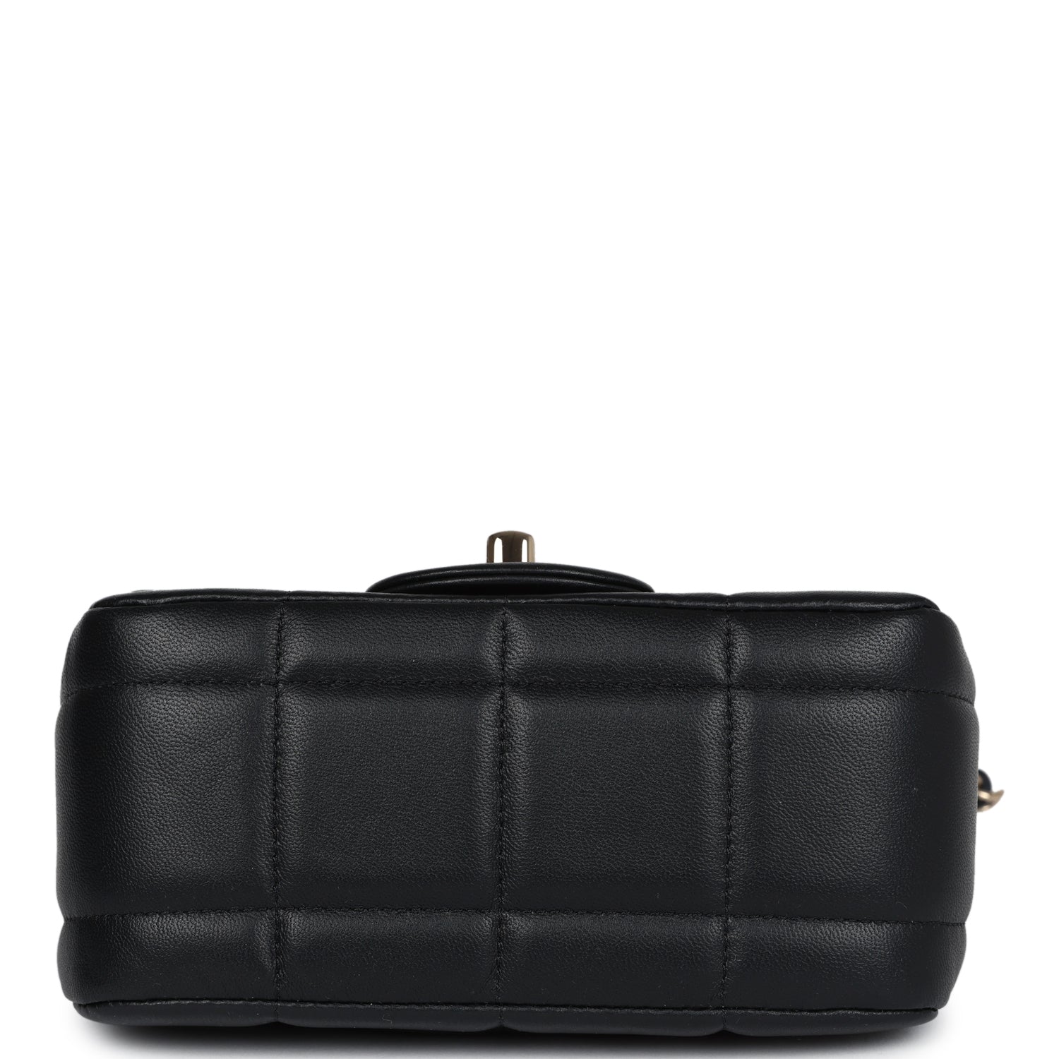 Chanel Monaco Mini Square Flap Bag Black Lambskin Light Gold Hardware