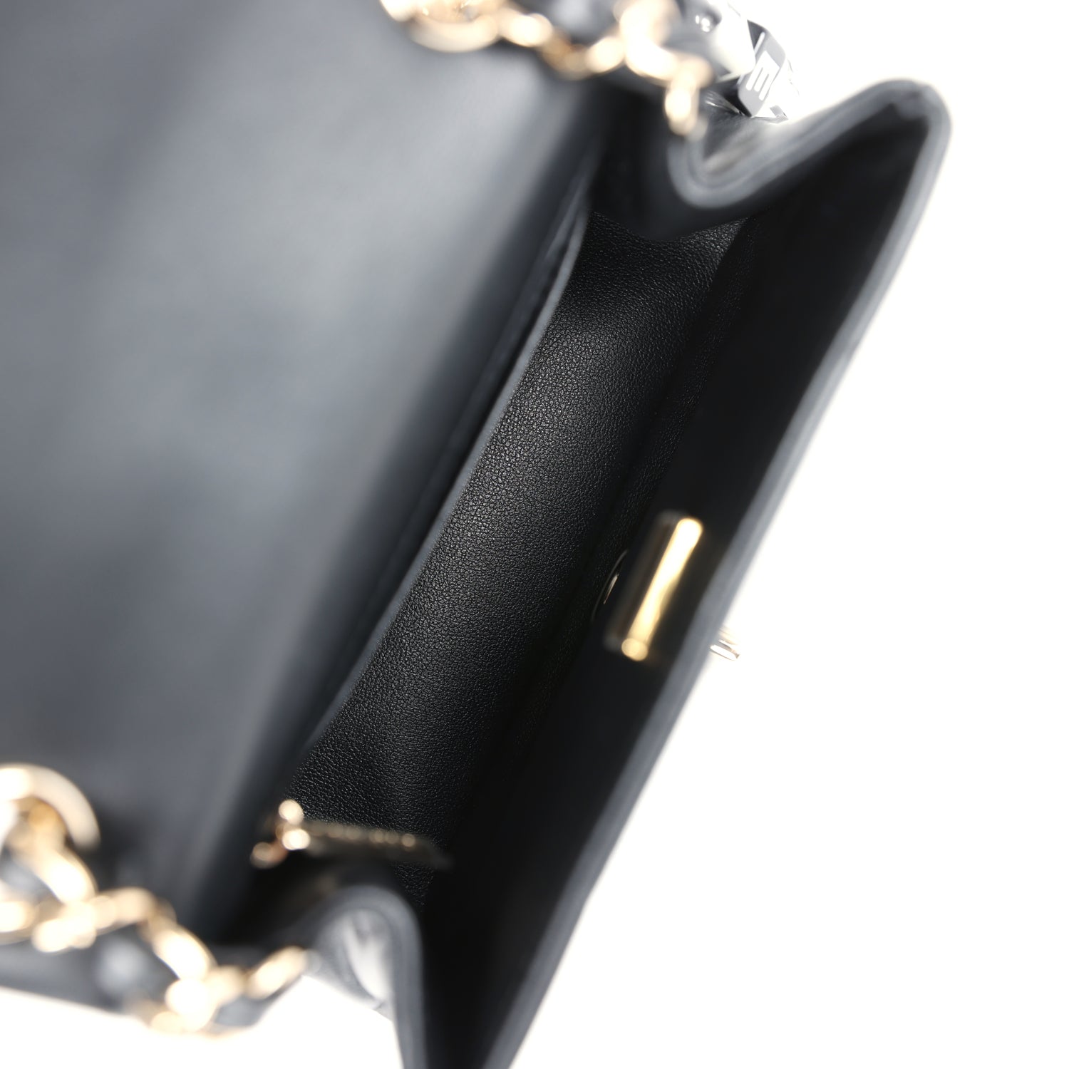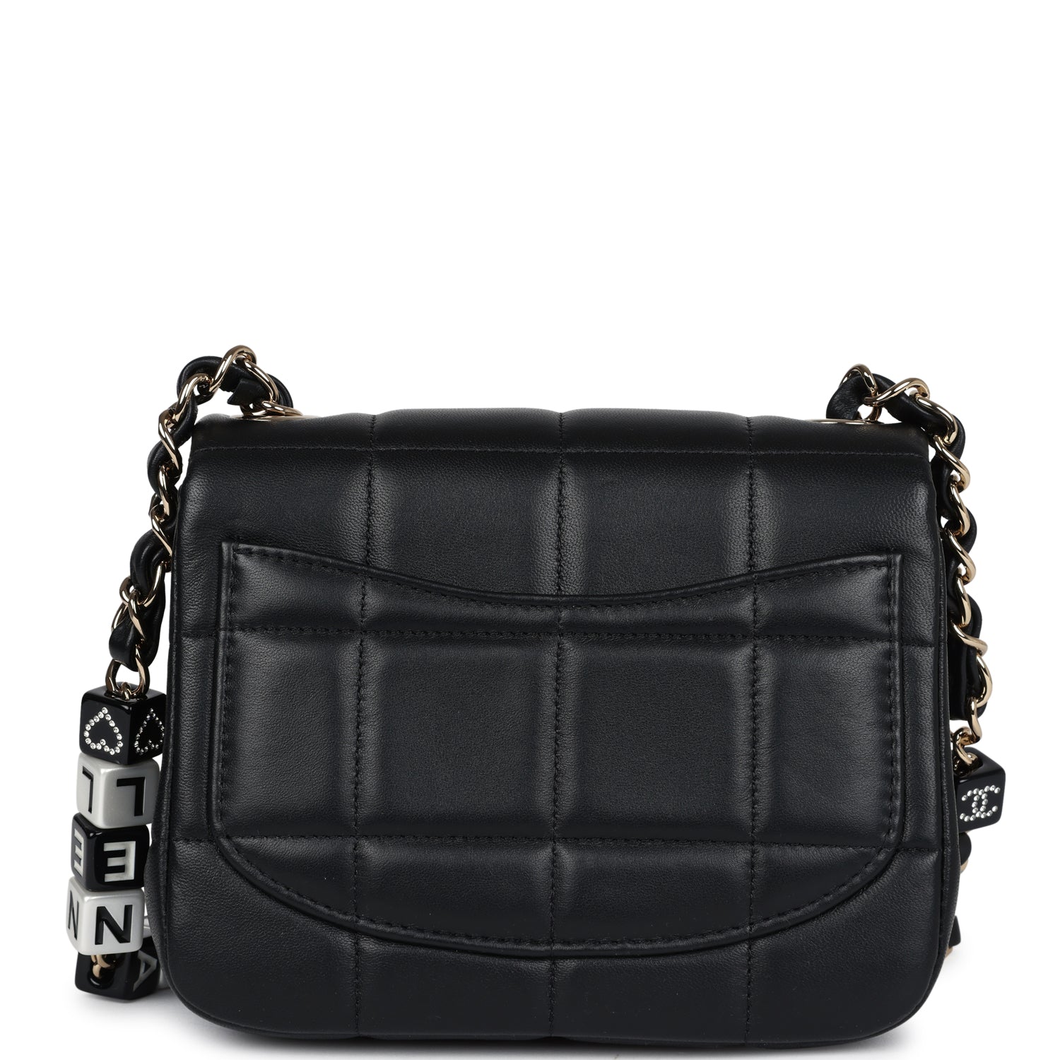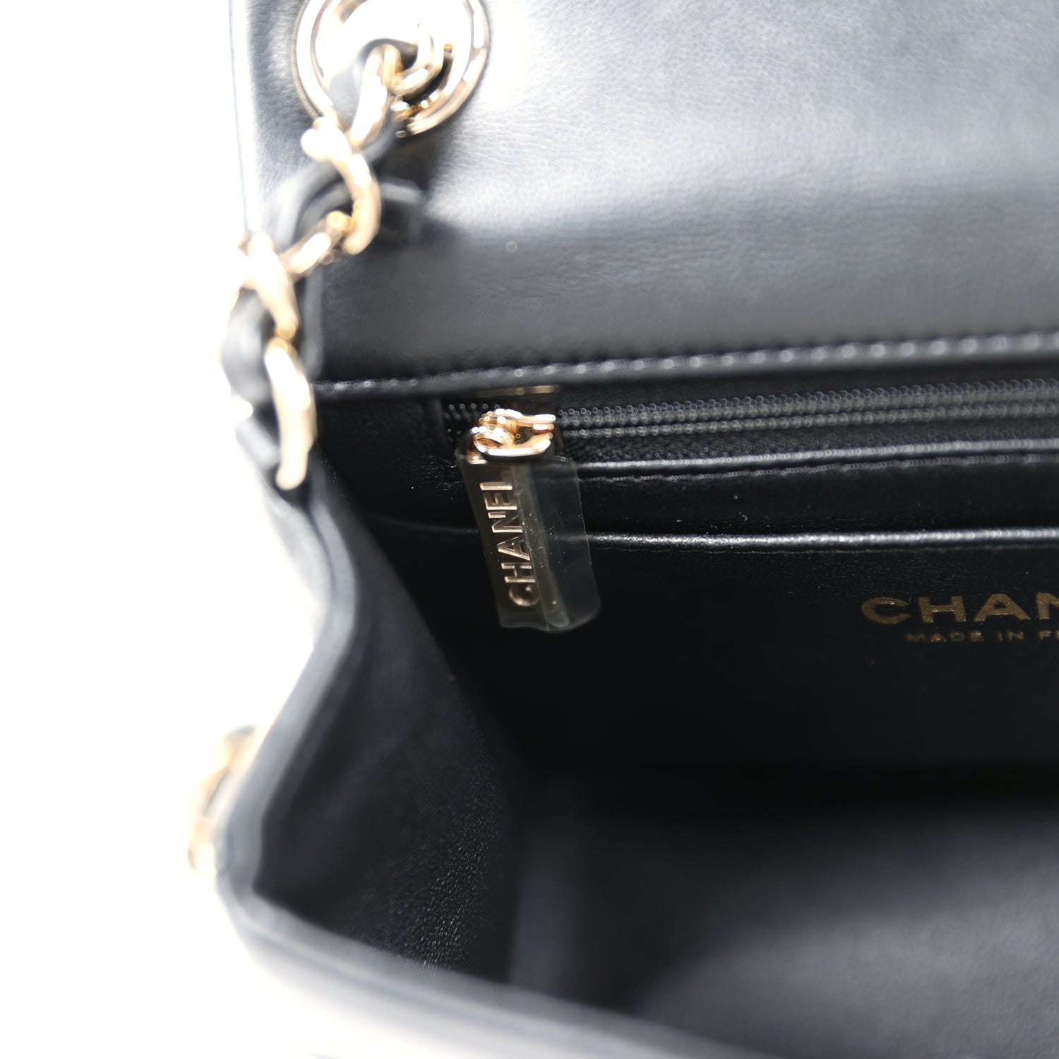 Chanel Monaco Mini Square Flap Bag Black Lambskin Light Gold Hardware