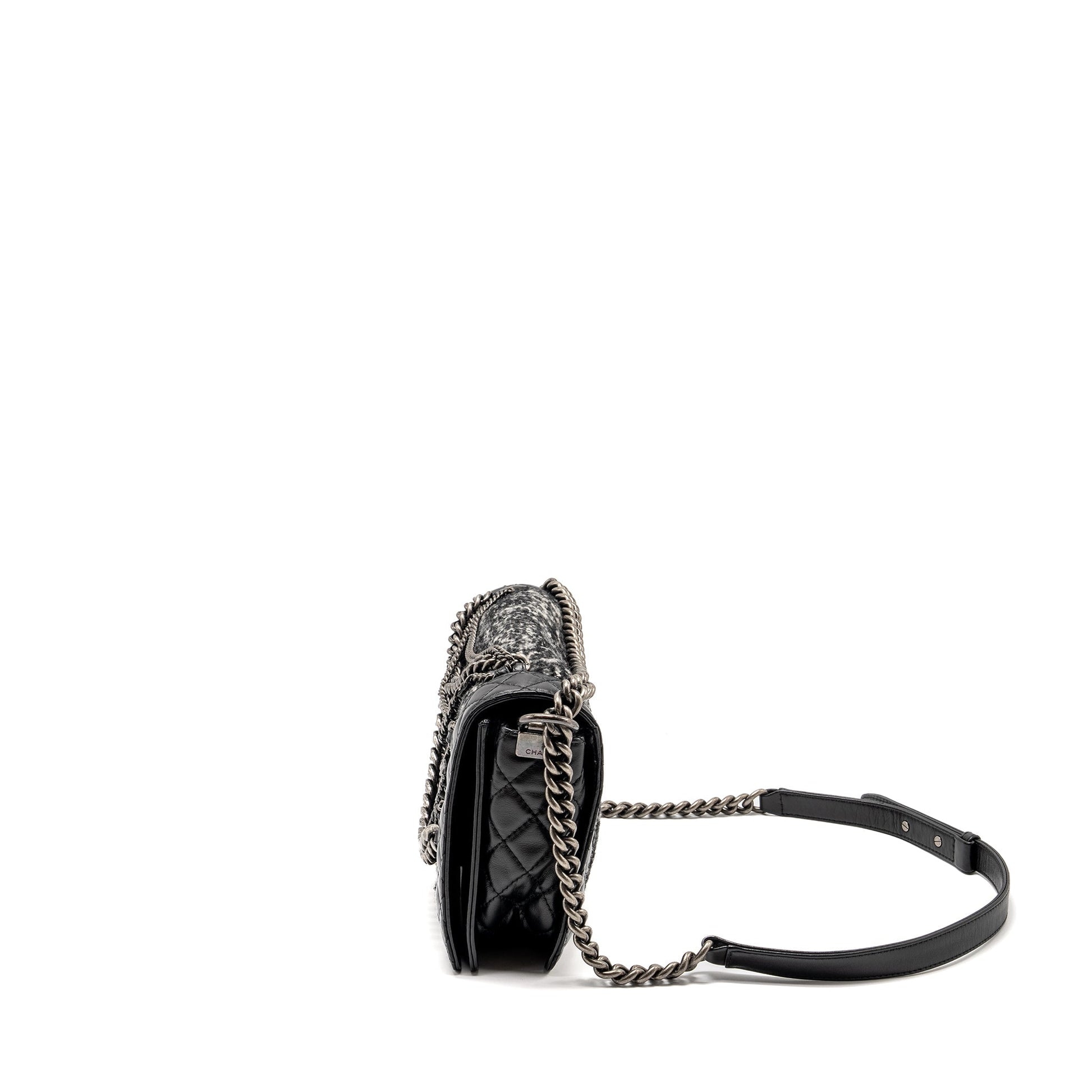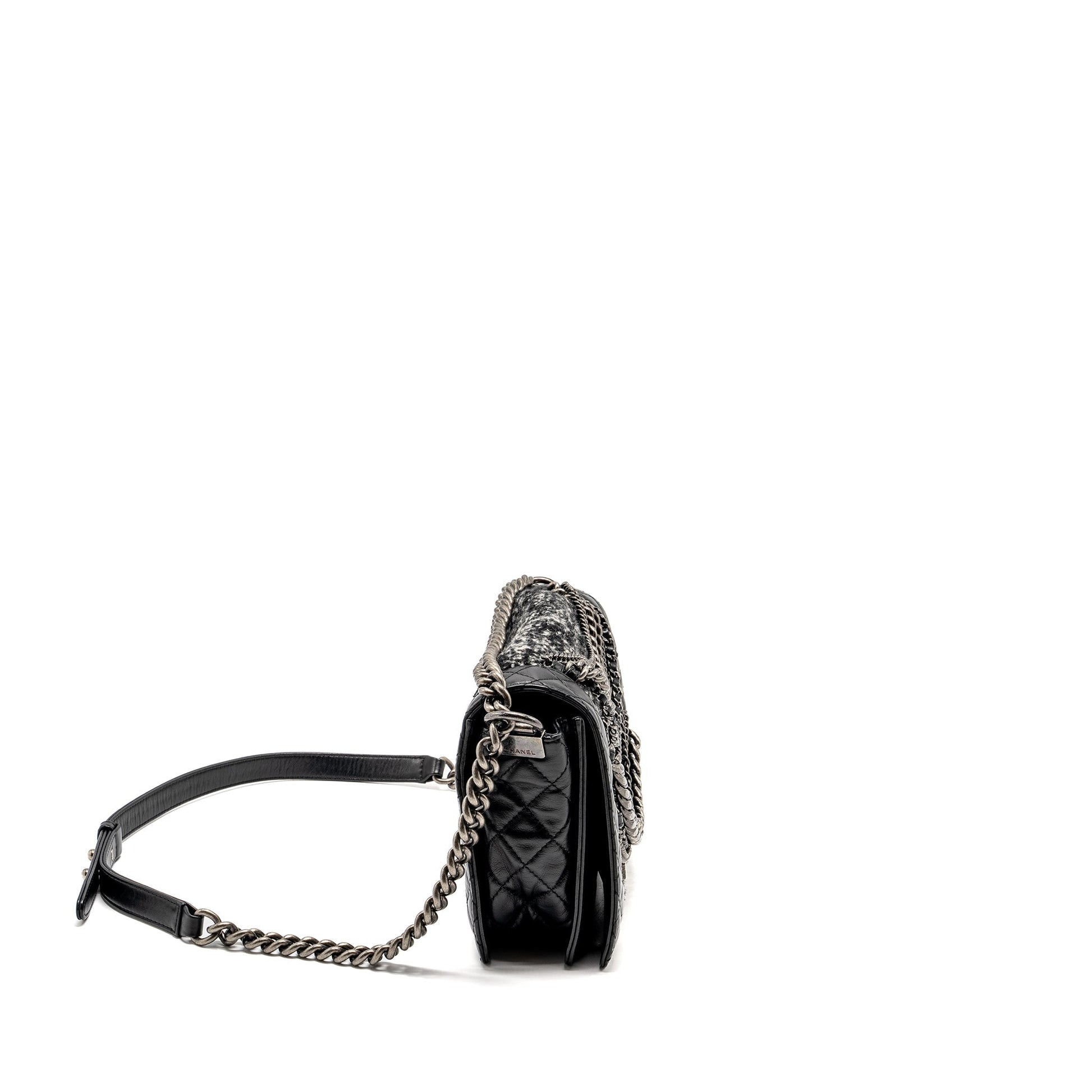 Chanel Multi Chain Boy Bag Calfskin/Tweed Black SHW