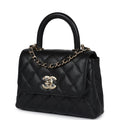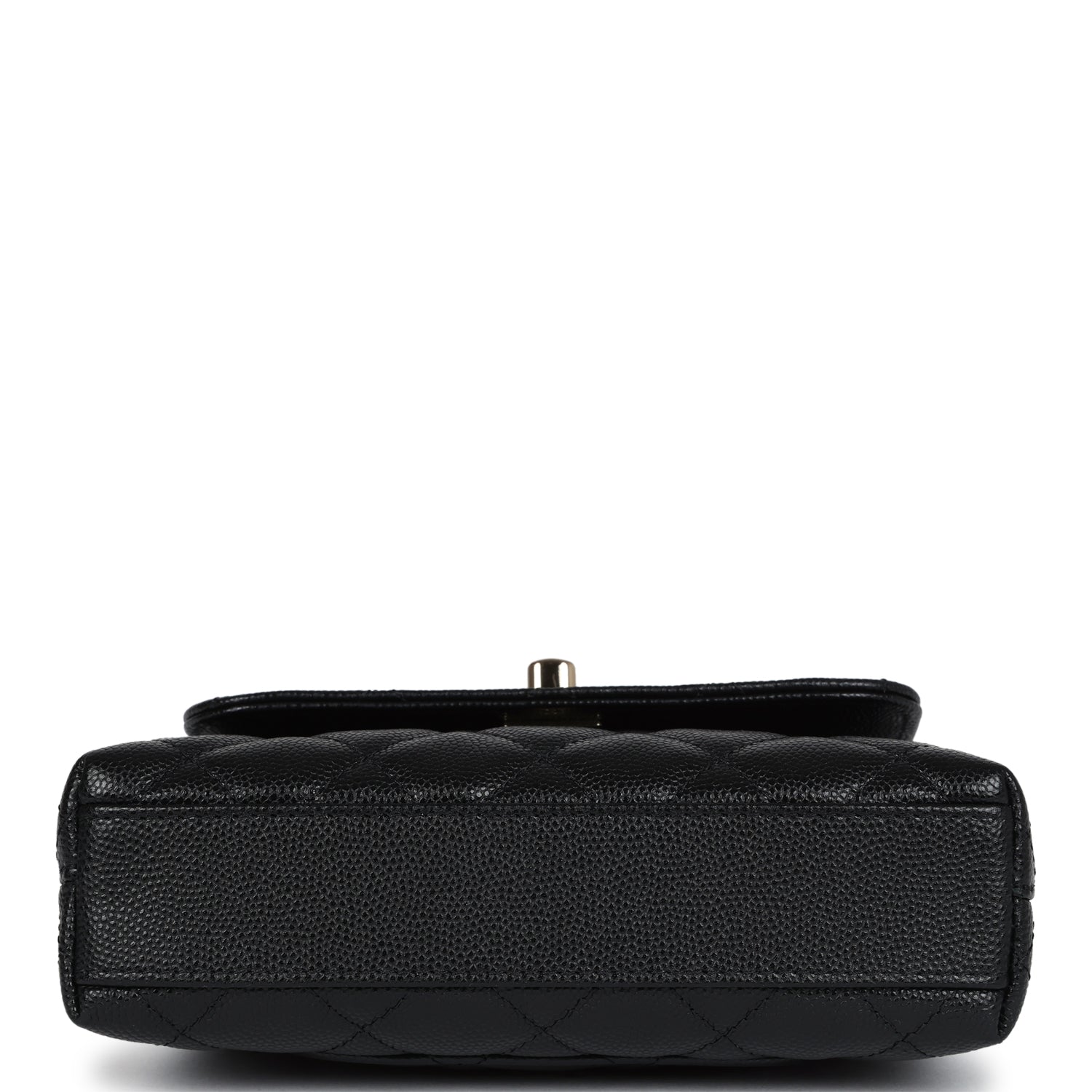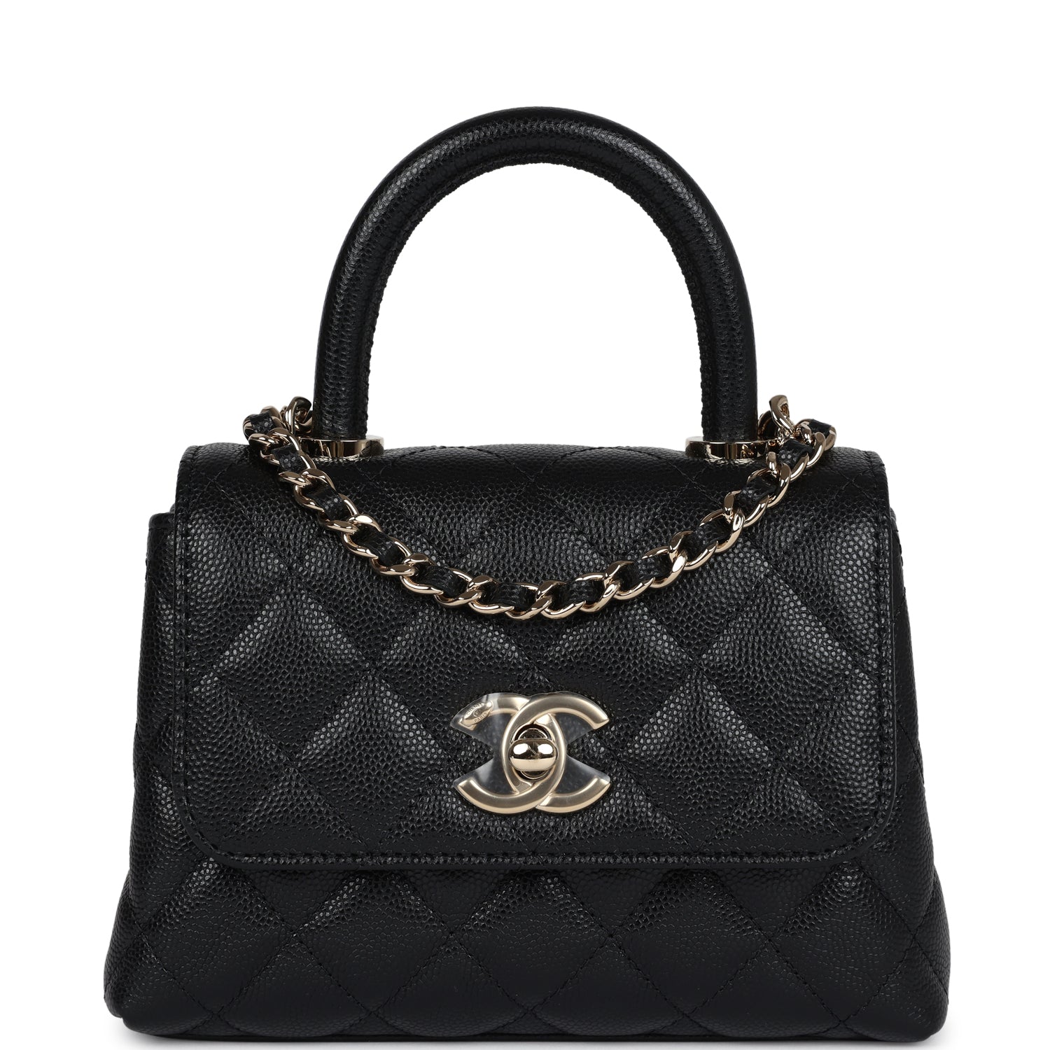 Chanel Nano Coco Top Handle Flap Bag Black Caviar Light Gold Hardware
