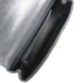 The interior is lined in black leather with one slip pocket on front wall and one slip pocket on rear wall.