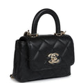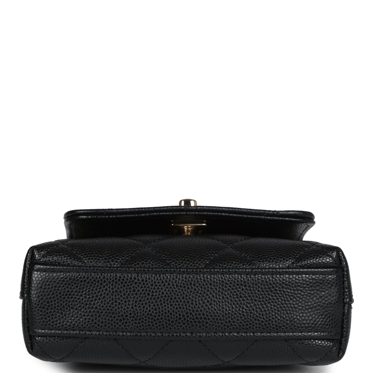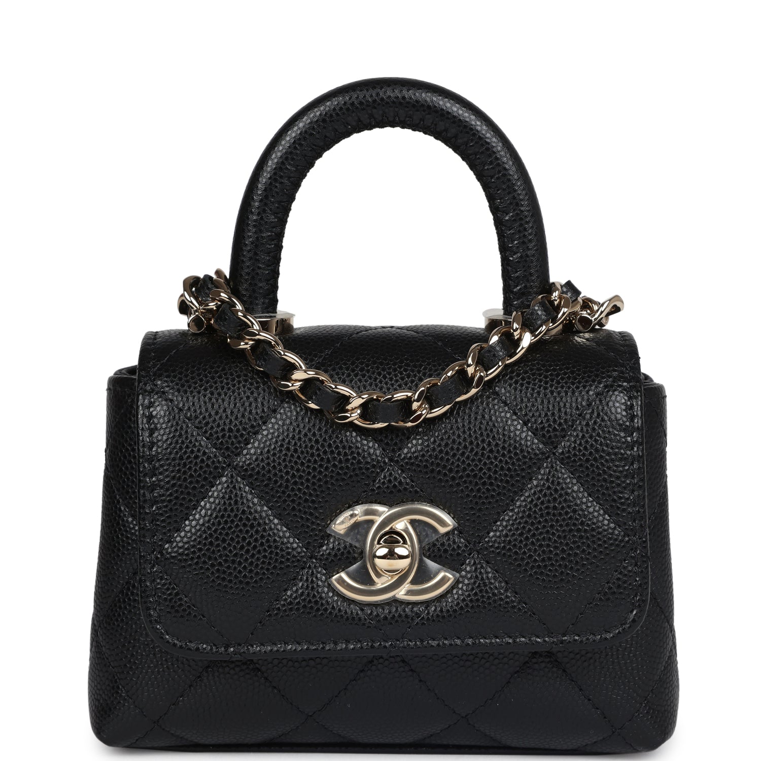 Chanel Nano Coco Top Handle Flap Bag Black Caviar Light Gold Hardware