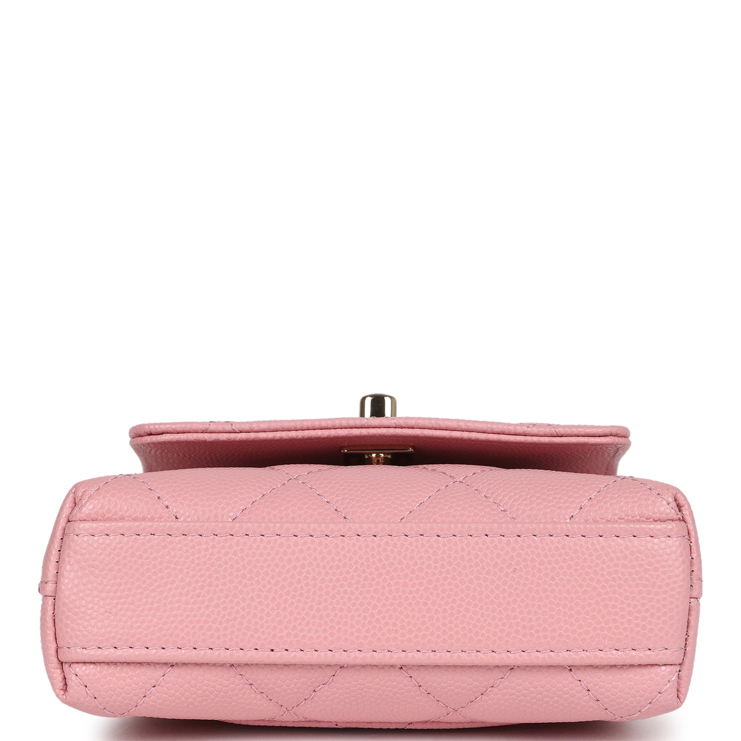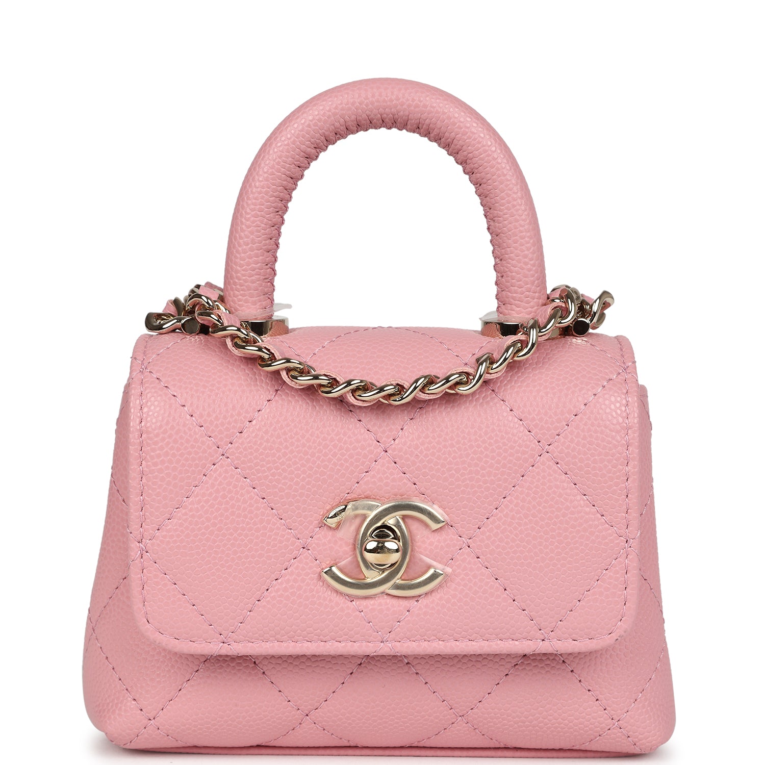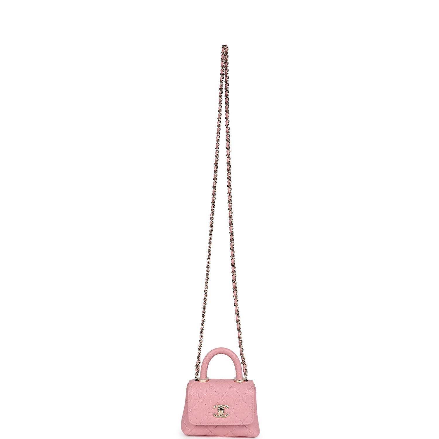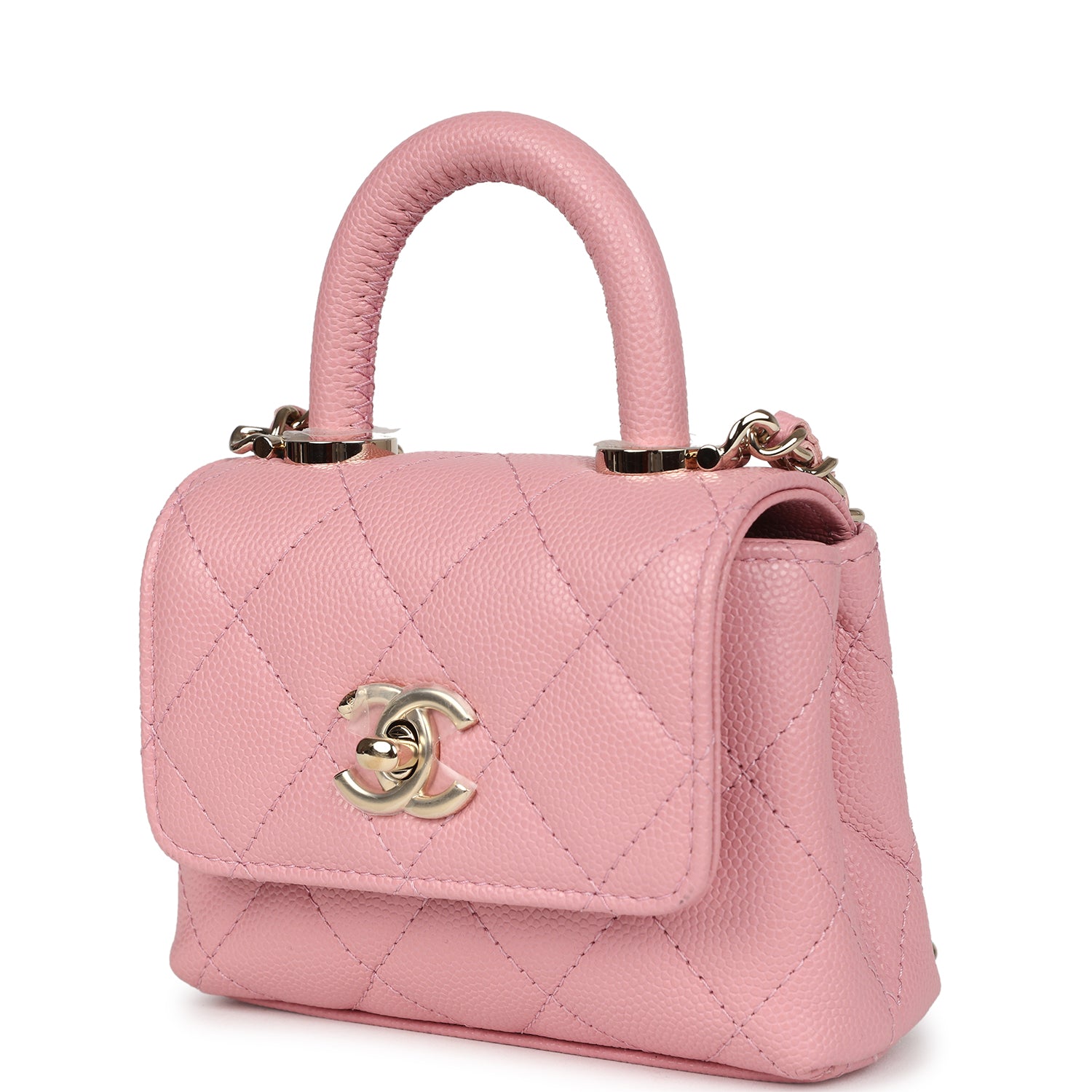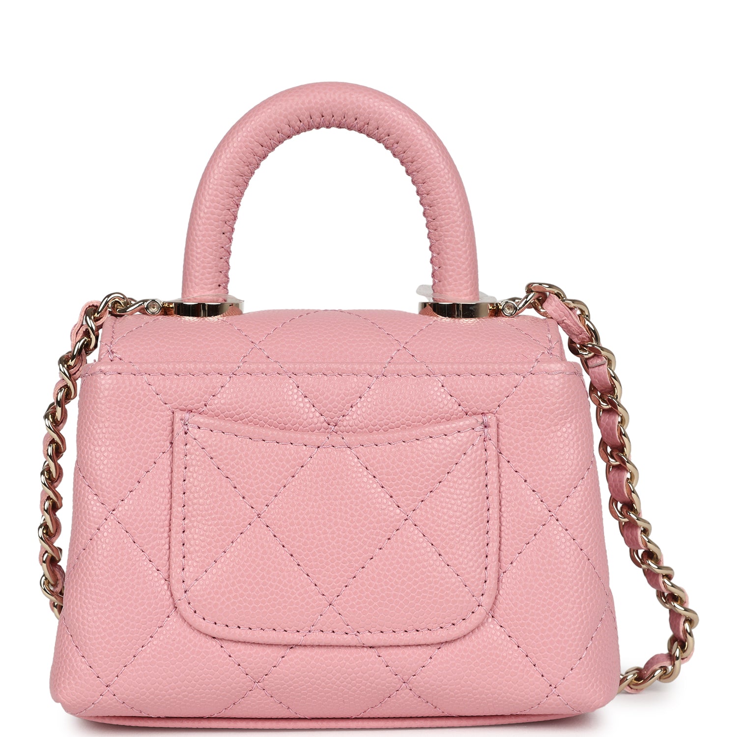 Chanel Nano Coco Top Handle Flap Bag Pink Grained Calfskin Light Gold Hardware