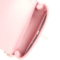 The interior is lined in pink leather with one slip pocket on front wall and one slip pocket on rear wall.