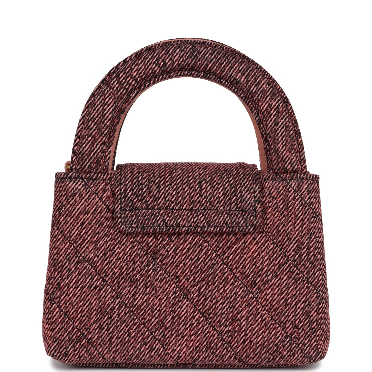 Chanel Nano Kelly Shopper Pink and Black Washed Denim Brushed Gold Hardware