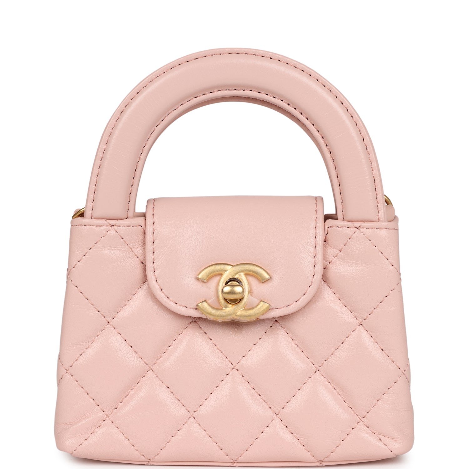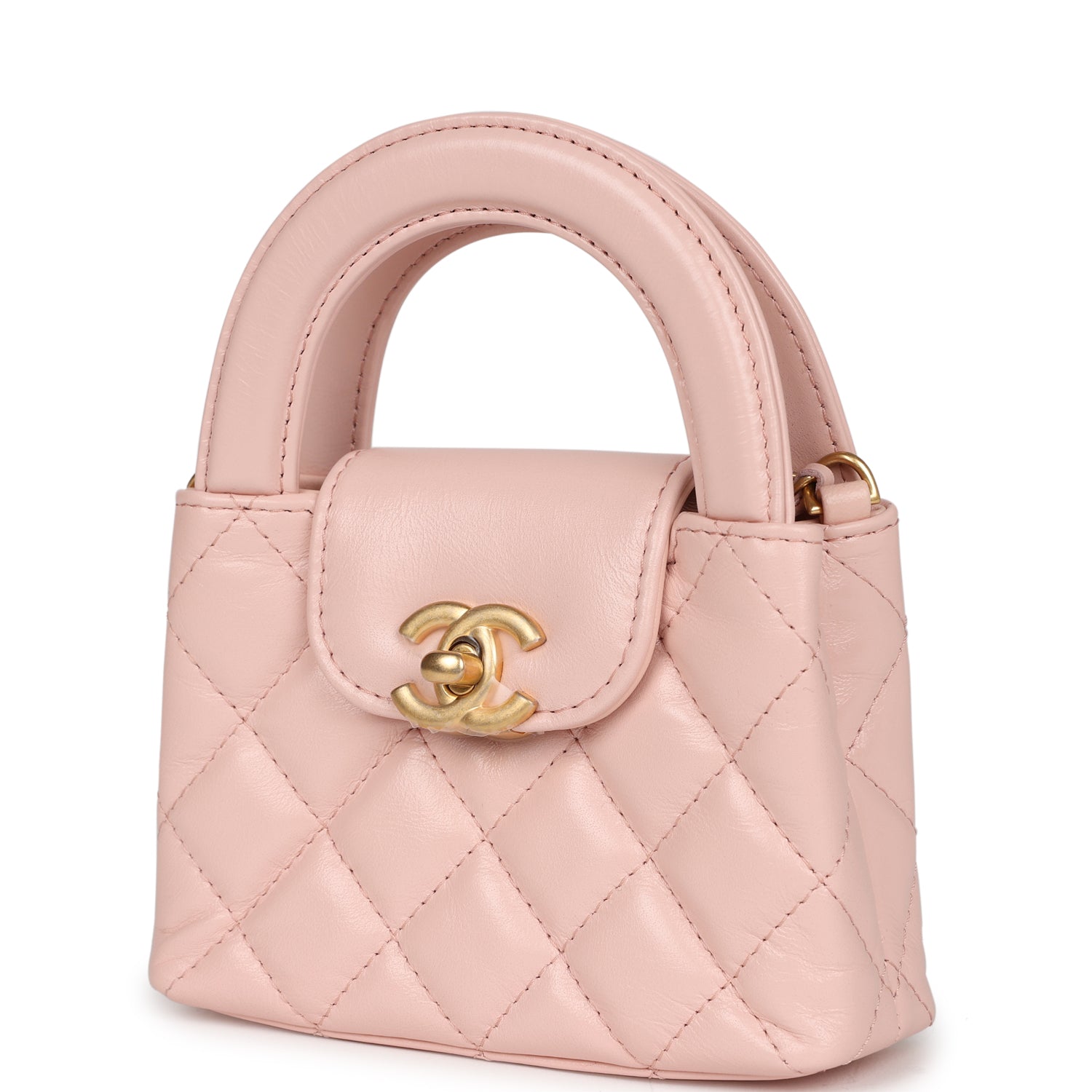 Chanel Nano Kelly Shopper Light Pink Shiny Aged Calfskin Brushed Gold Hardware