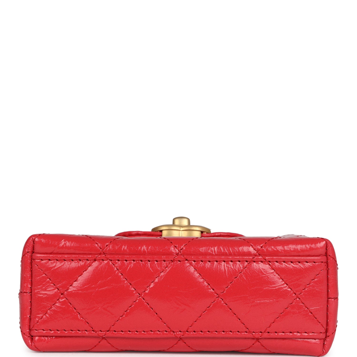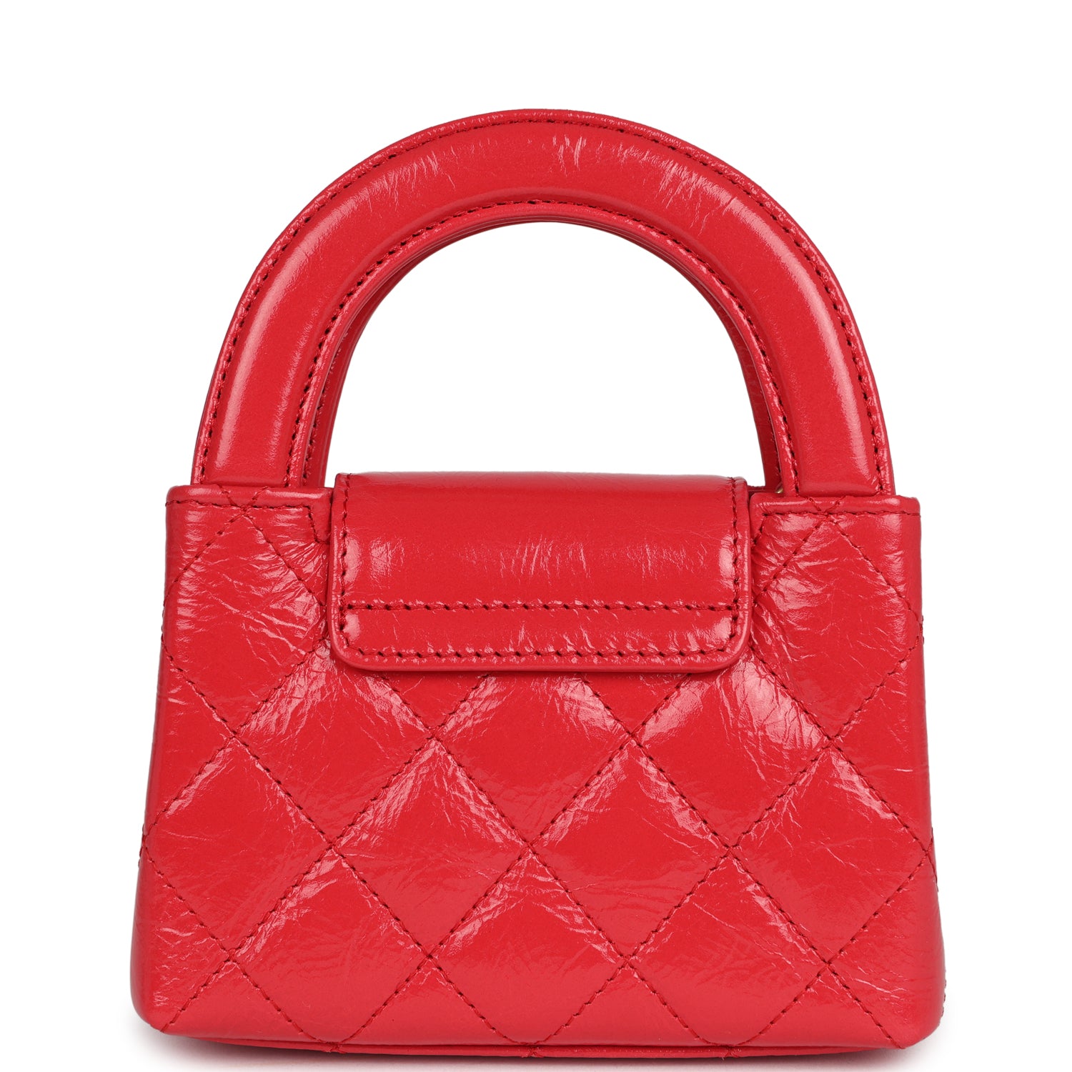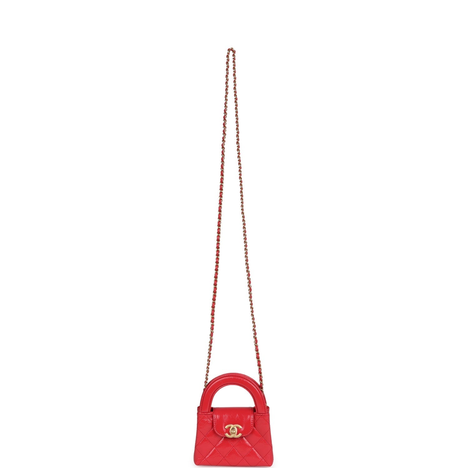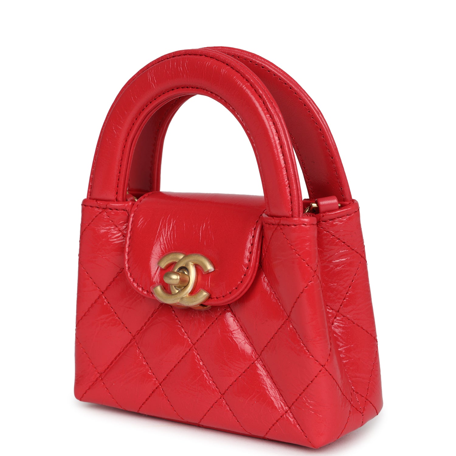 Chanel Nano Kelly Shopper Red Shiny Aged Calfskin Brushed Gold Hardware