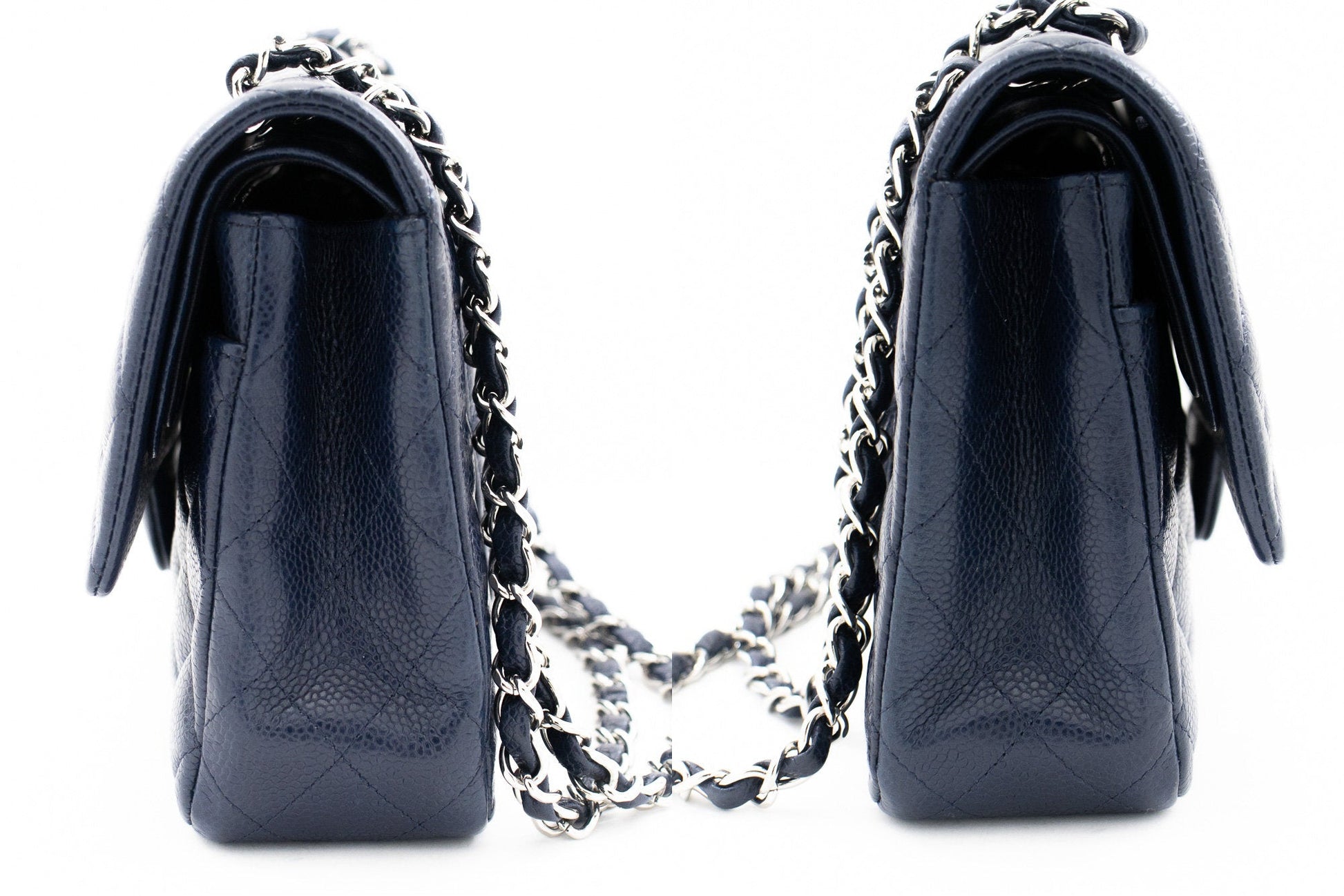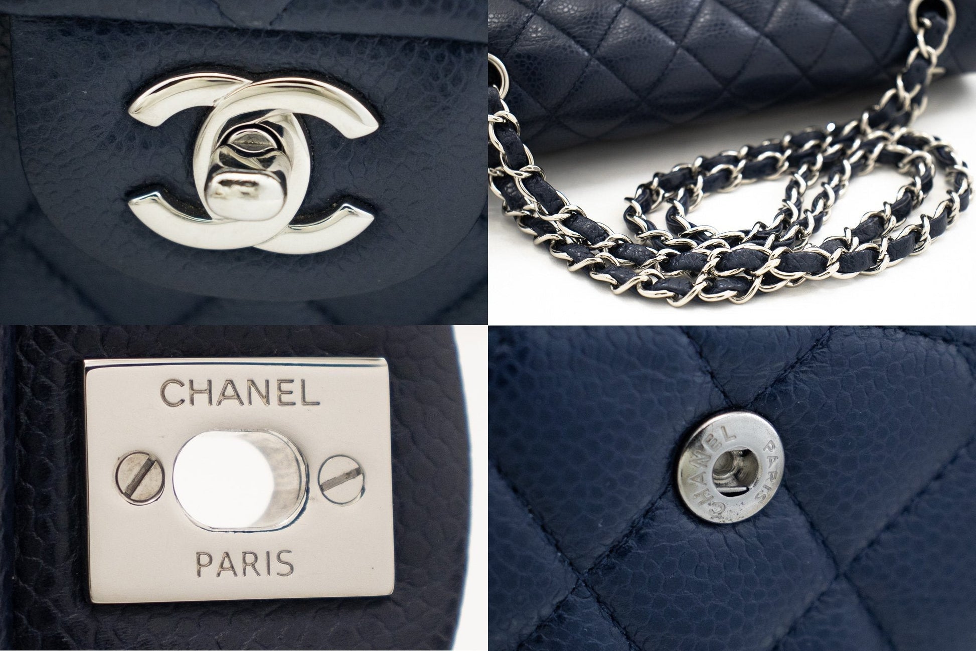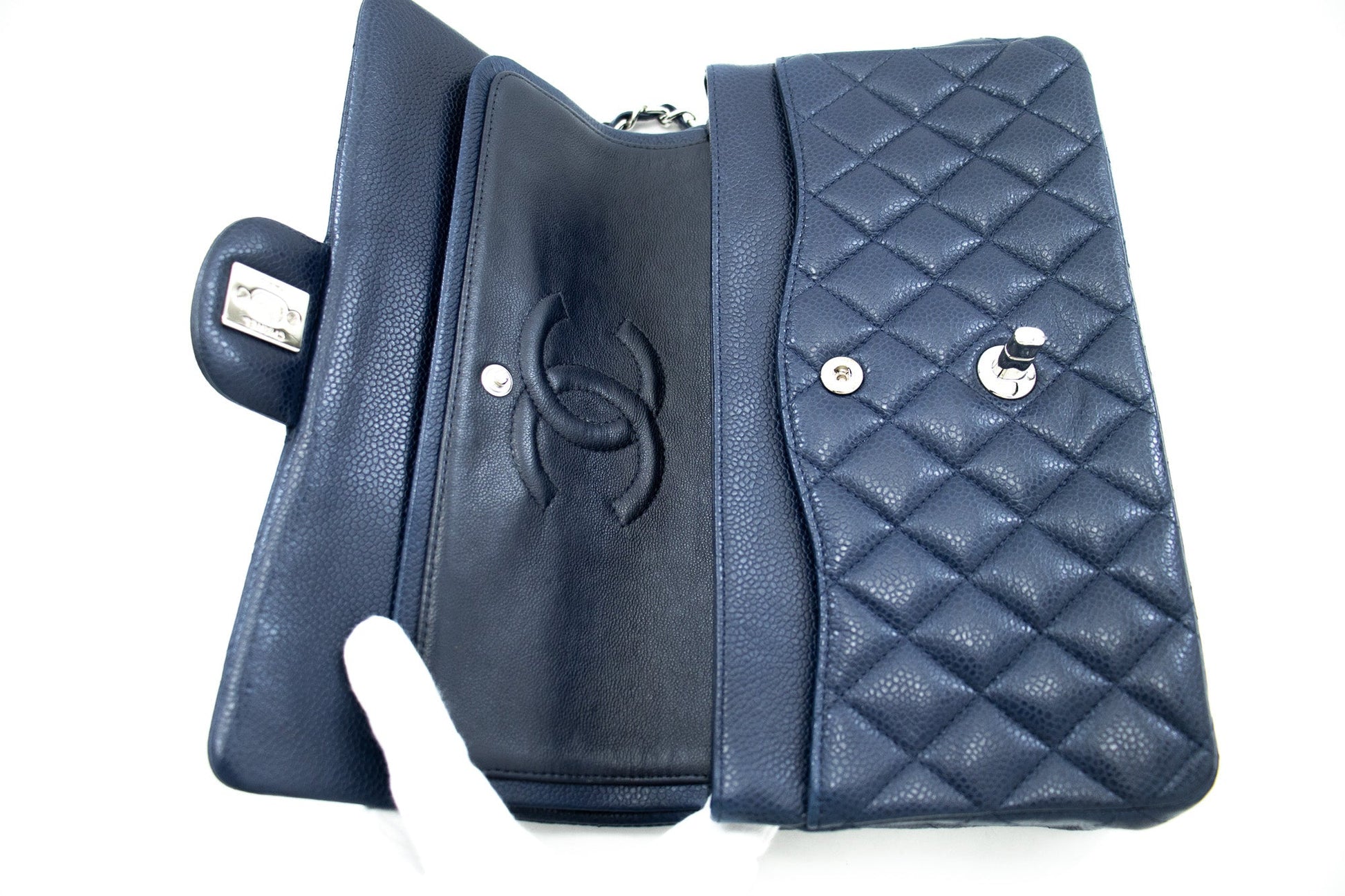 A CHANEL Navy Caviar Double Flap Chain Shoulder Bag Quilted Leather j44 This item is Contemporary. The year of manufacture would be 2011.