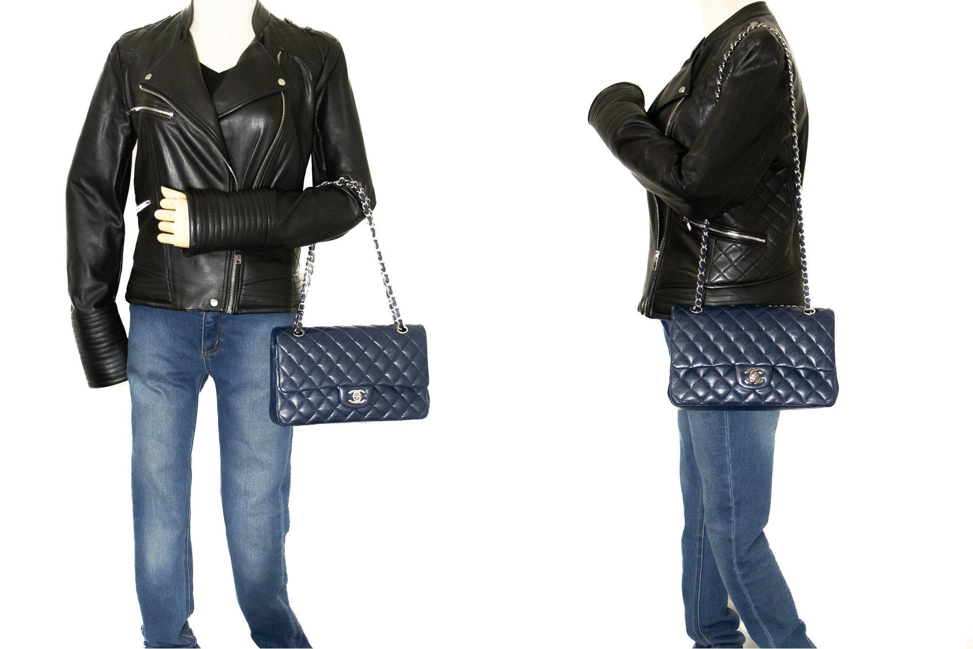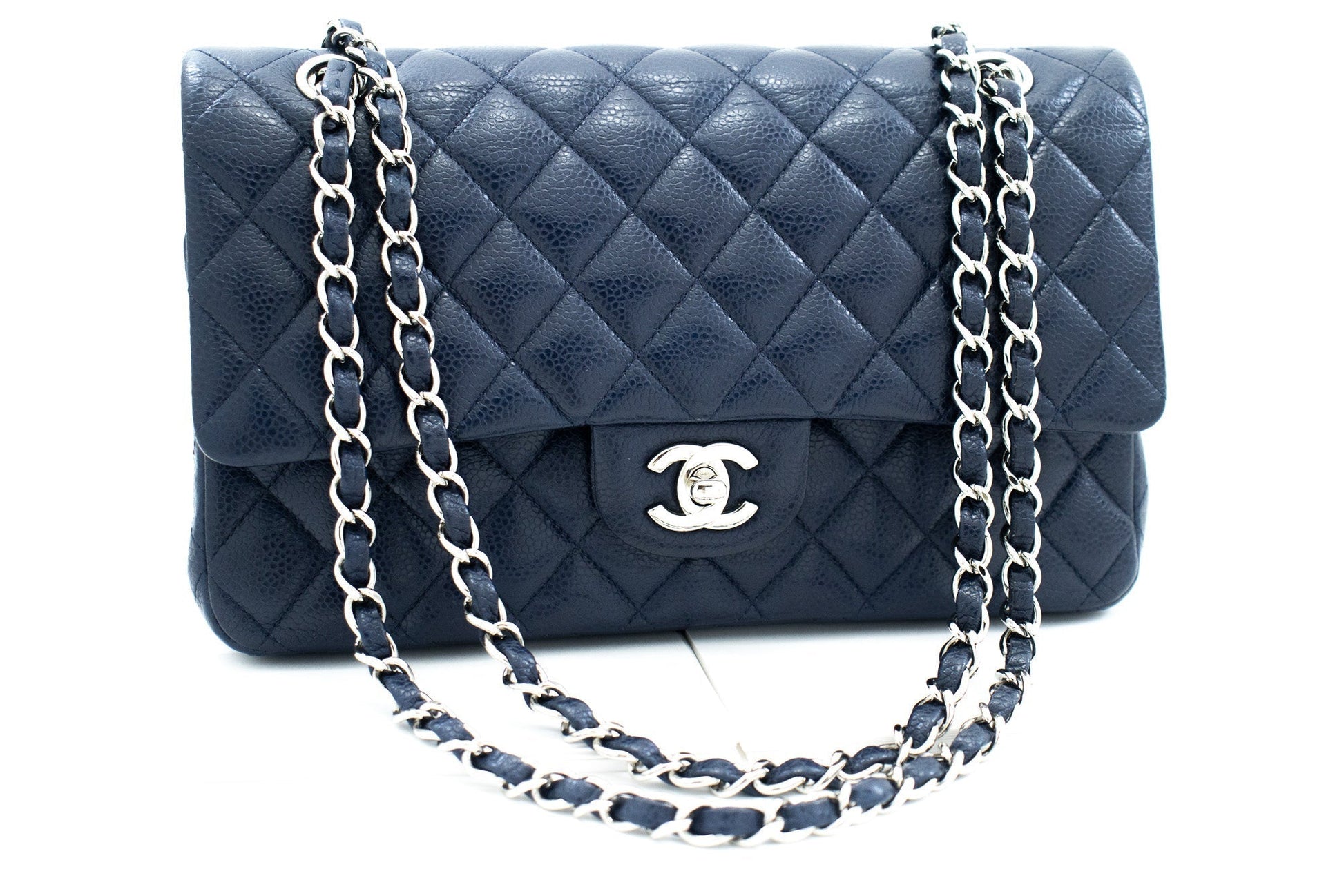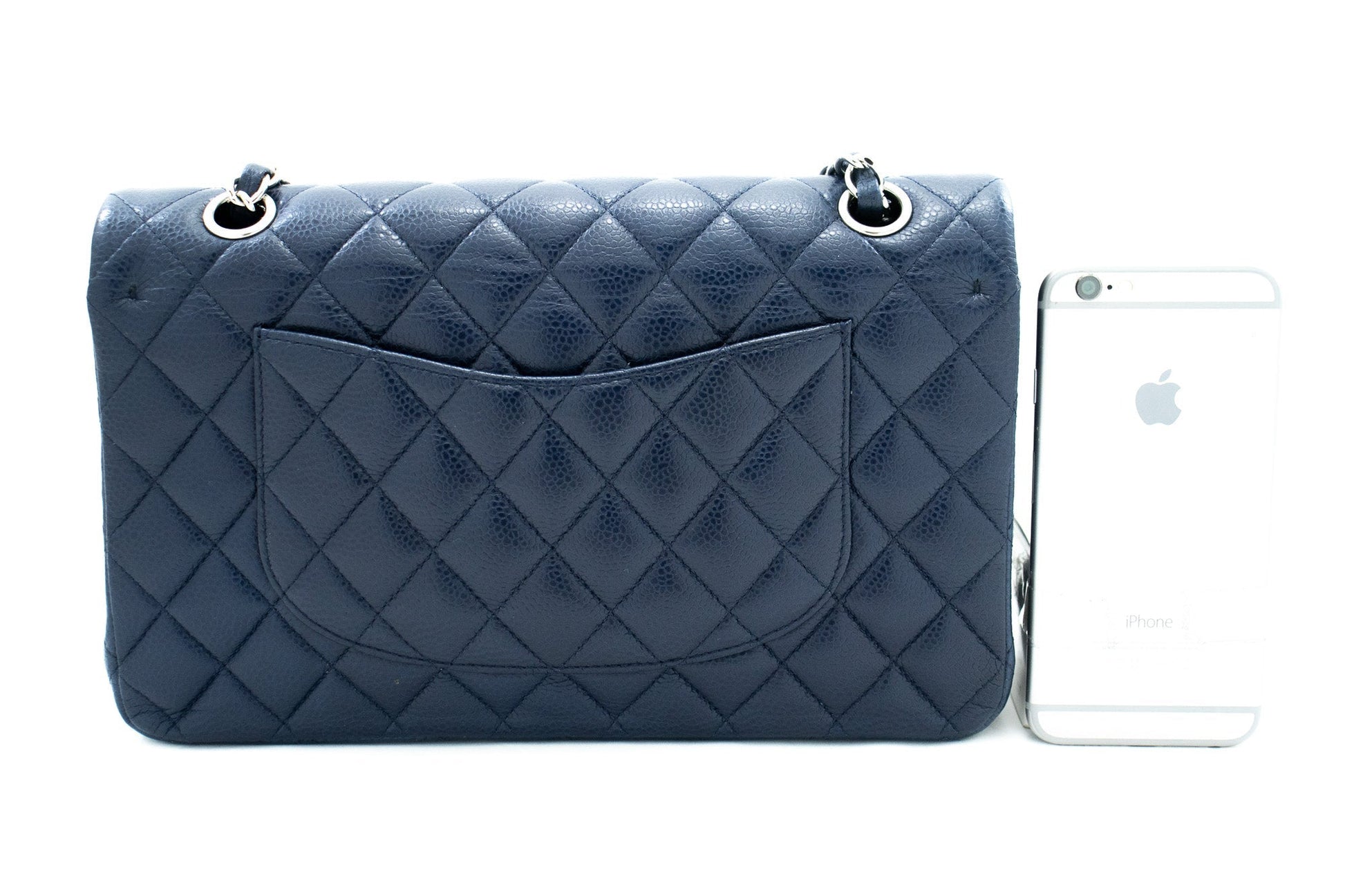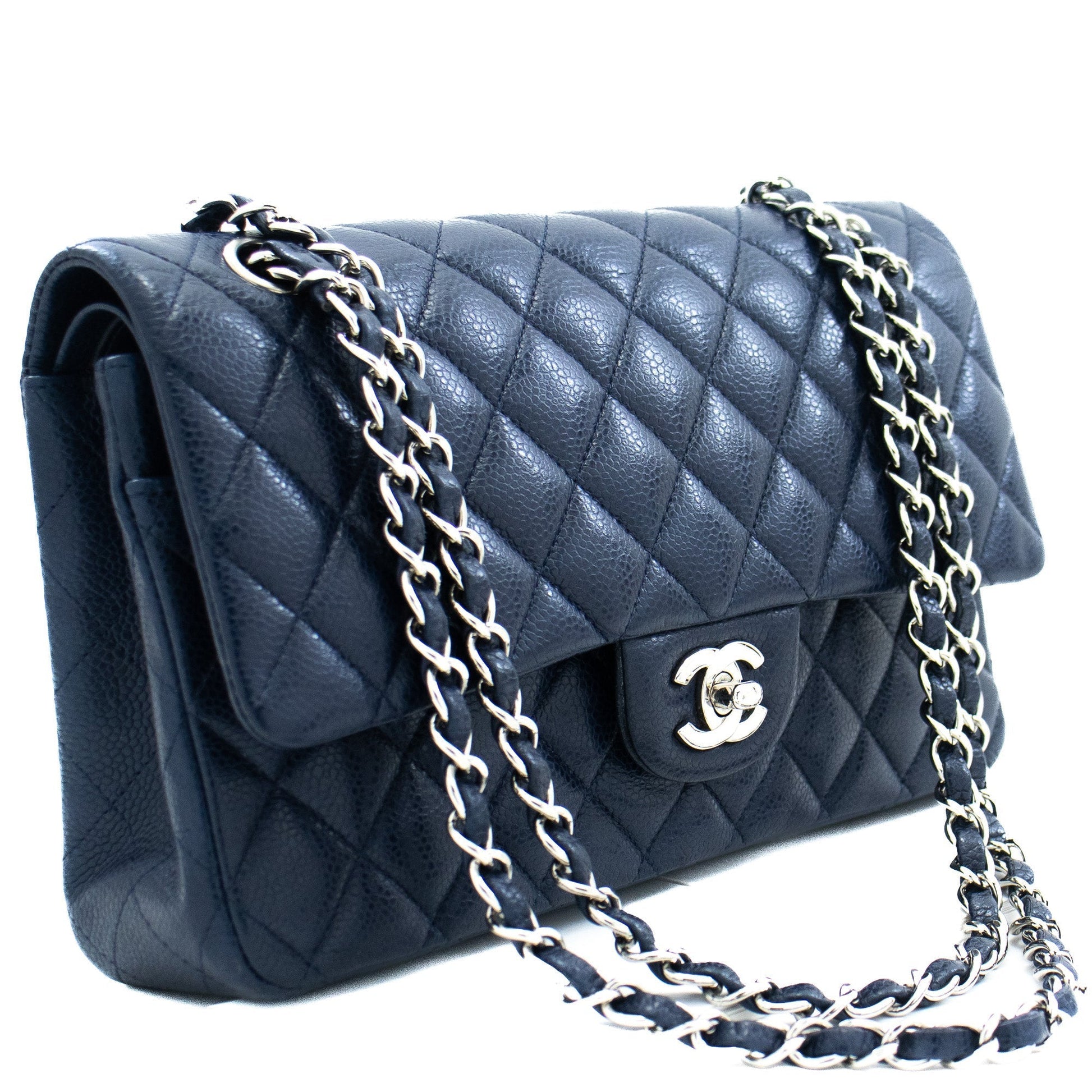 A CHANEL Navy Caviar Double Flap Chain Shoulder Bag Quilted Leather j44 This item is Contemporary. The year of manufacture would be 2011.
