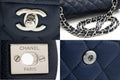 CHANEL Navy Caviar Double Flap Chain Shoulder Bag Quilted Leather j44