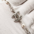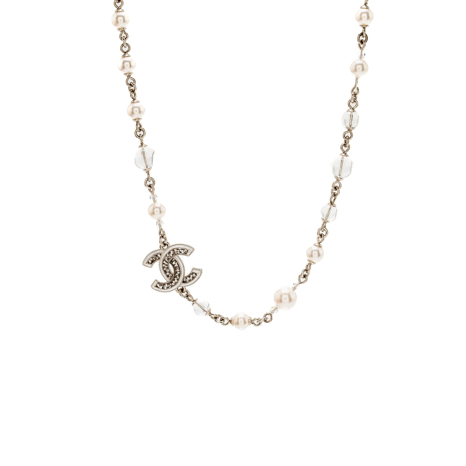 Chanel CC Logo Necklace Metal, Pearl, Crystal Silver Tone