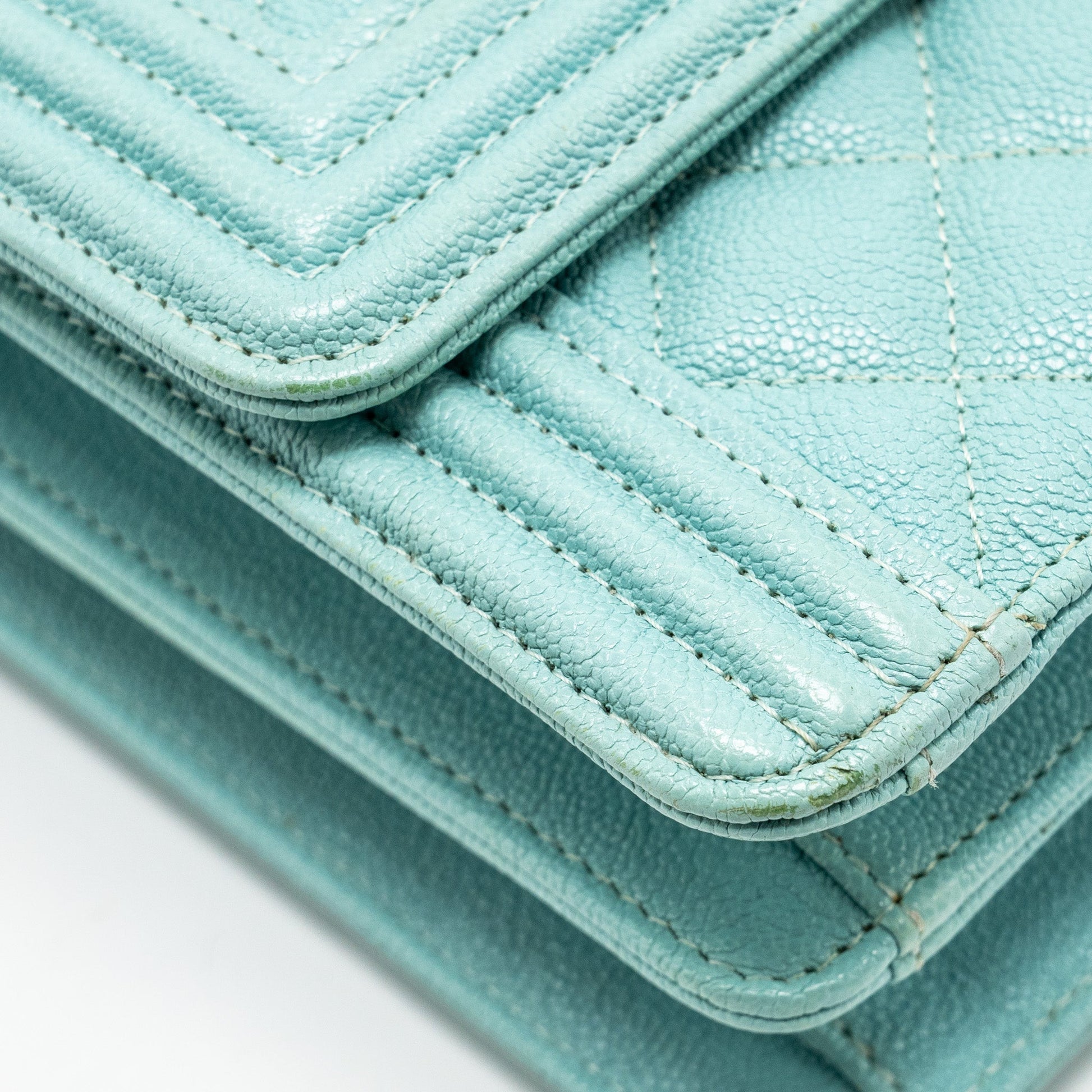 Chanel North South Boy Bag Caviar Light Blue GHW