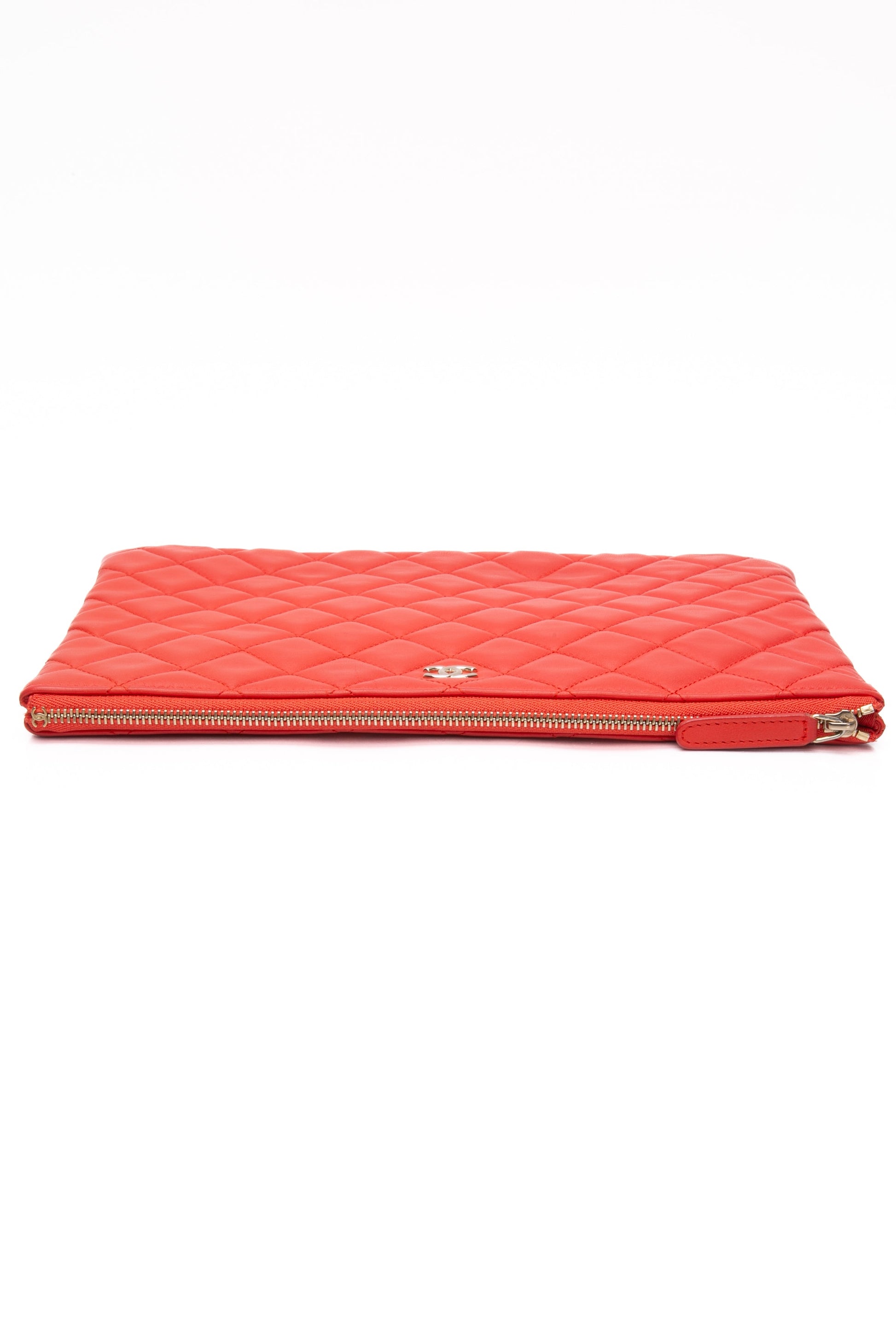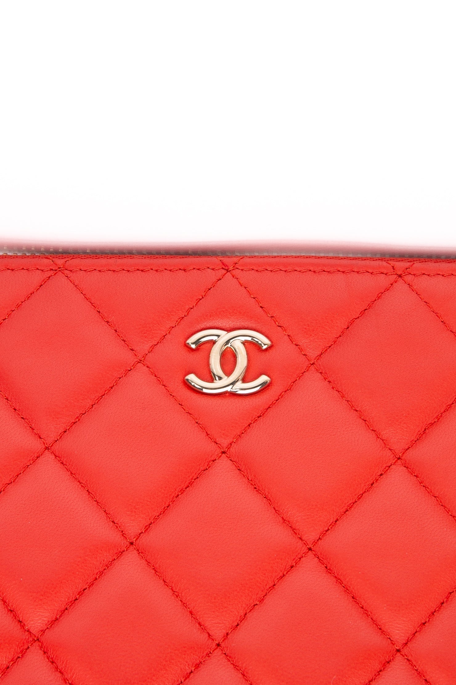 CHANEL Coral Lambskin Quilted Medium O Case Clutch