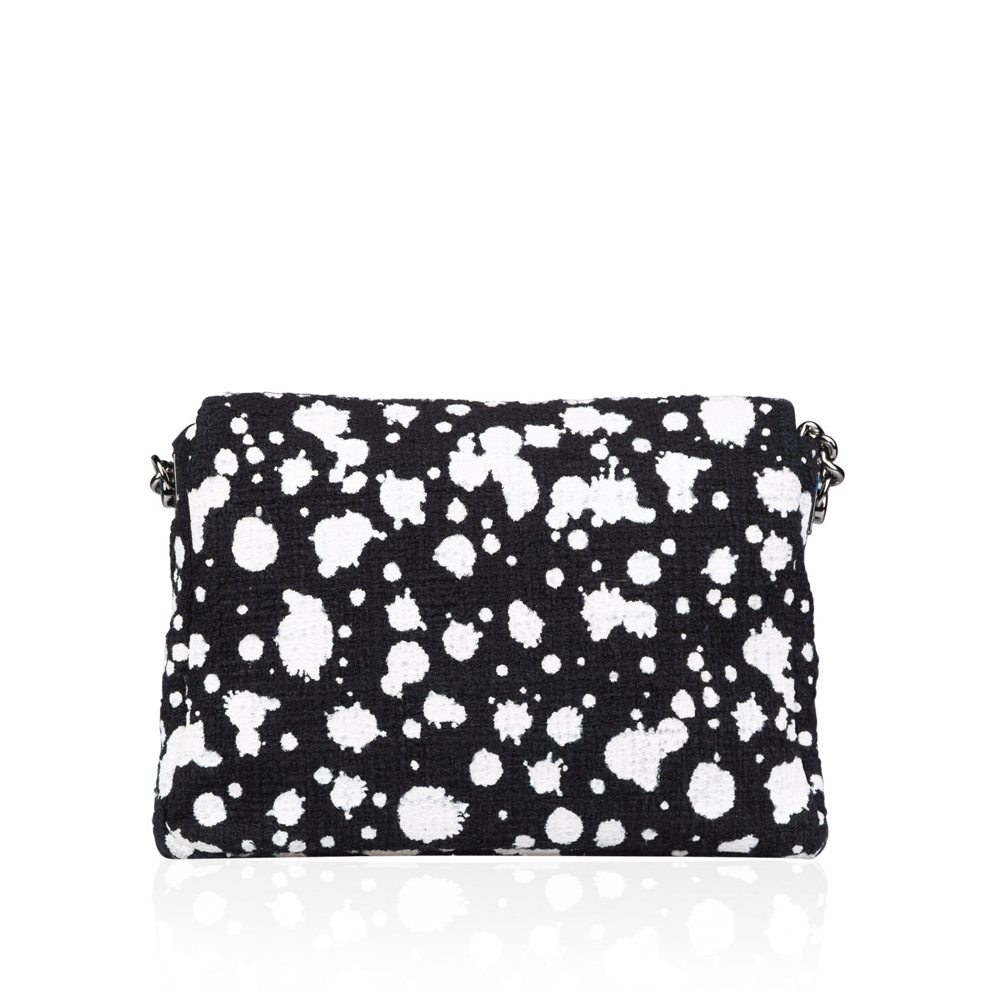 - Black tweed with white paint splatter print