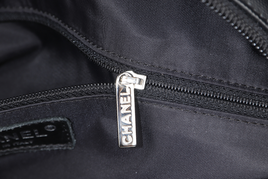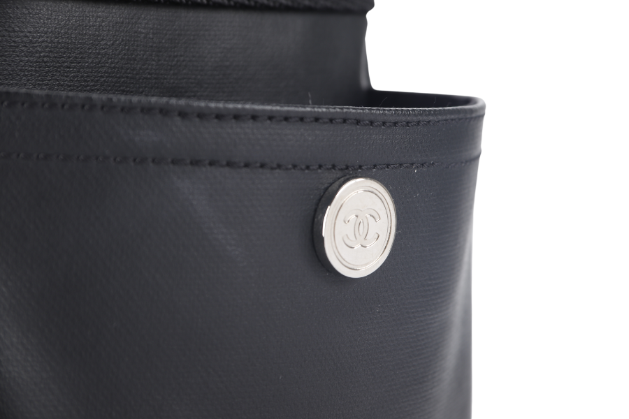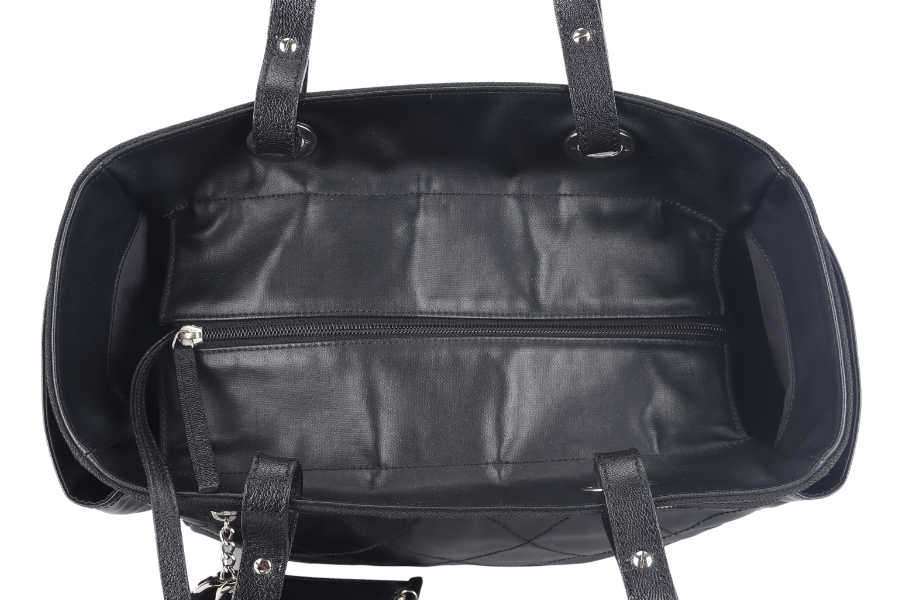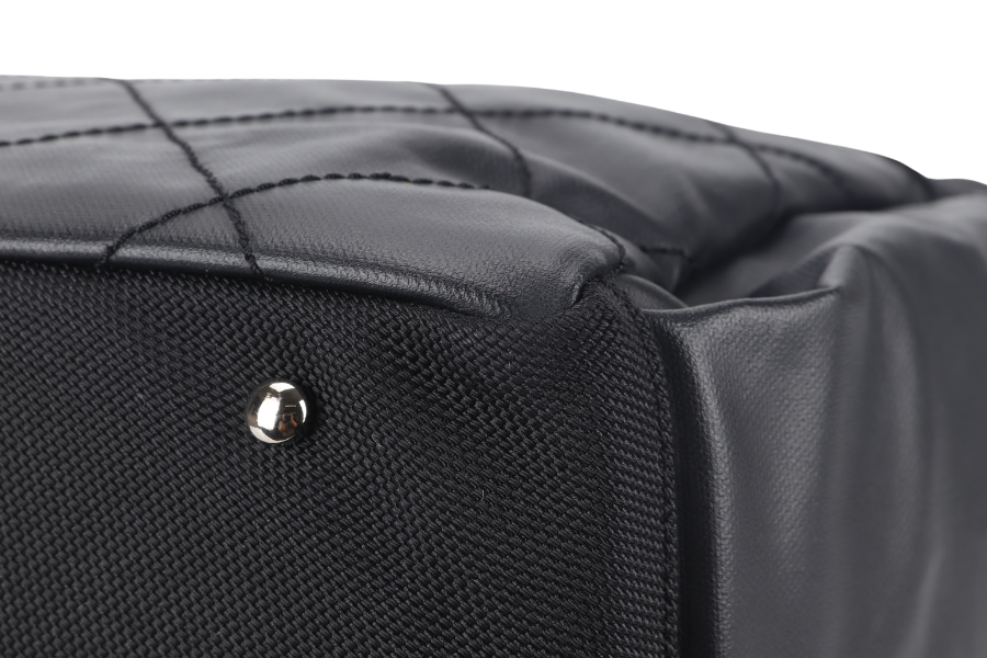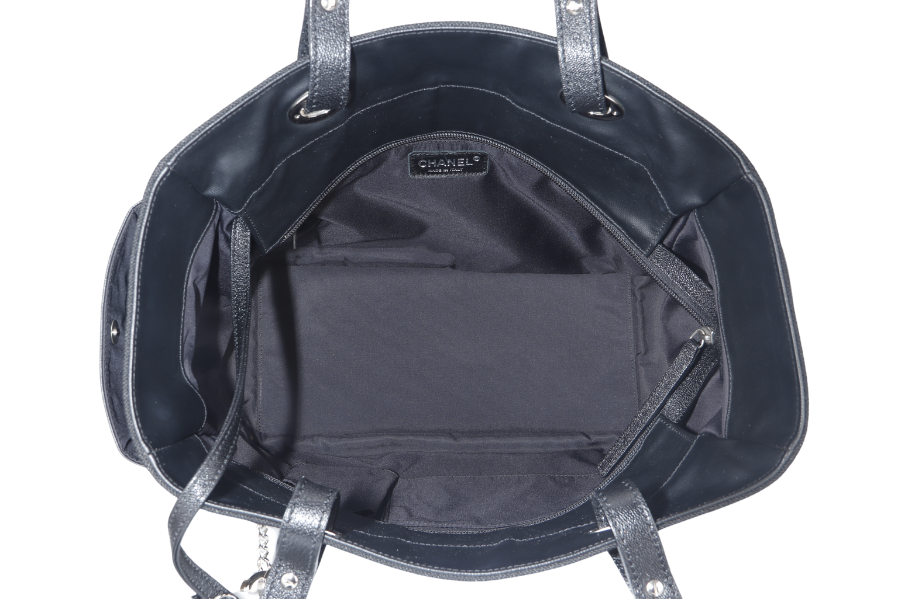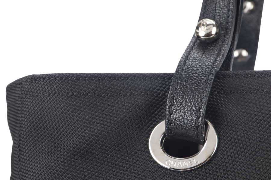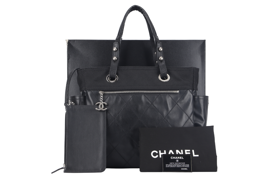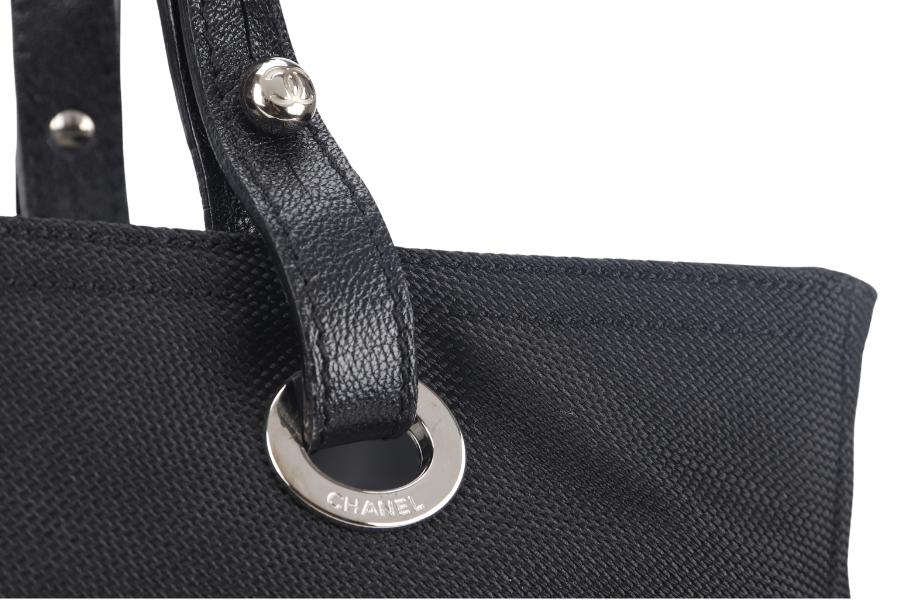 CHANEL PARIS BIARRITZ MEDIUM TOTE (1251xxxx) BLACK COATED CANVAS SILVER HARDWARE WITH , DUST COVER AND BOX