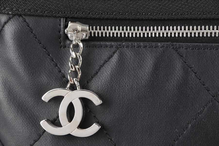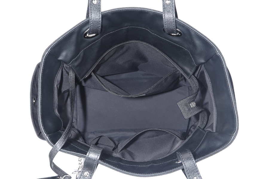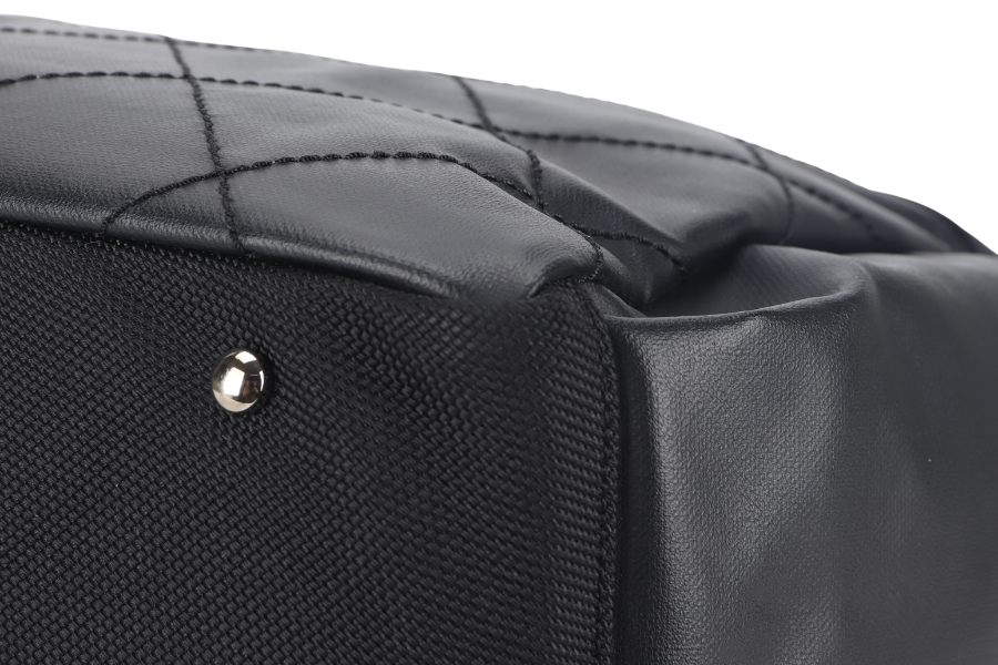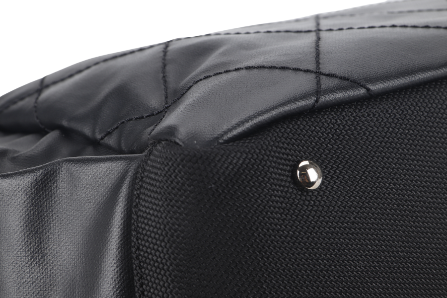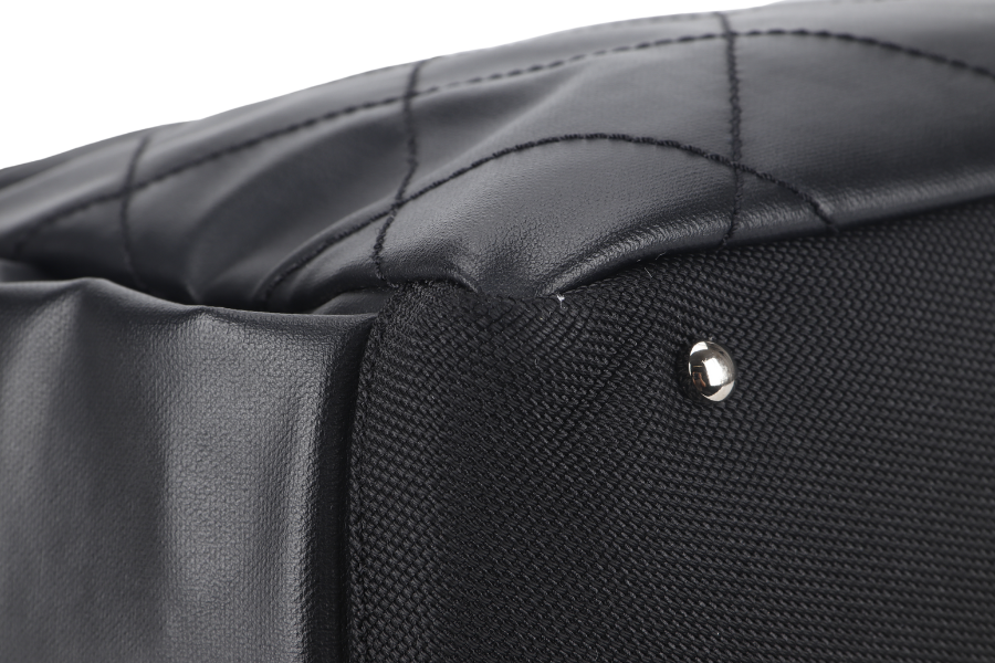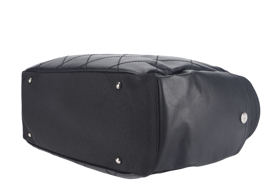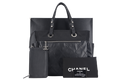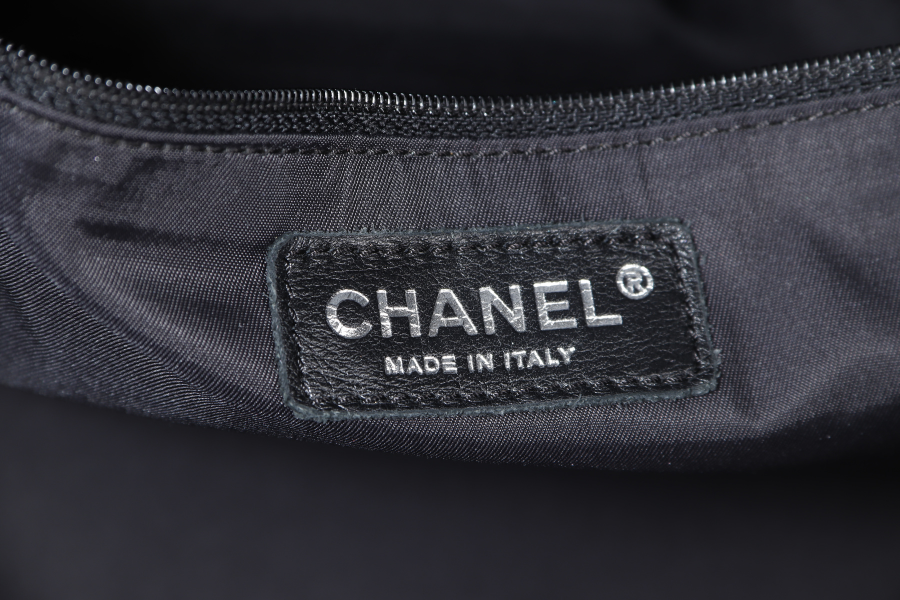 CHANEL PARIS BIARRITZ MEDIUM TOTE (1251xxxx) BLACK COATED CANVAS SILVER HARDWARE WITH , DUST COVER AND BOX