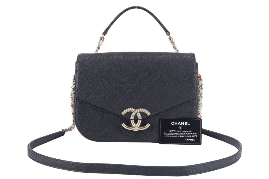 CHANEL PARIS-CUBA THREAD AROUND FLAP BAG (2359xxxx) BLACK CAVIAR LEATHER GOLD HARDWARE WITH