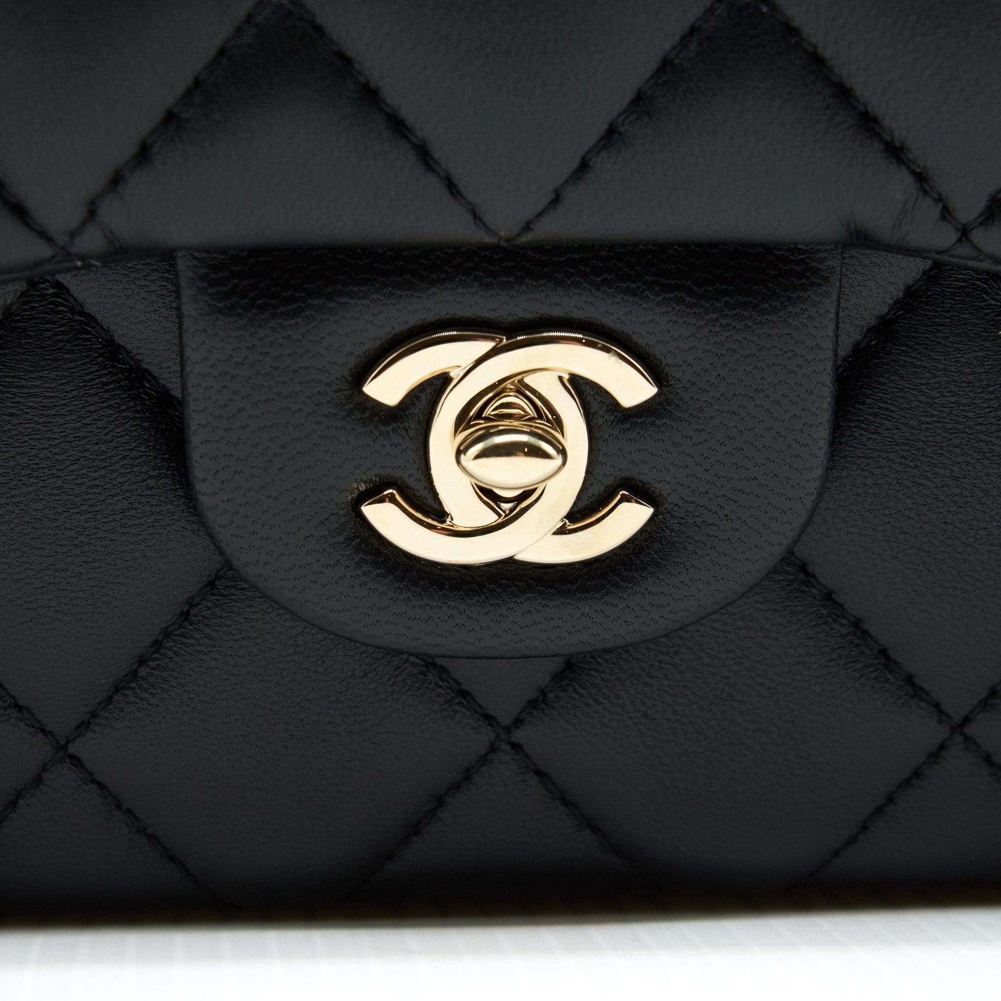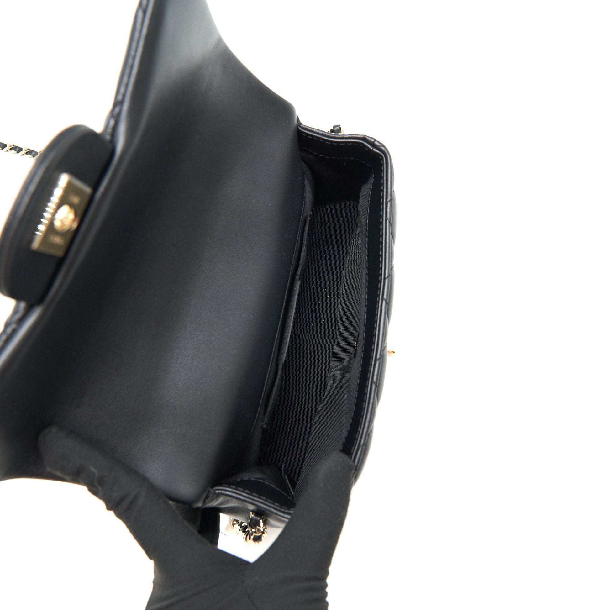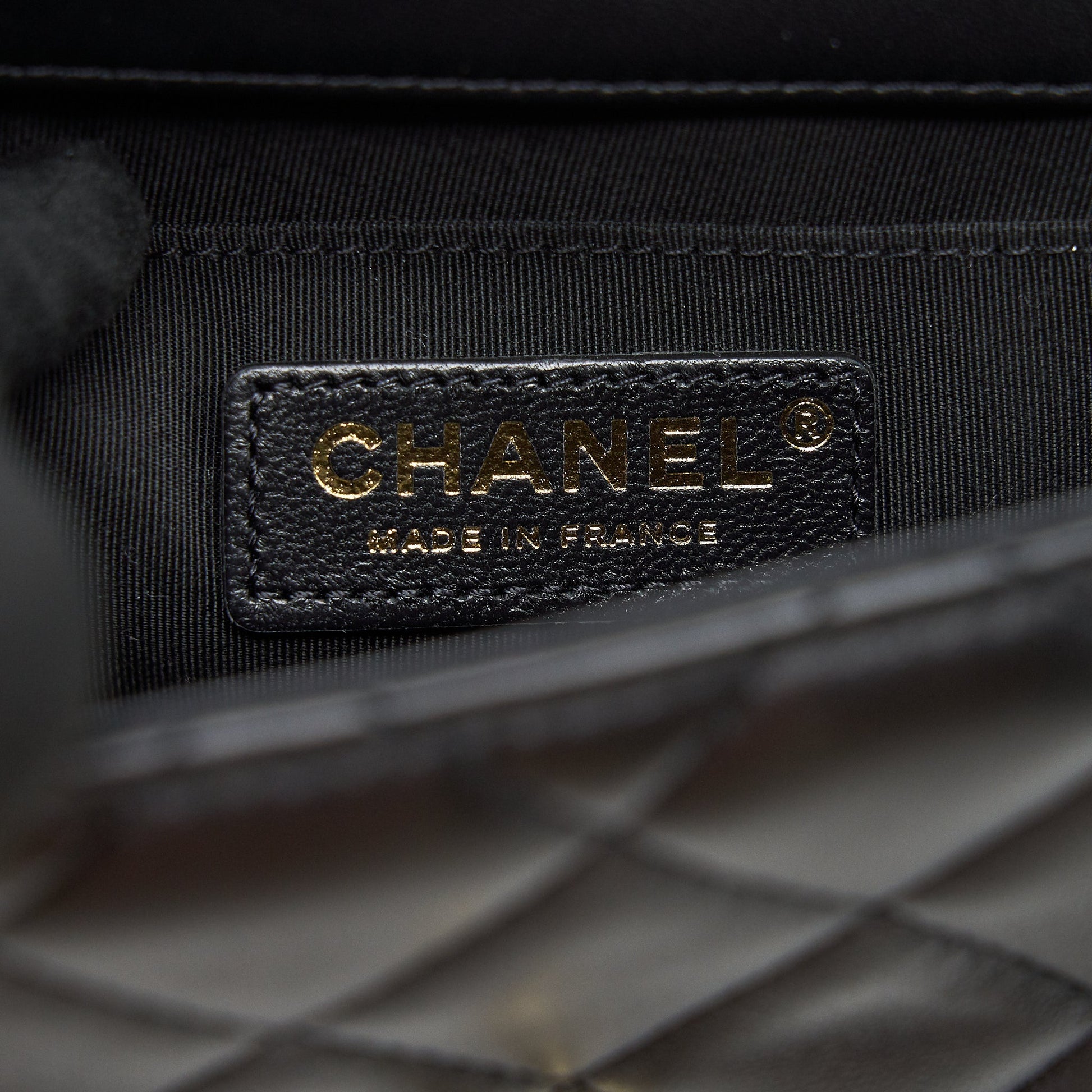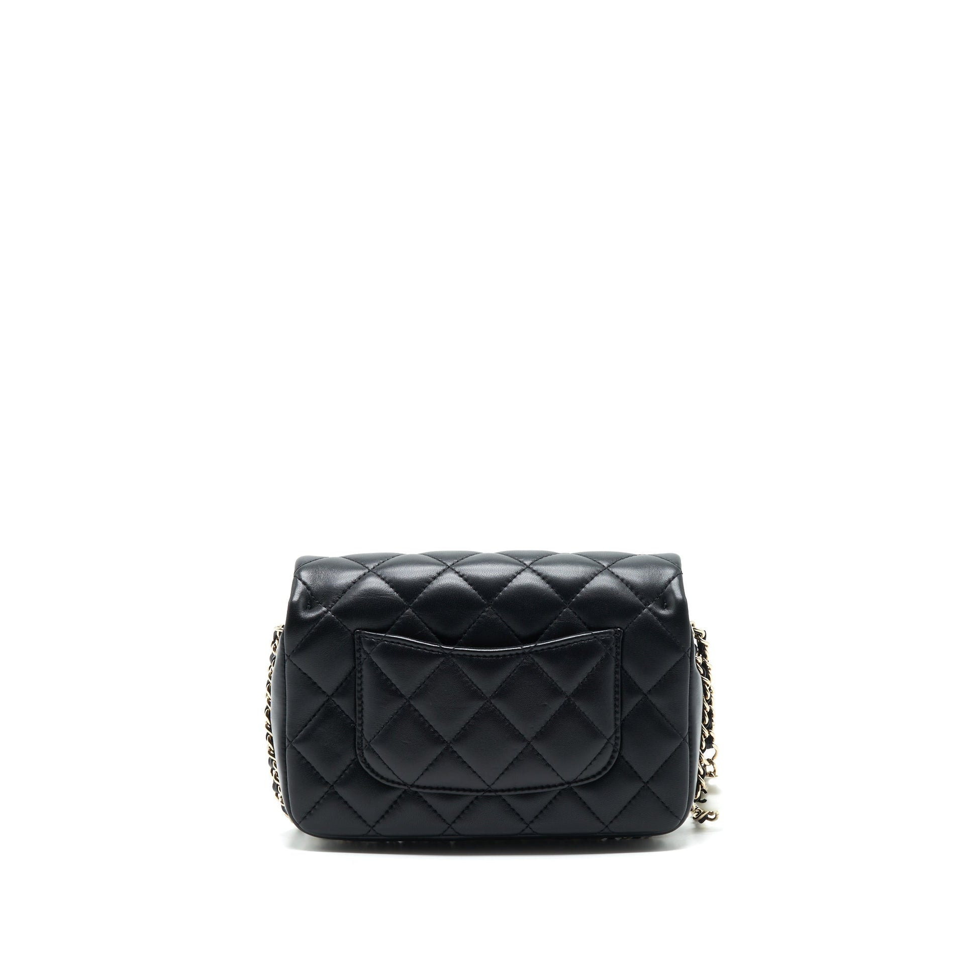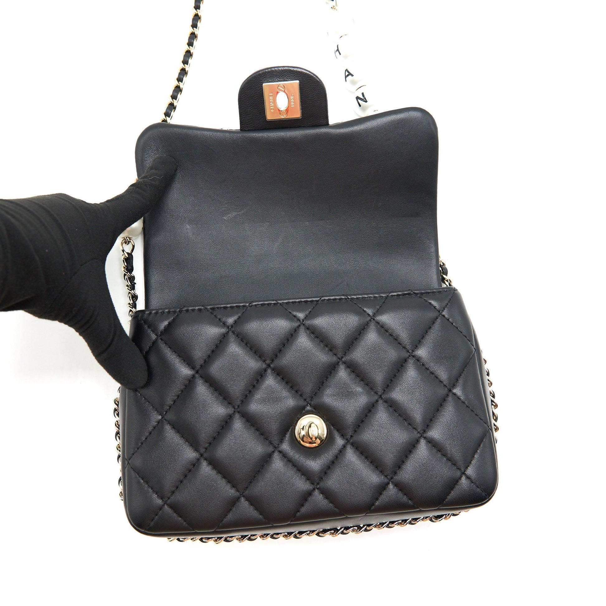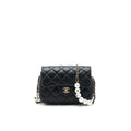 Chanel Pearl Chain Flap Bag Quilted Grained Lambskin Black LGHW