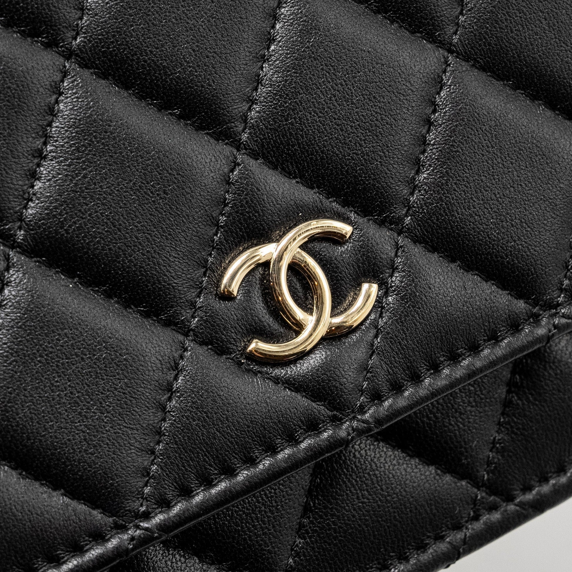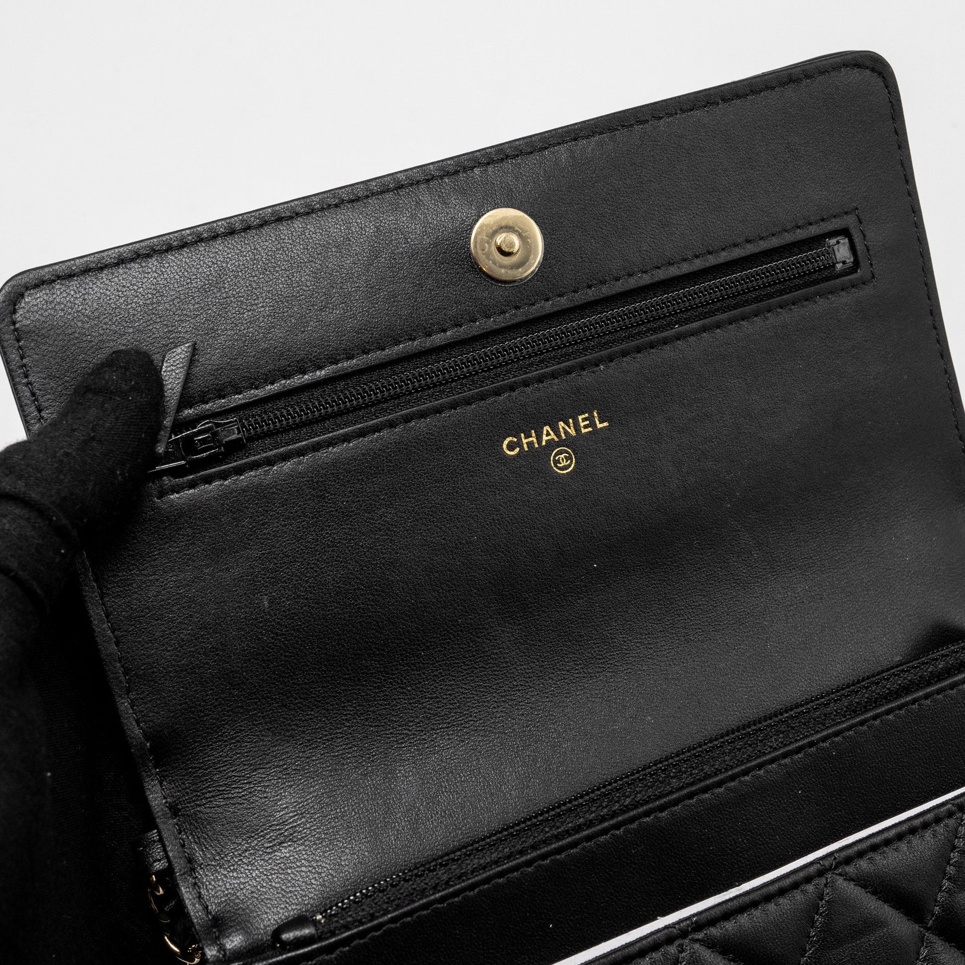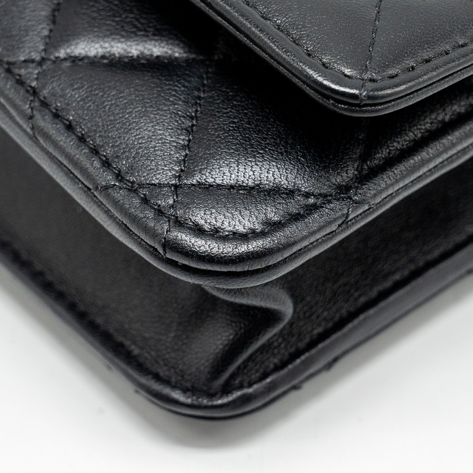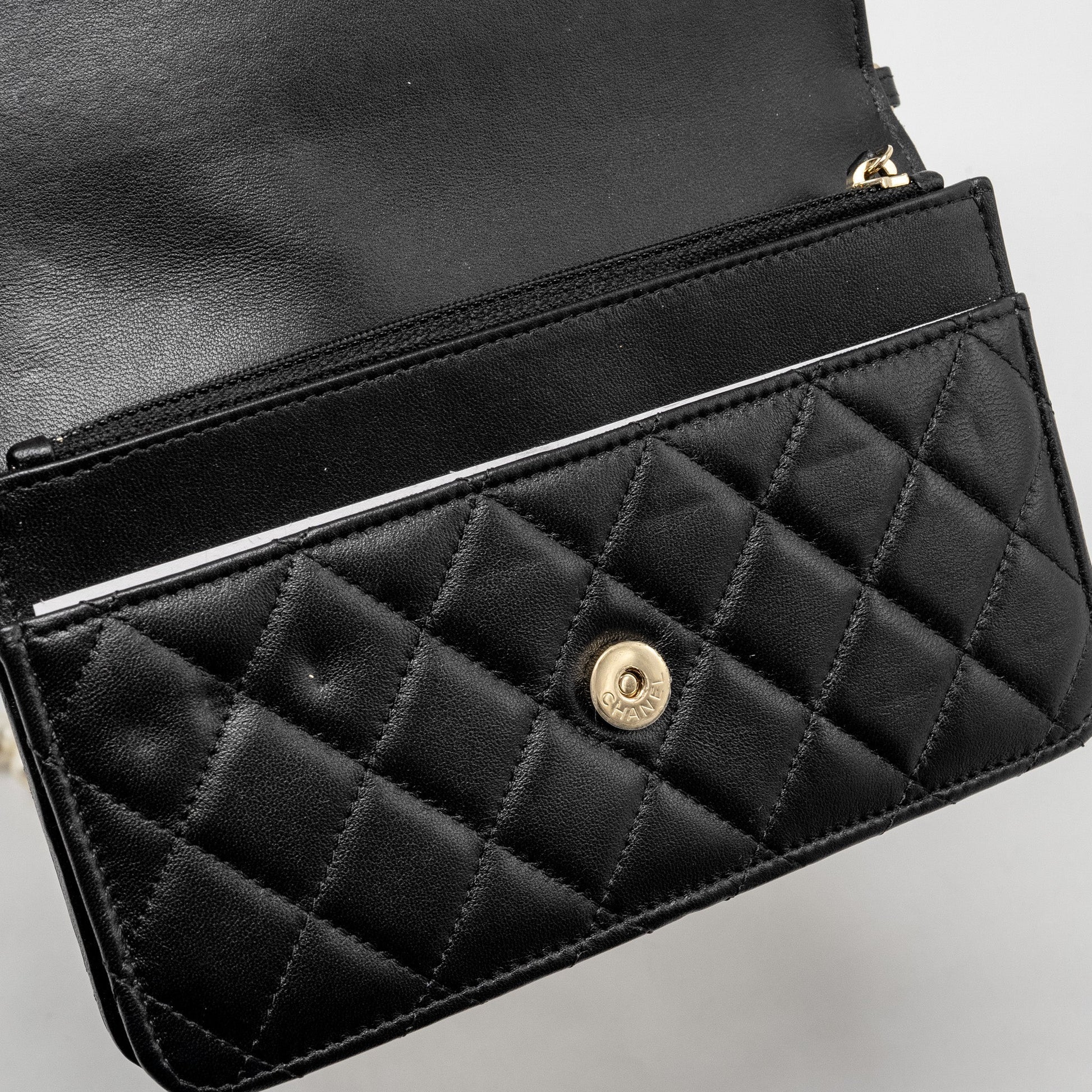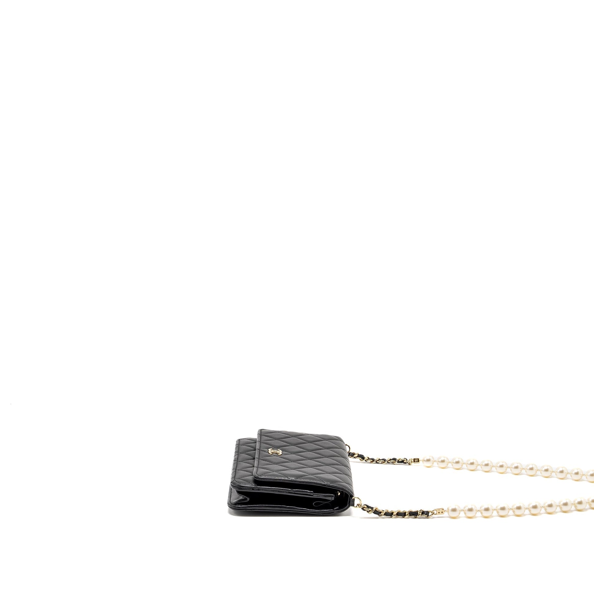 Chanel Pearl Chain Wallet On Chain Lambskin Black LGHW(microchip)