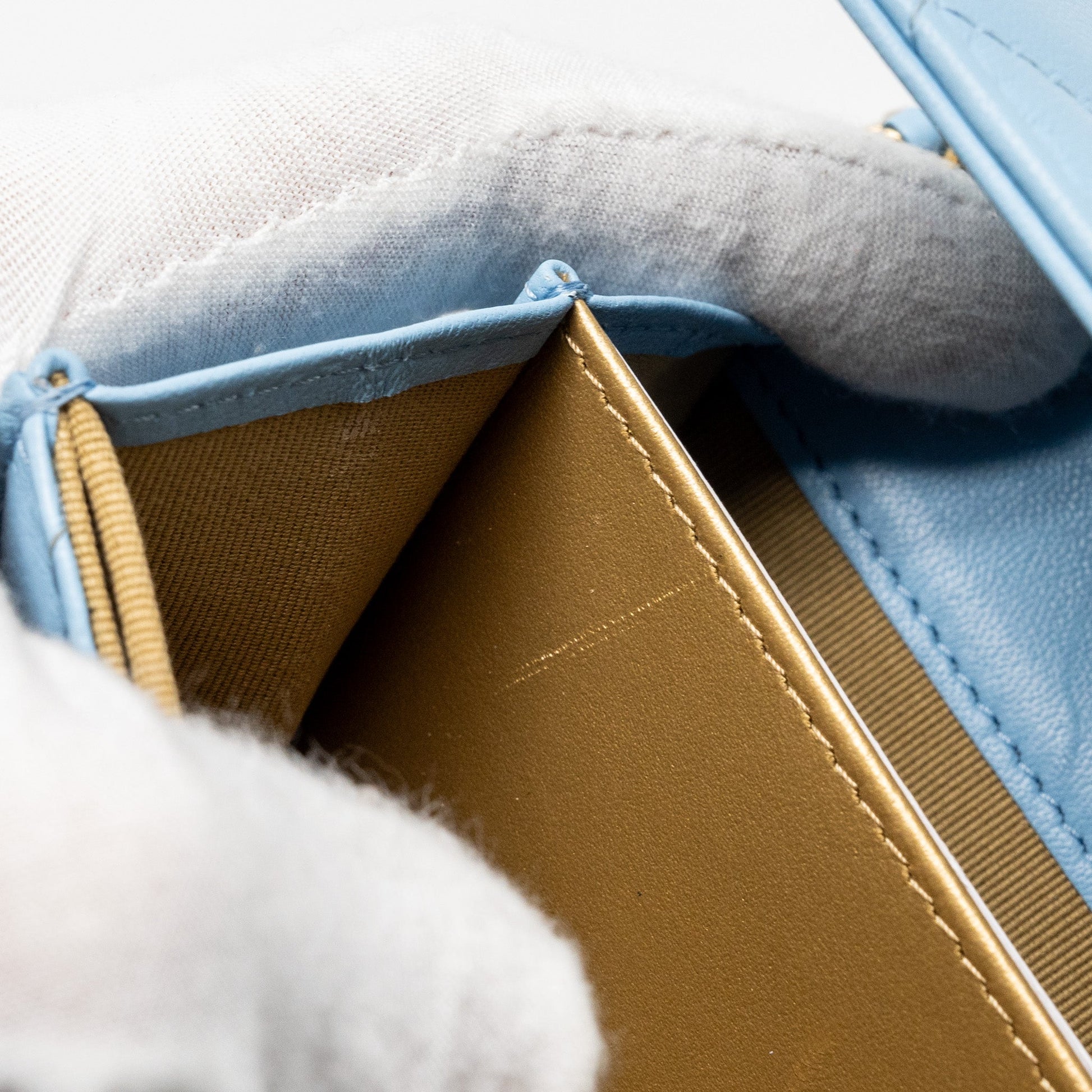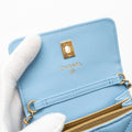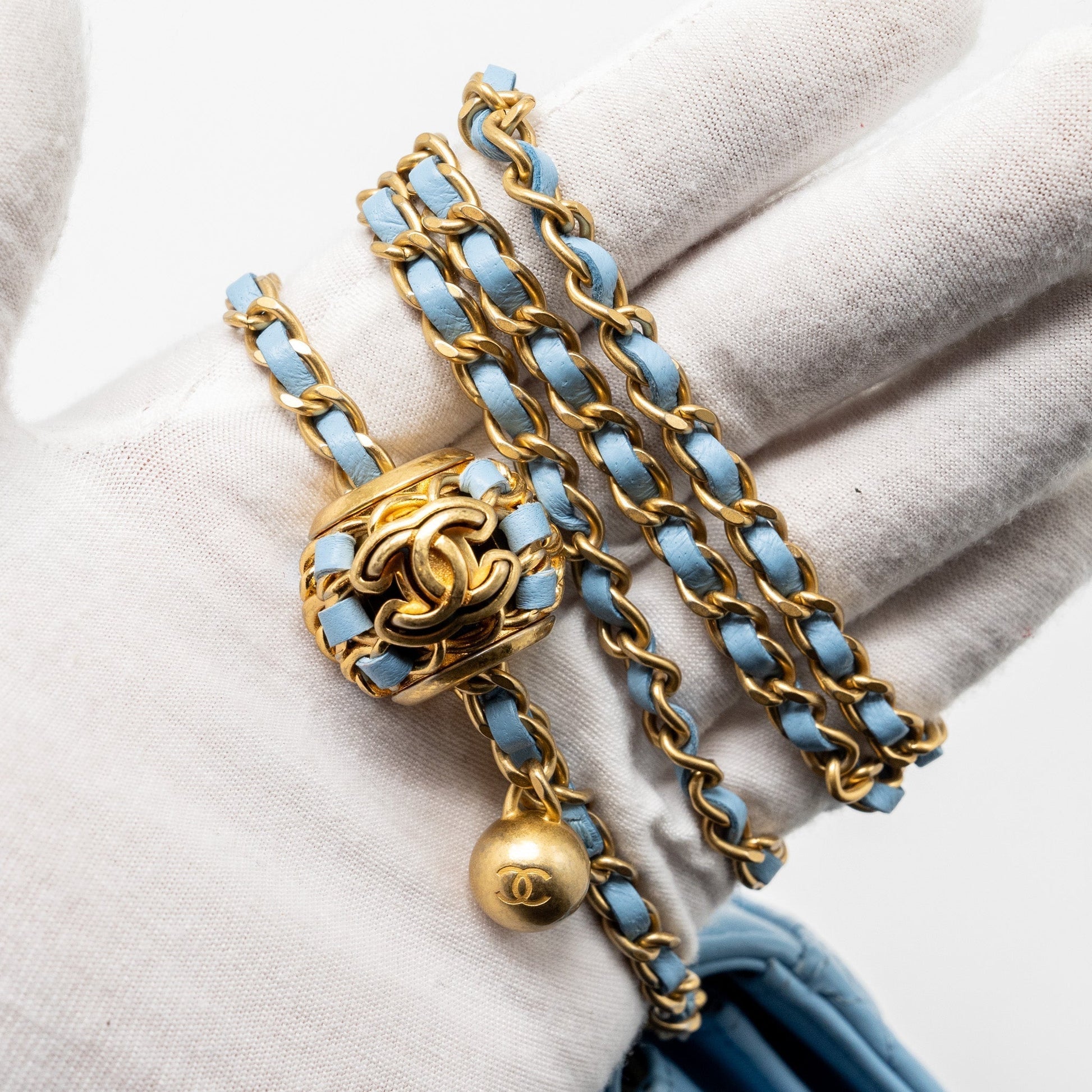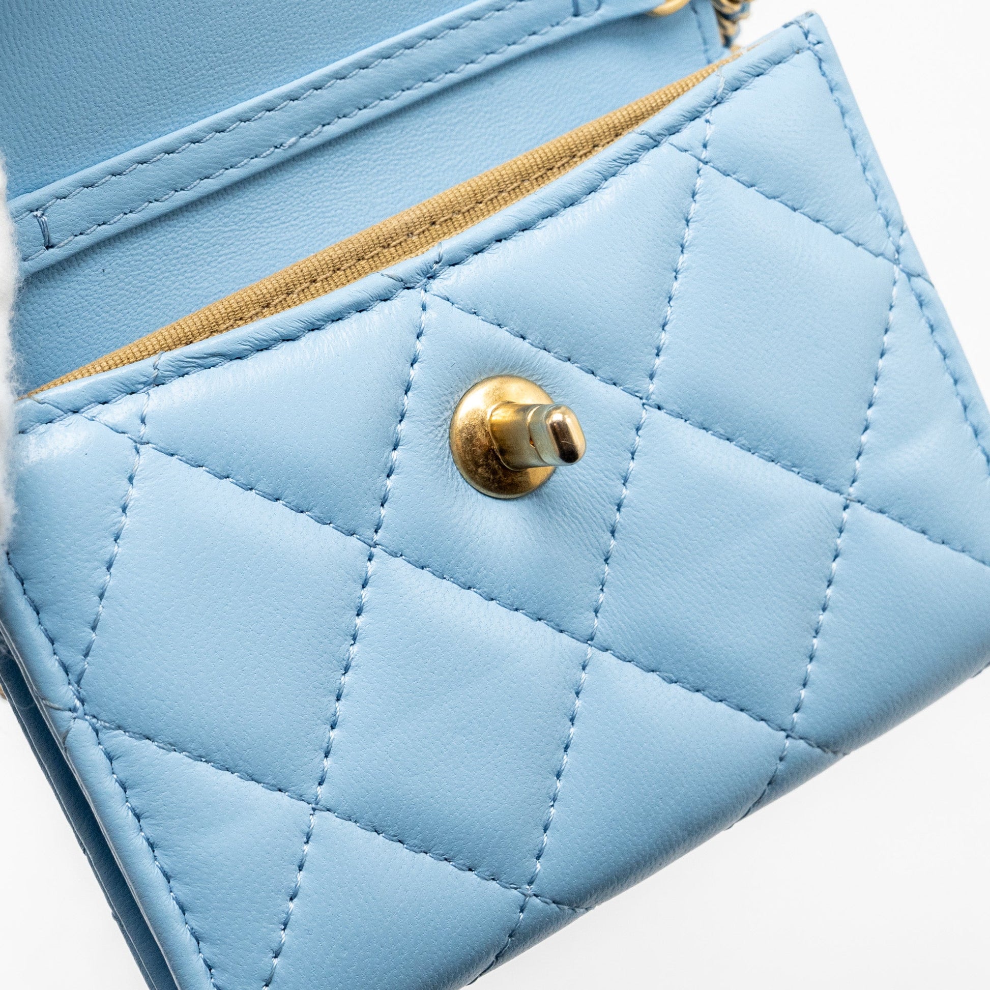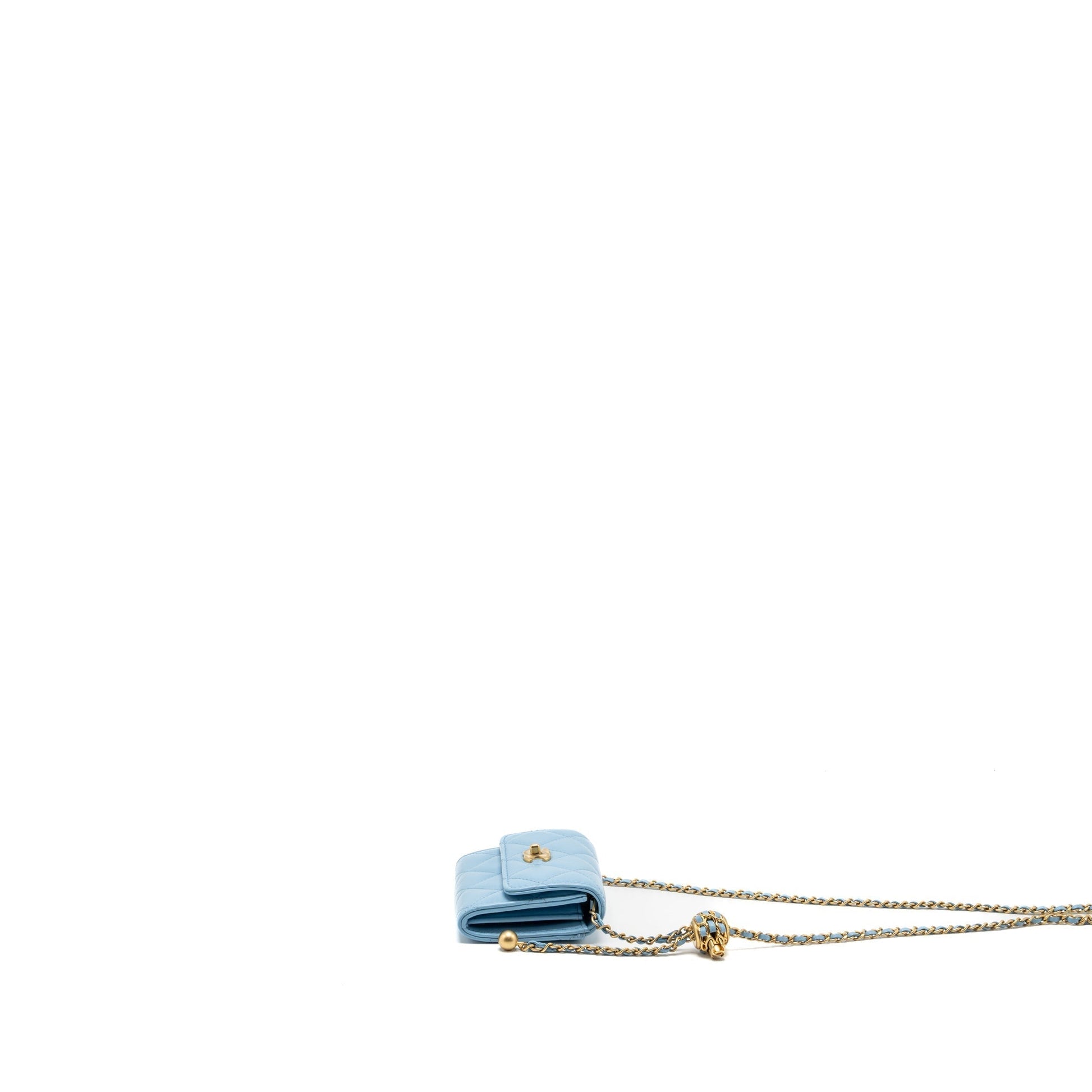 Chanel Pearl crush mini flap wallet with chain lambskin blue GHW