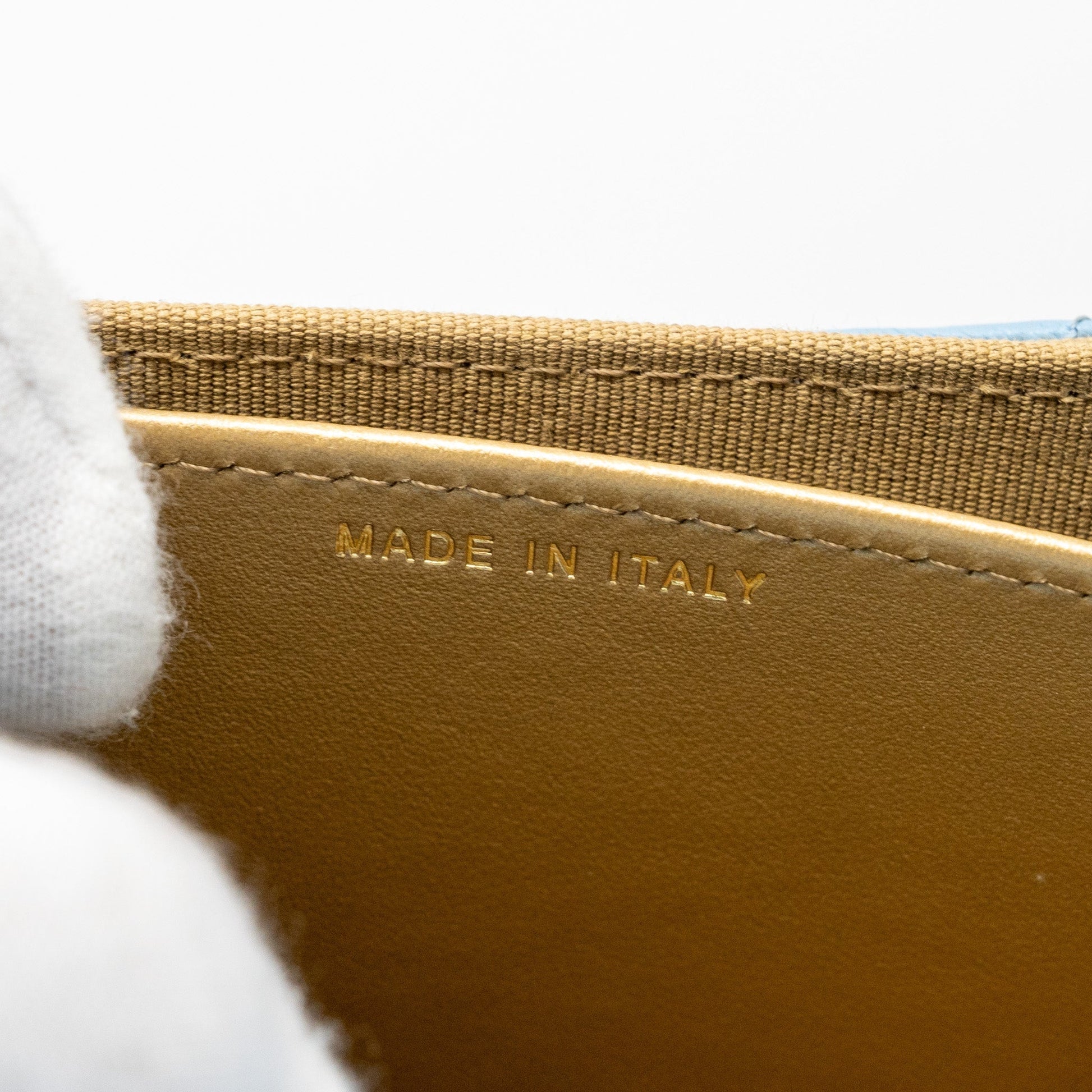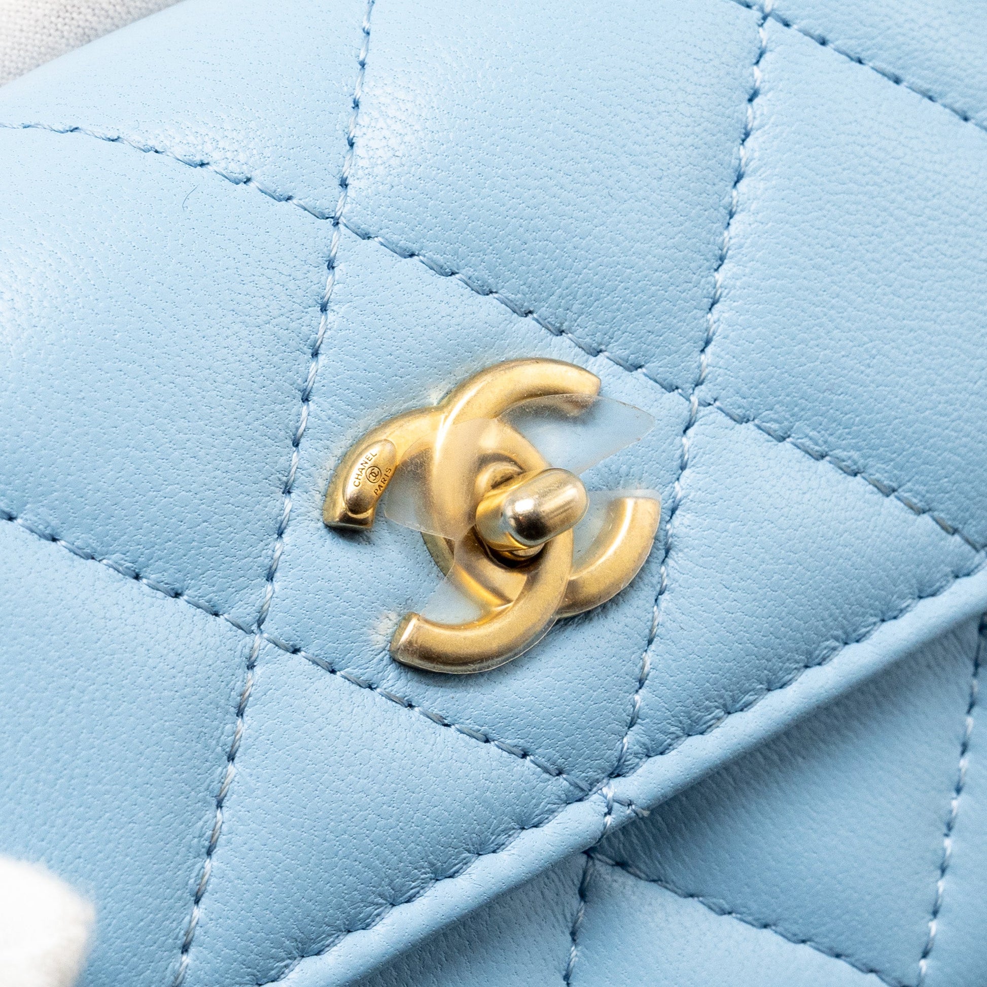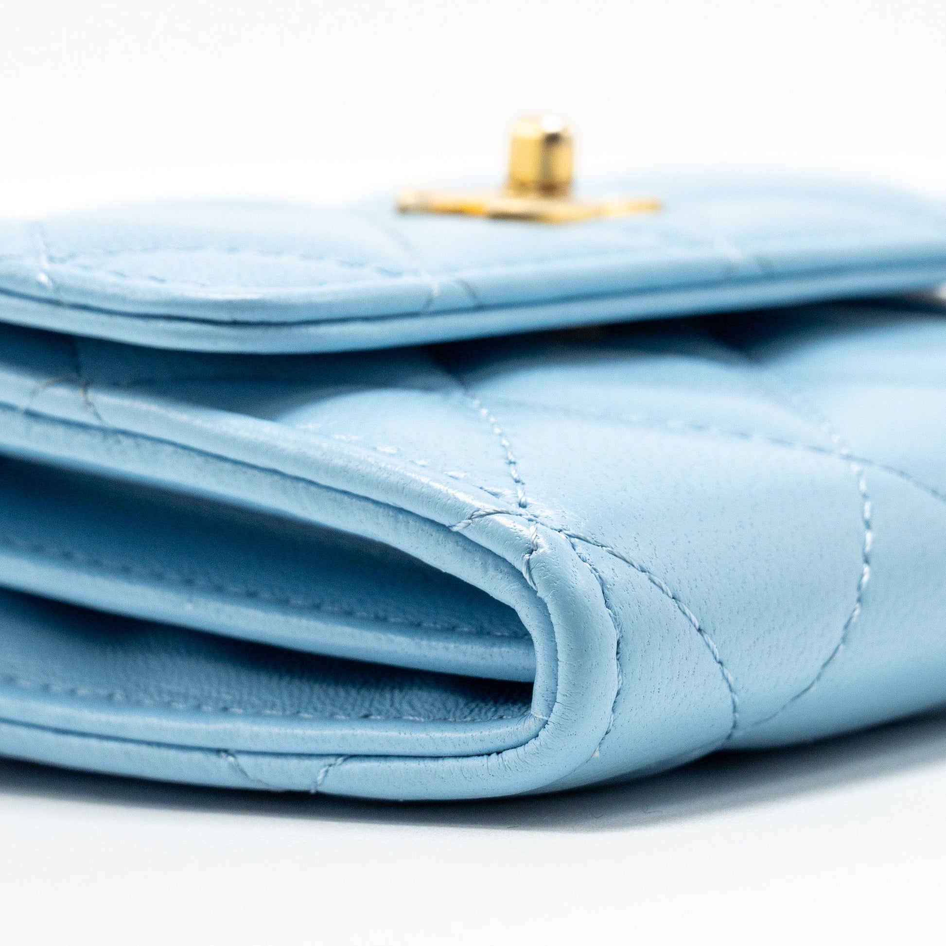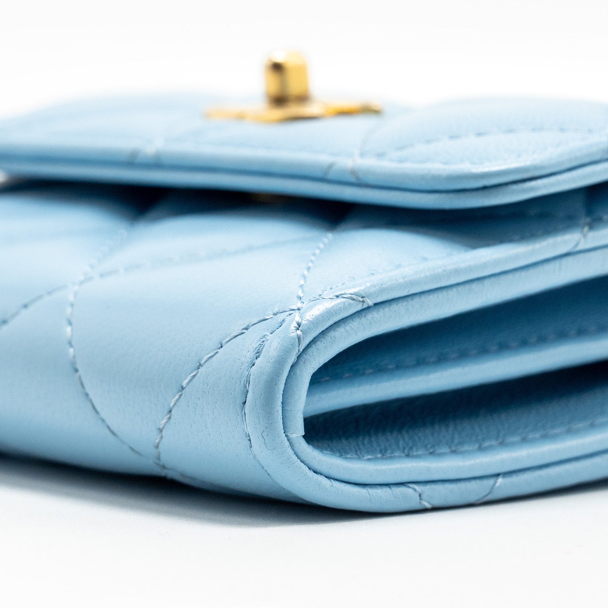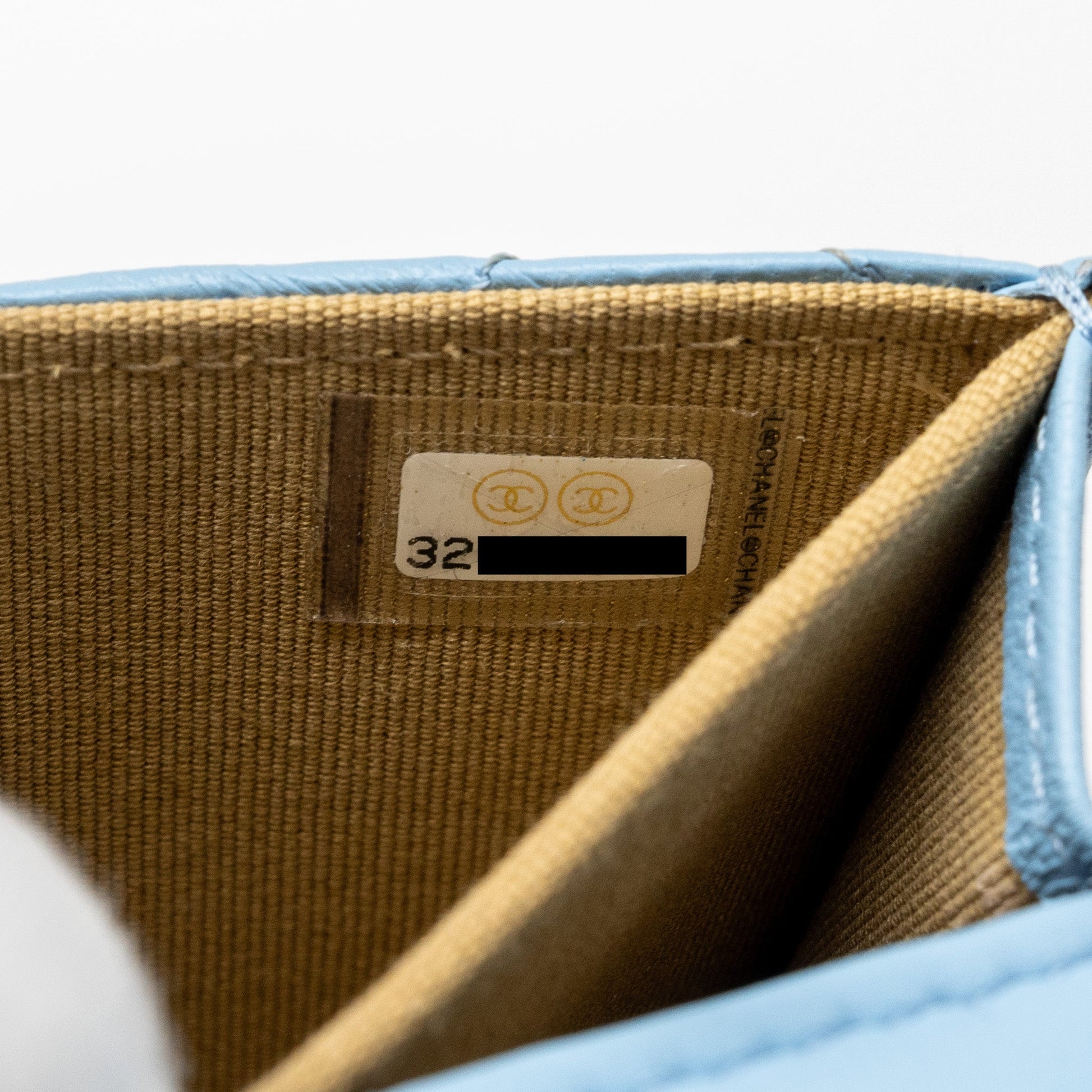 Chanel Pearl crush mini flap wallet with chain lambskin blue GHW