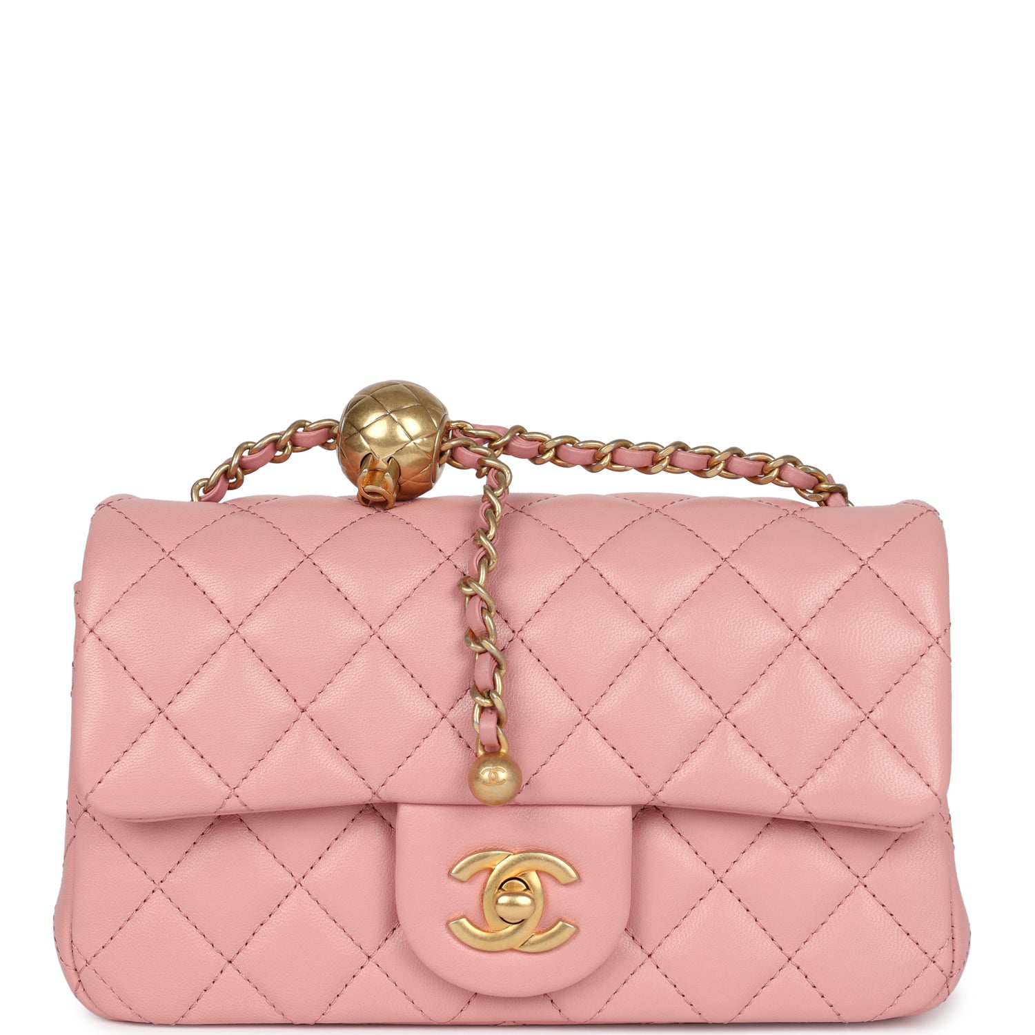 Chanel Mini Pearl Crush Rectangular Flap Dark Pink Lambskin Brushed Gold Hardware