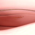 The interior is lined in dark pink leather and features a zipper pocket with Chanel pull and an open pocket below.