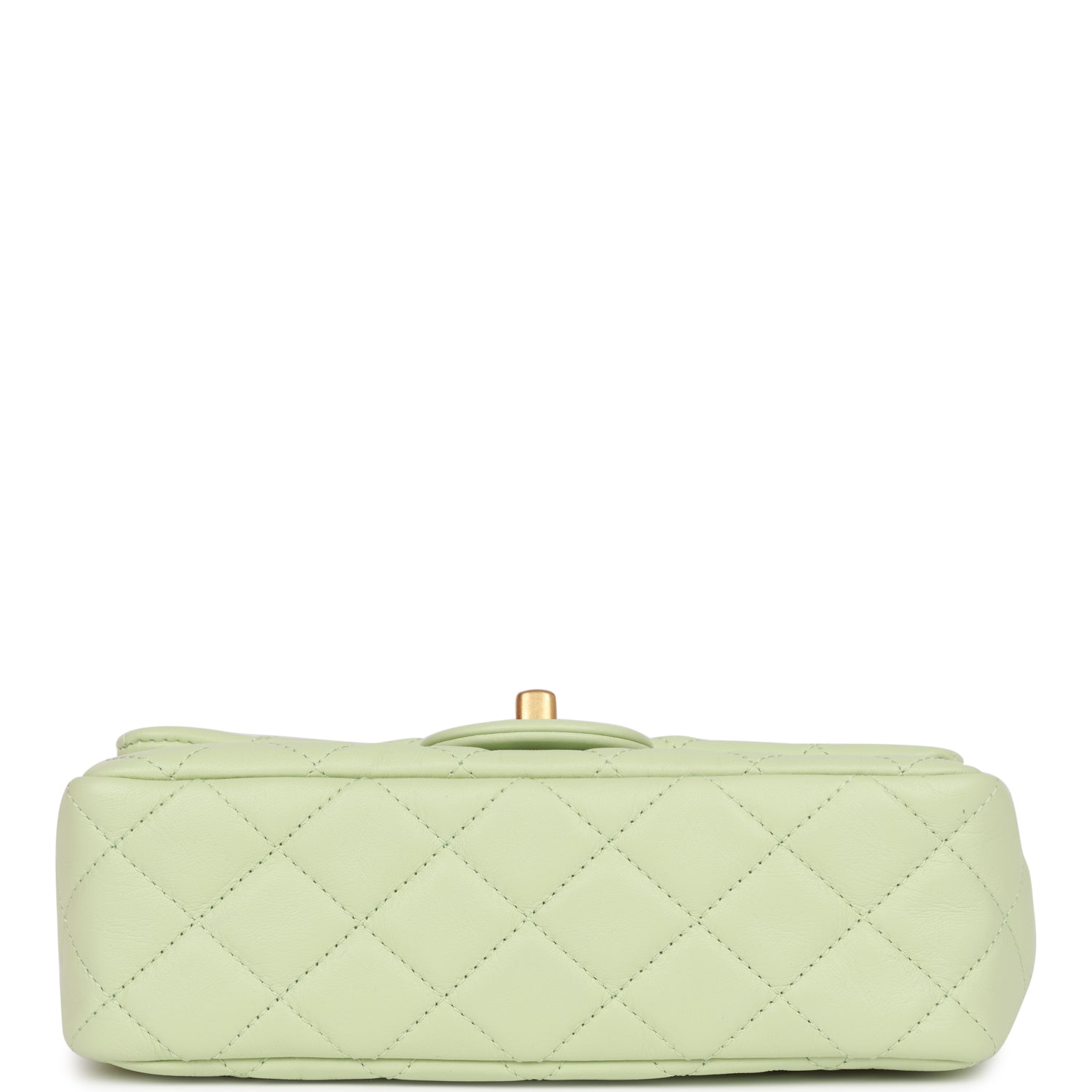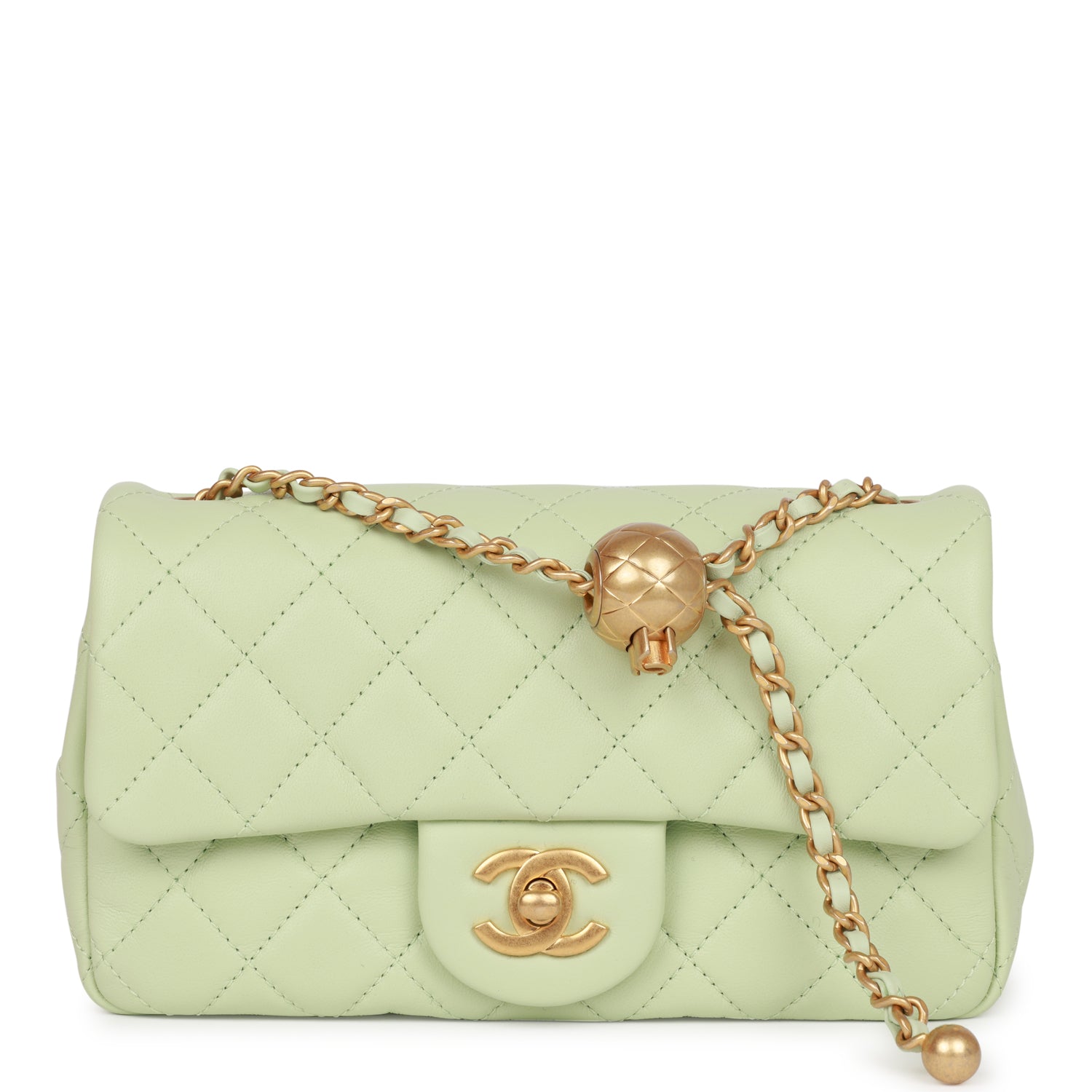 Chanel Pearl Crush Mini Rectangular Flap Bag Green Lambskin Antique Gold Hardware