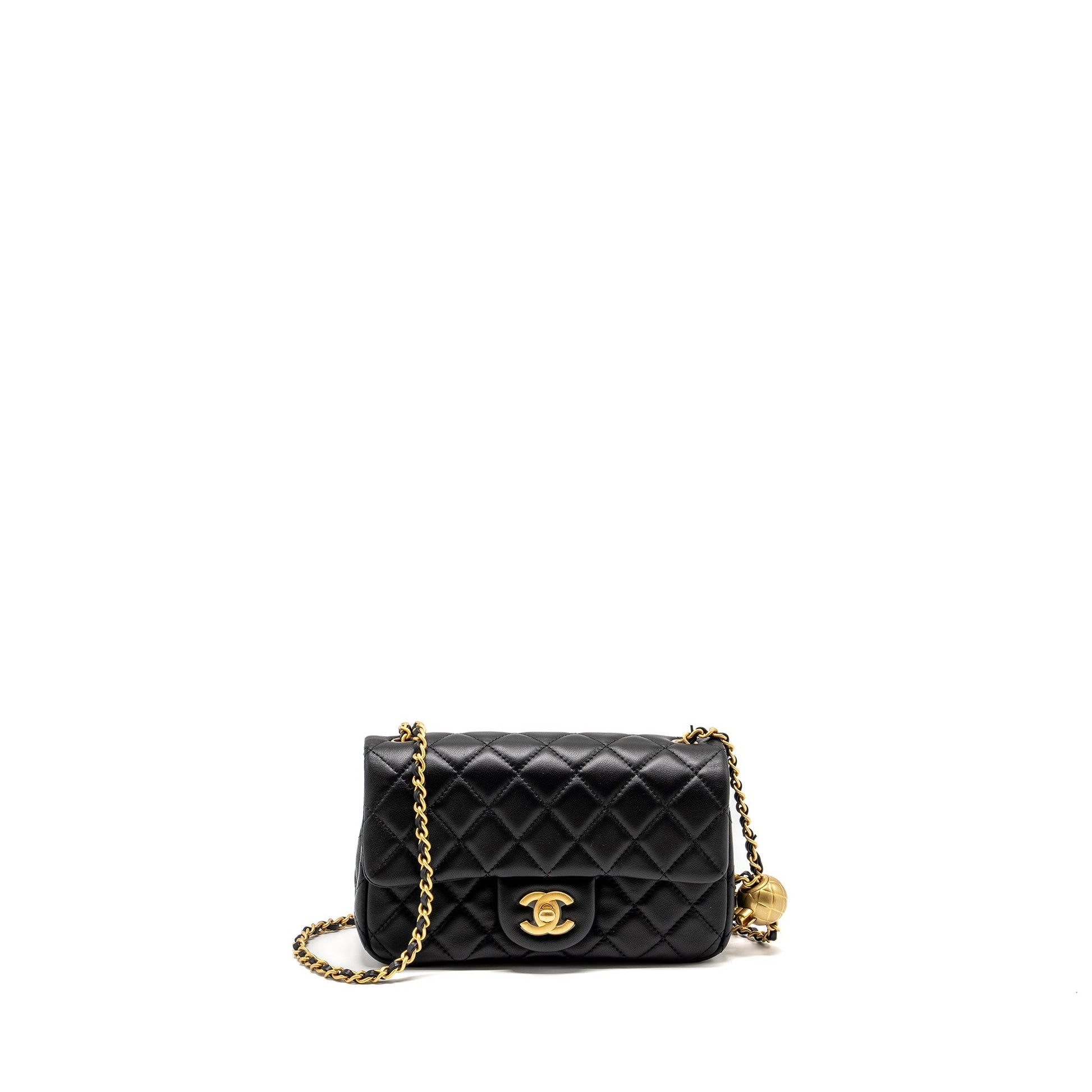 Chanel Pearl Crush Mini Rectangular Flap Bag Lambskin BLACK GHW (Microchip)