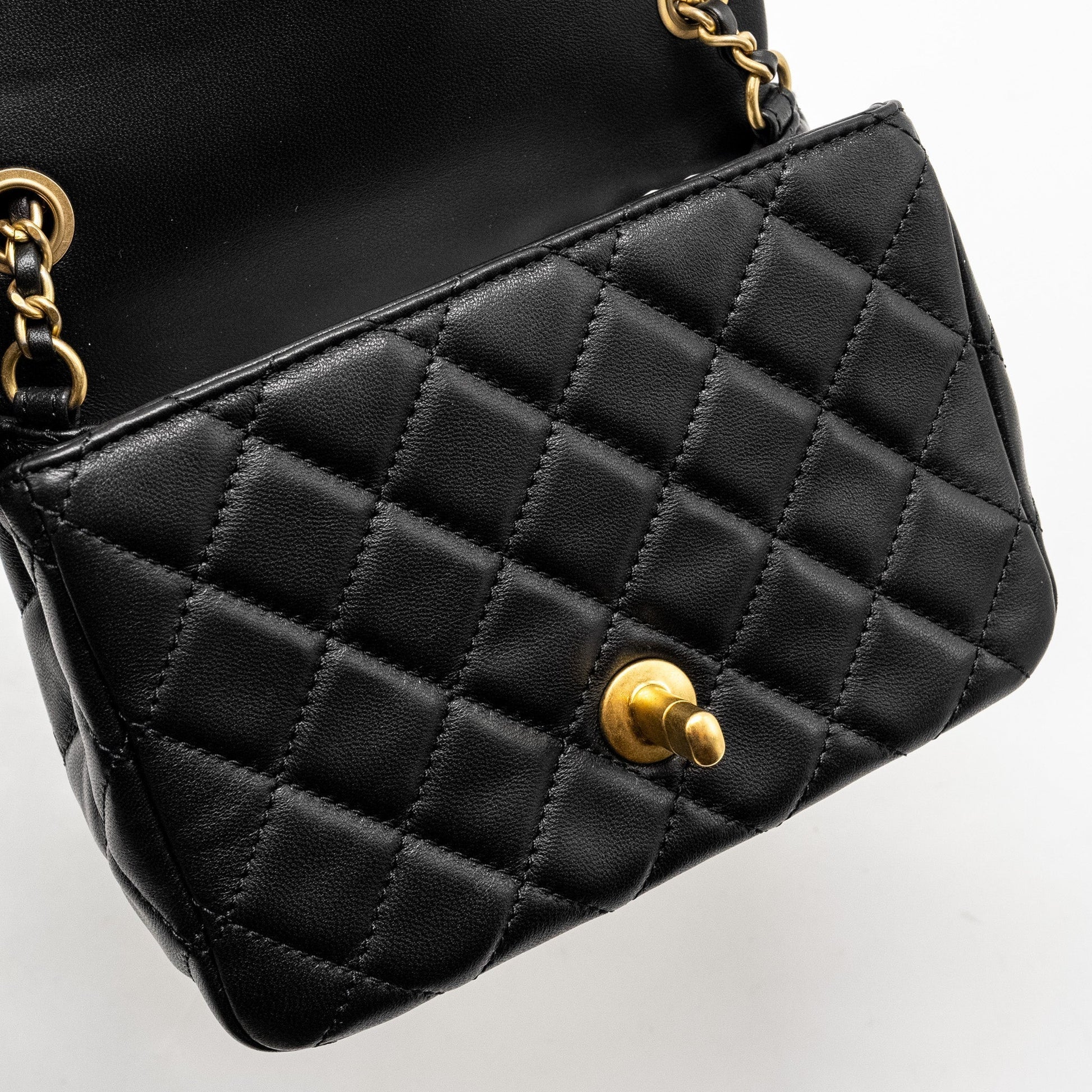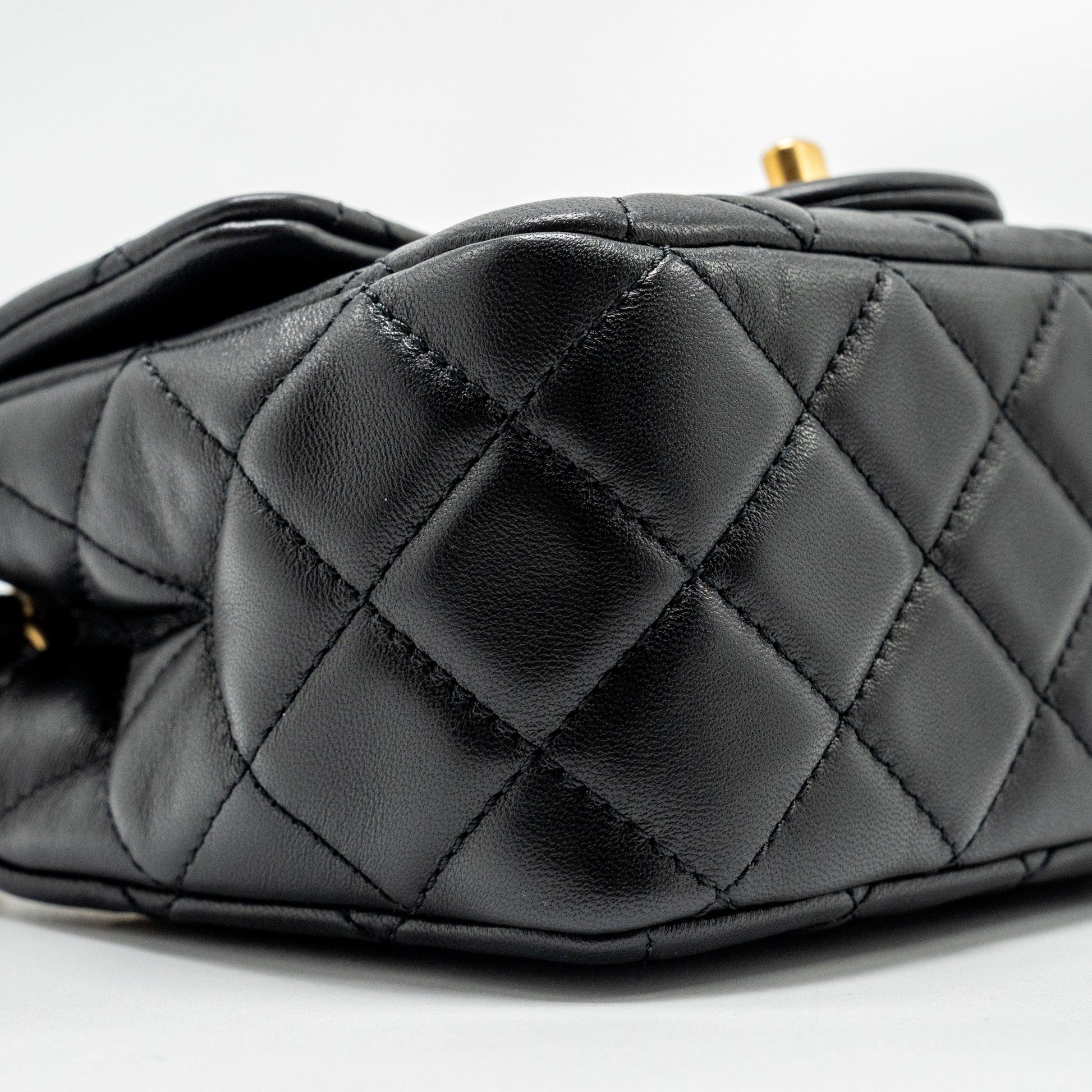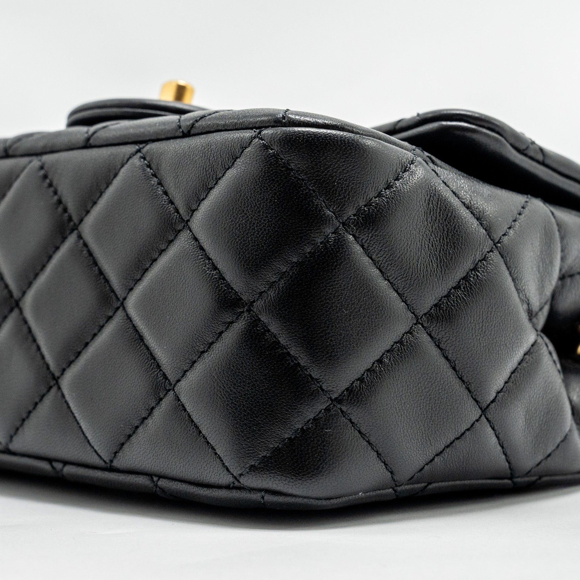 Chanel Pearl Crush Mini Square Flap Bag Lambskin Black GHW (microchip)