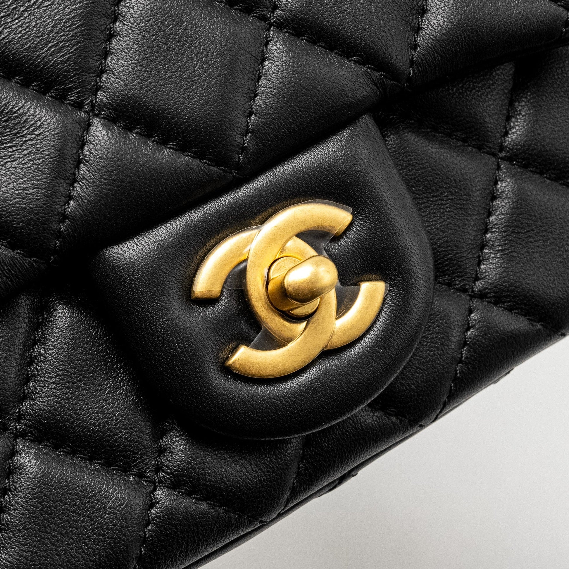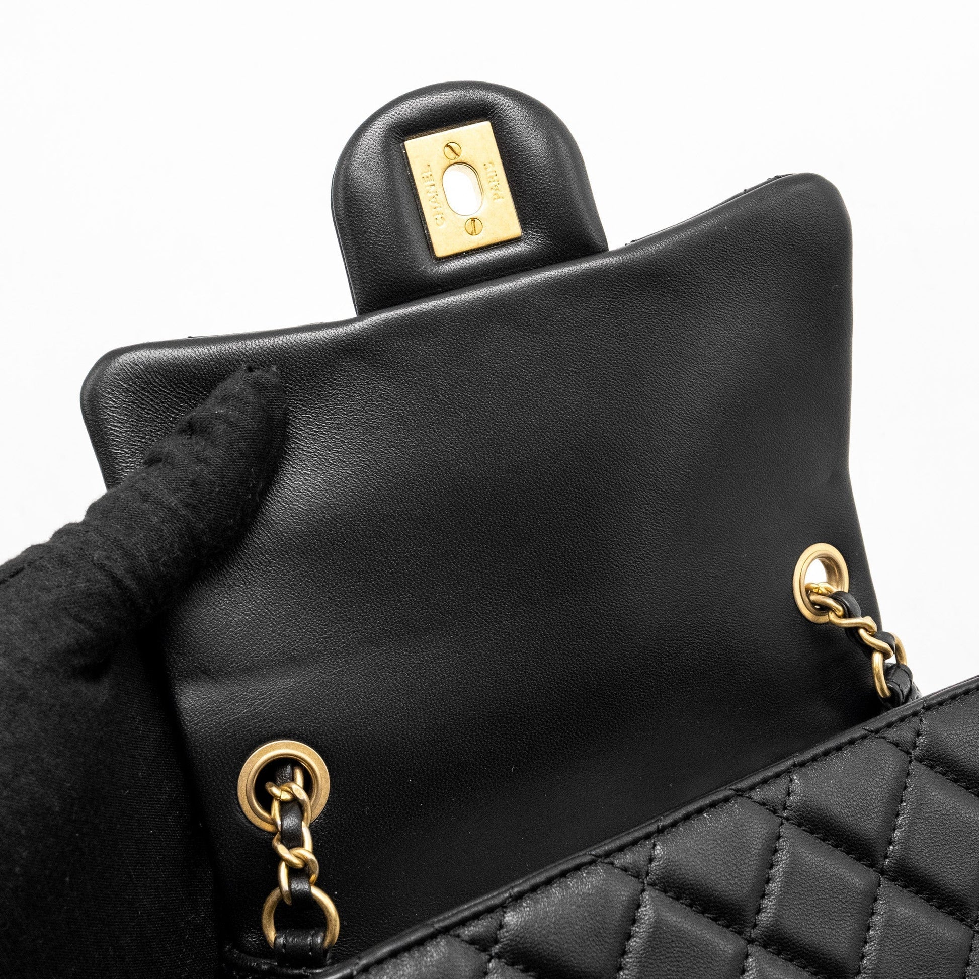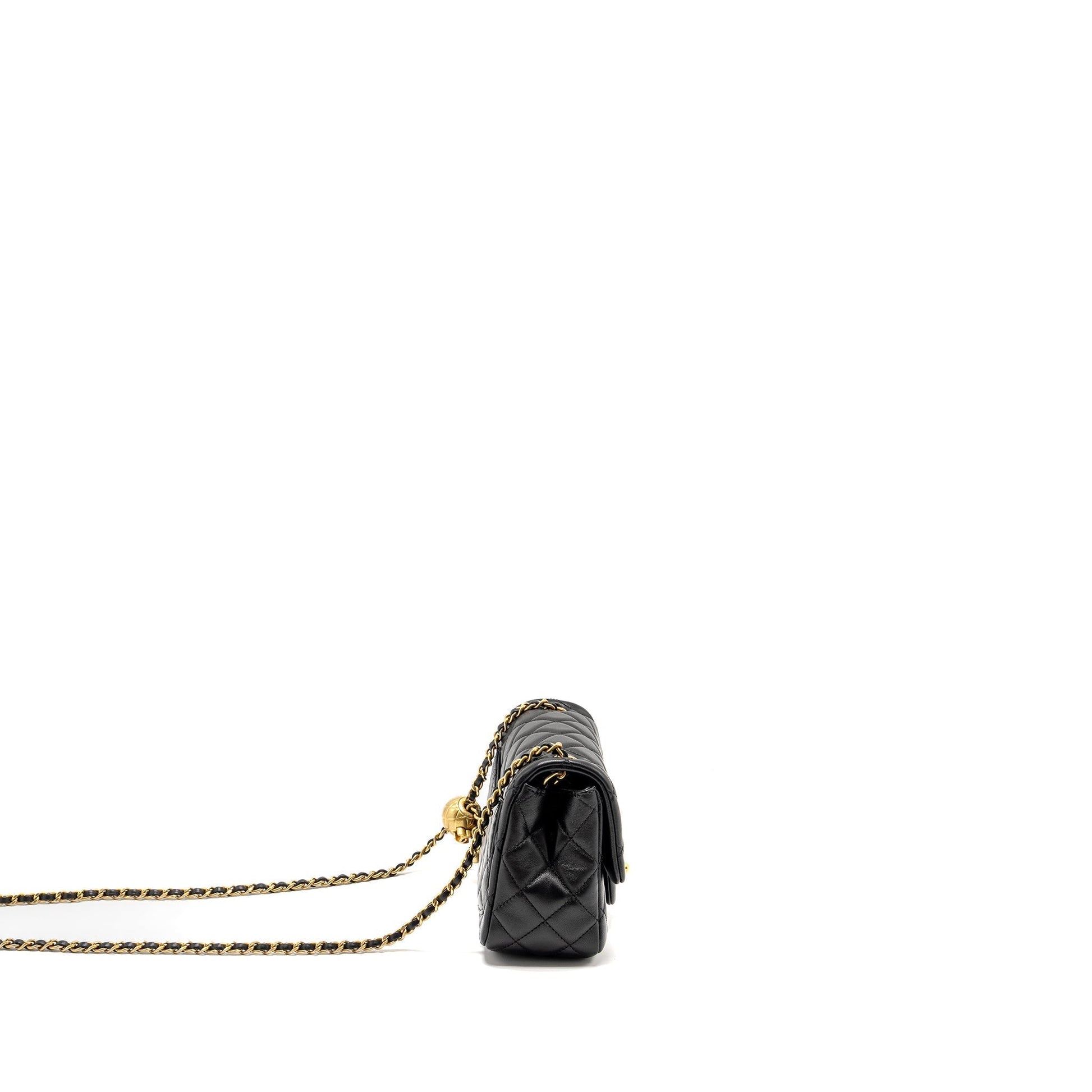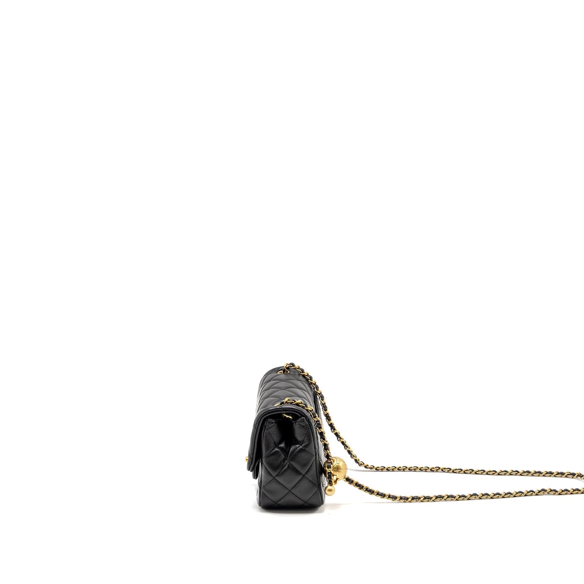 Chanel Pearl Crush Mini Square Flap Bag Lambskin Black GHW (microchip)
