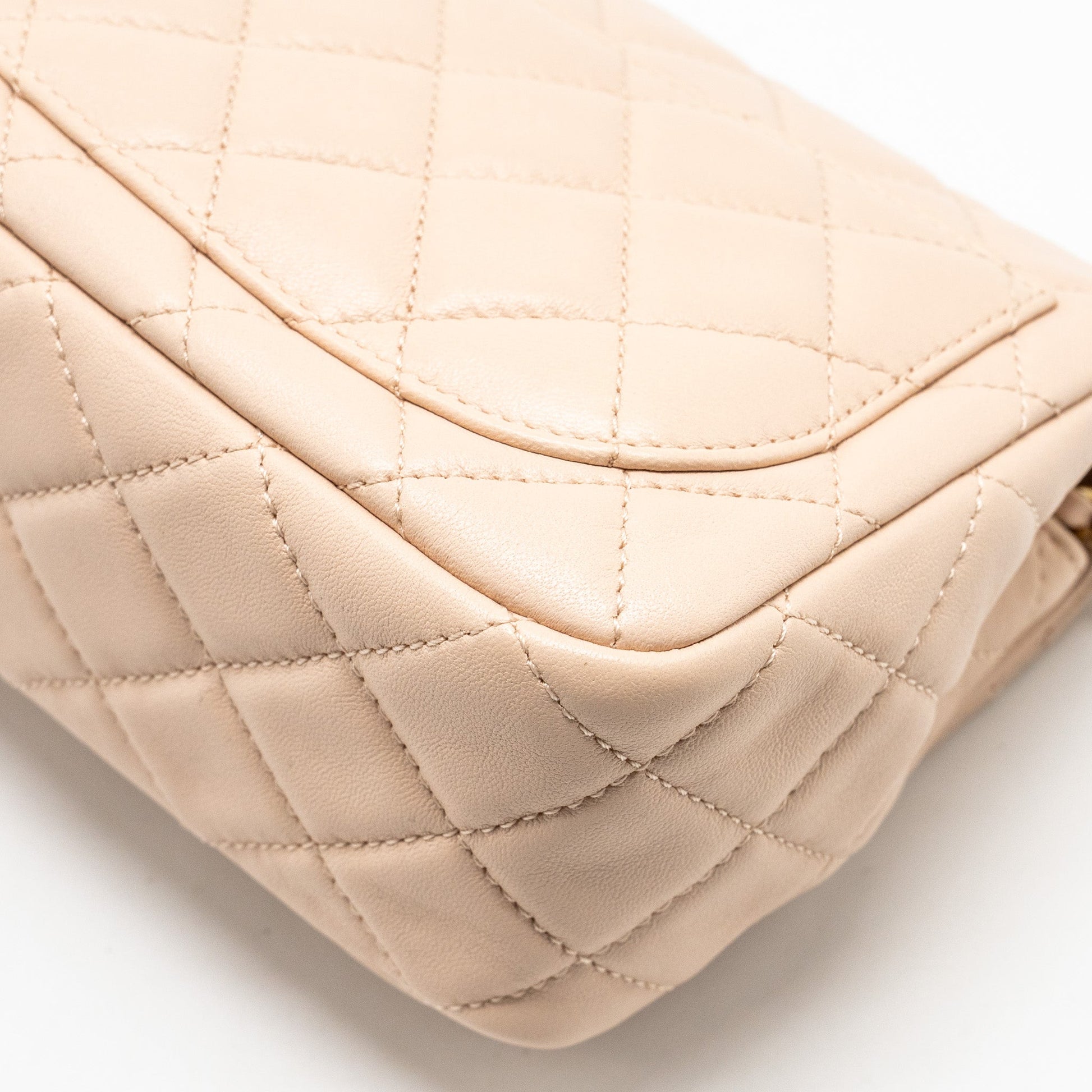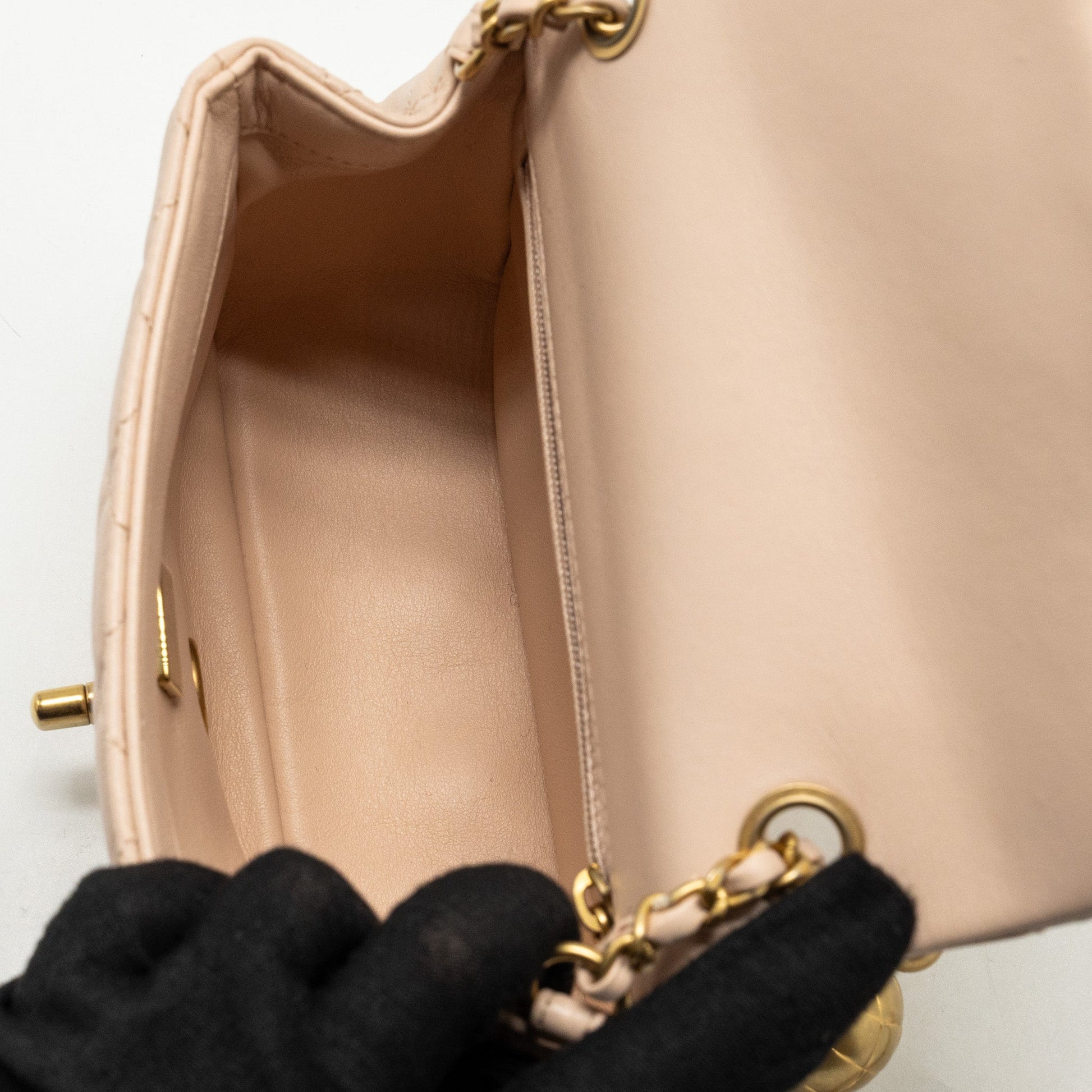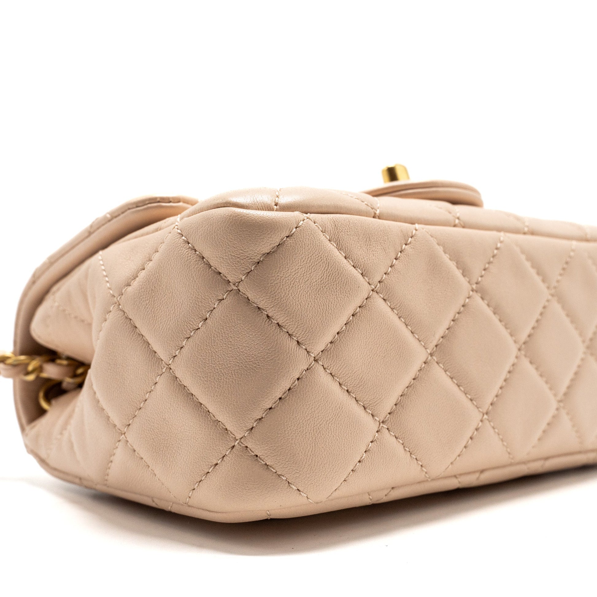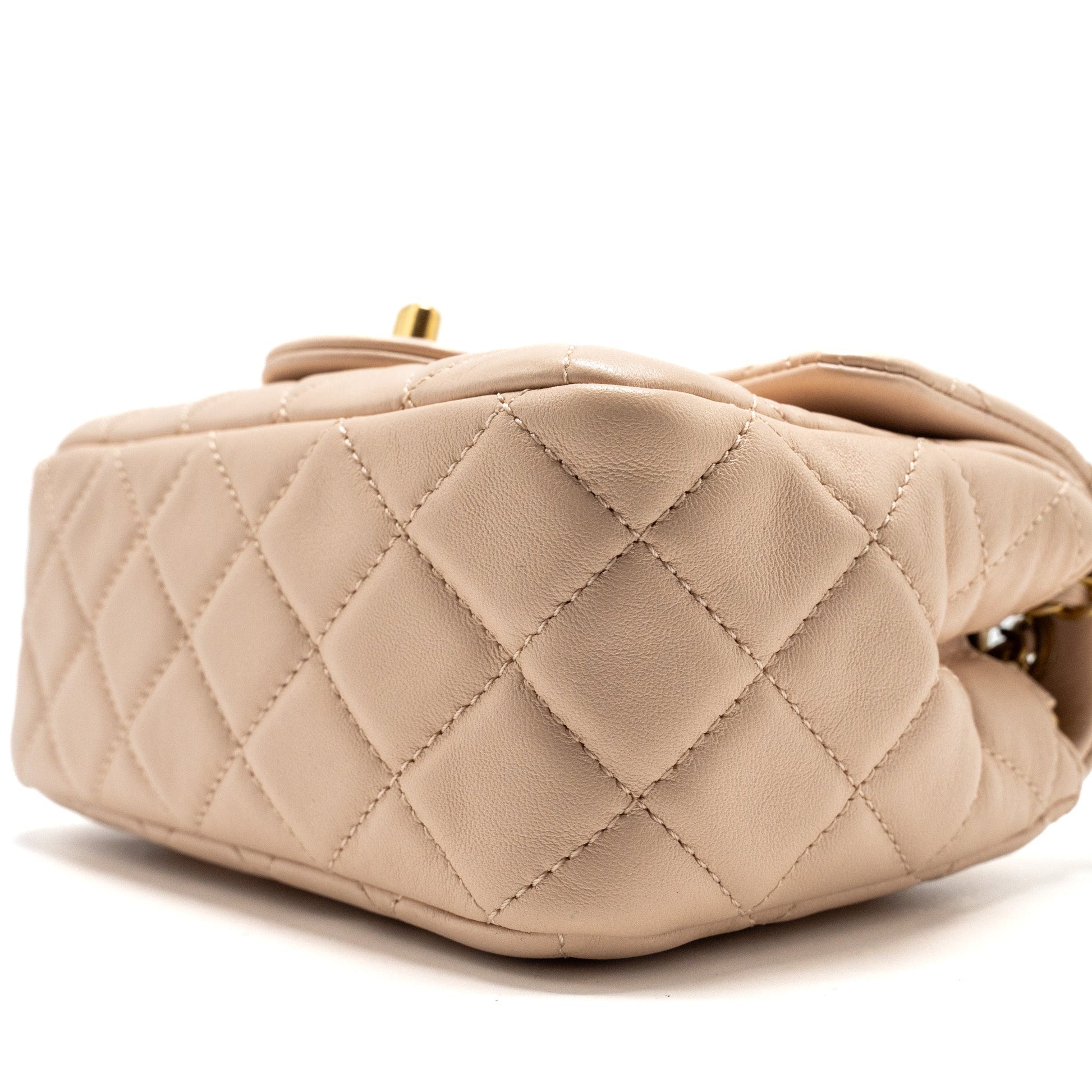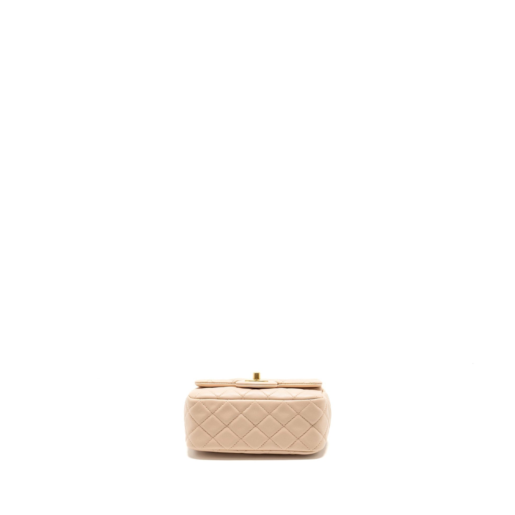 Chanel Pearl Crush Mini Square Flap Bag Lambskin Light Beige GHW (Microchip)