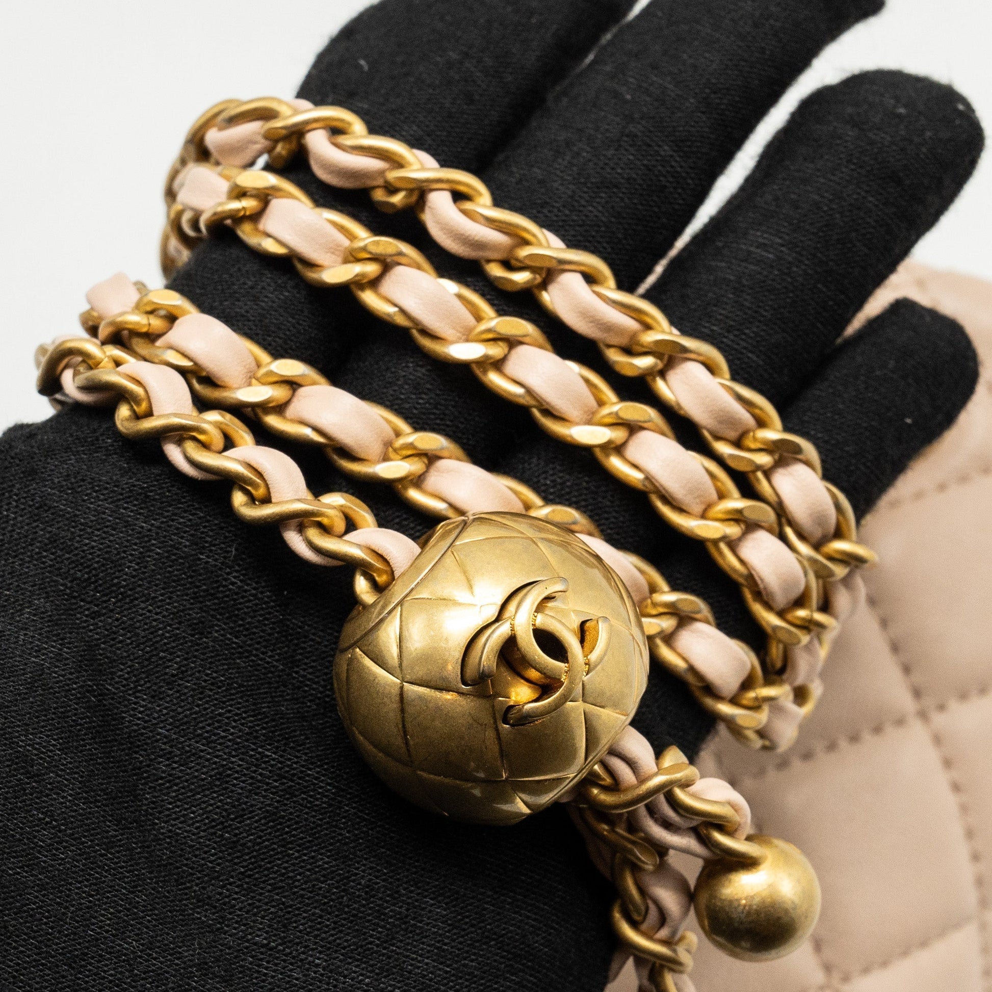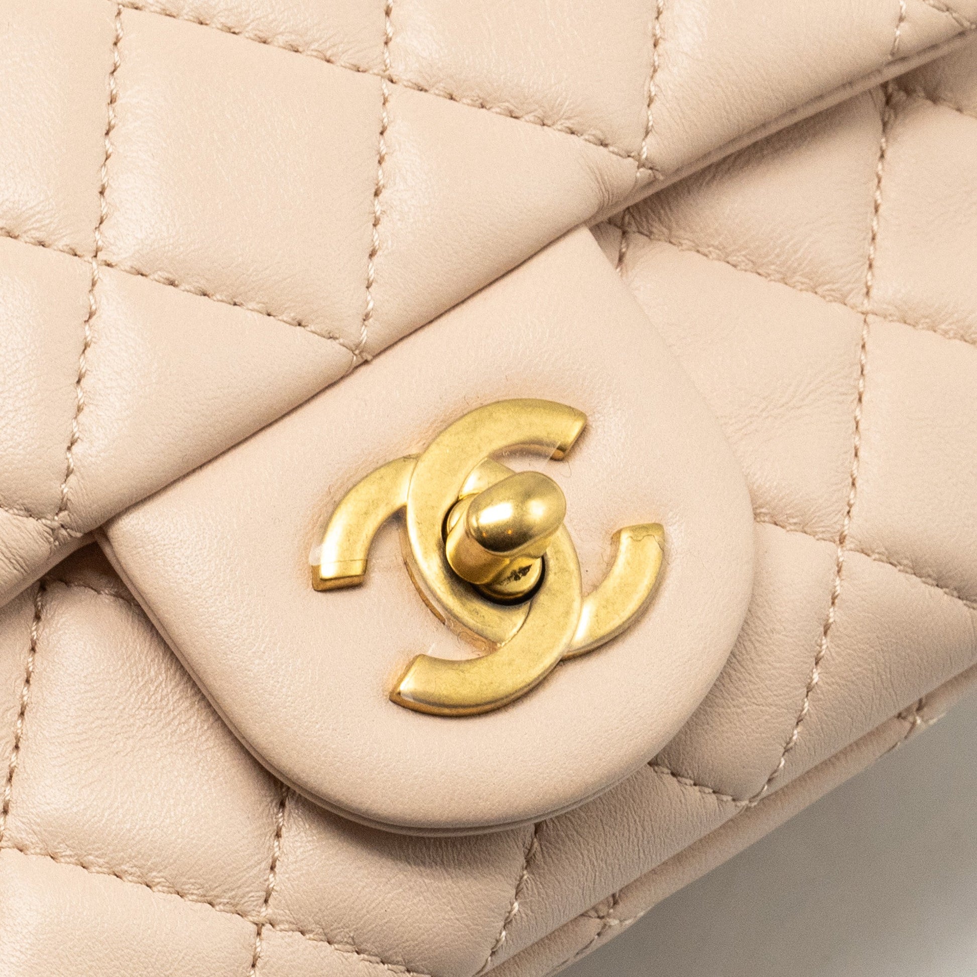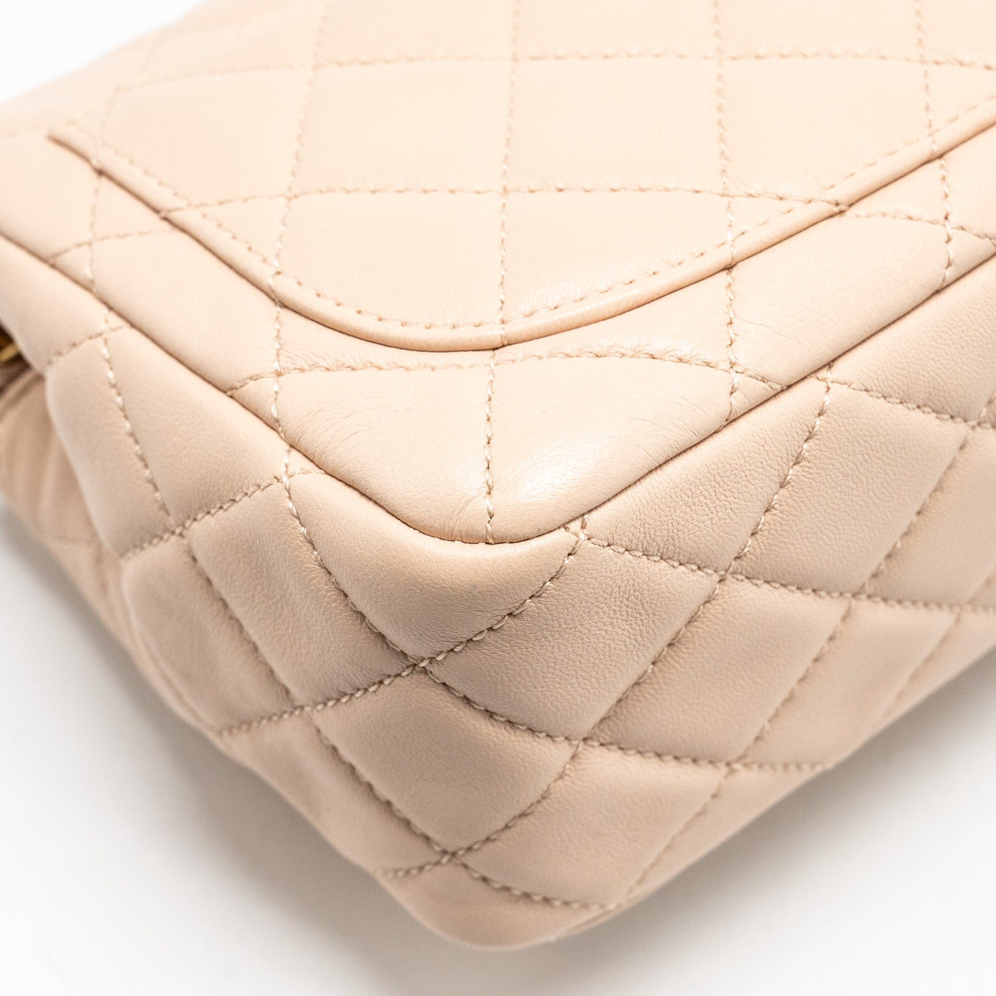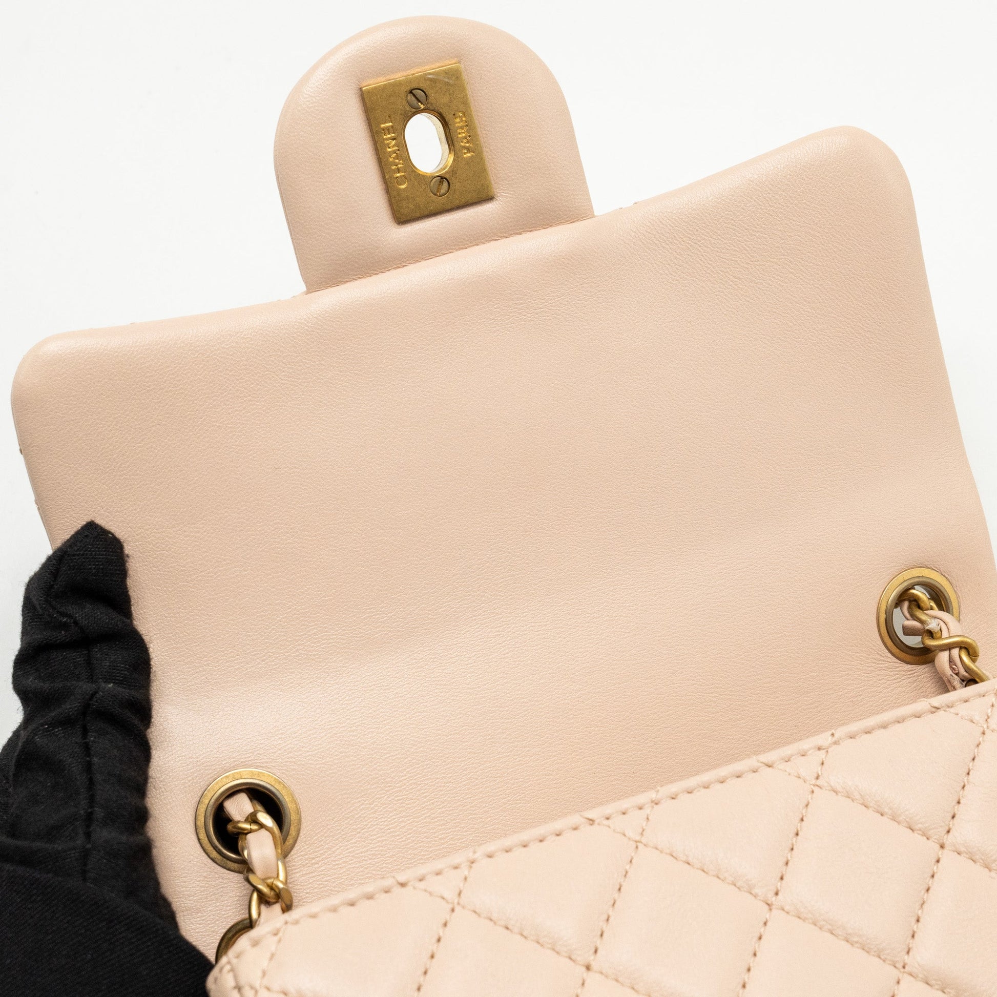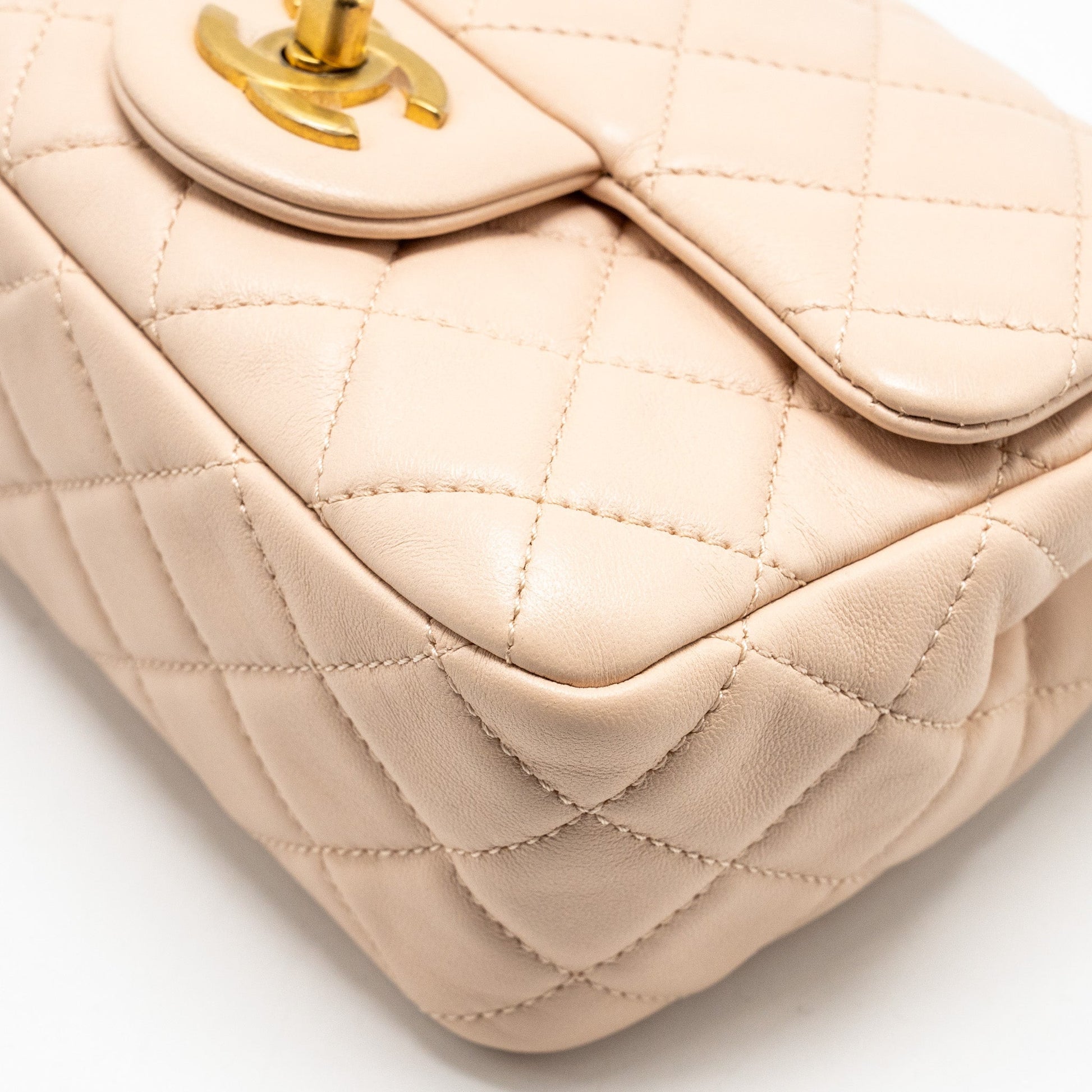 Chanel Pearl Crush Mini Square Flap Bag Lambskin Light Beige GHW (Microchip)