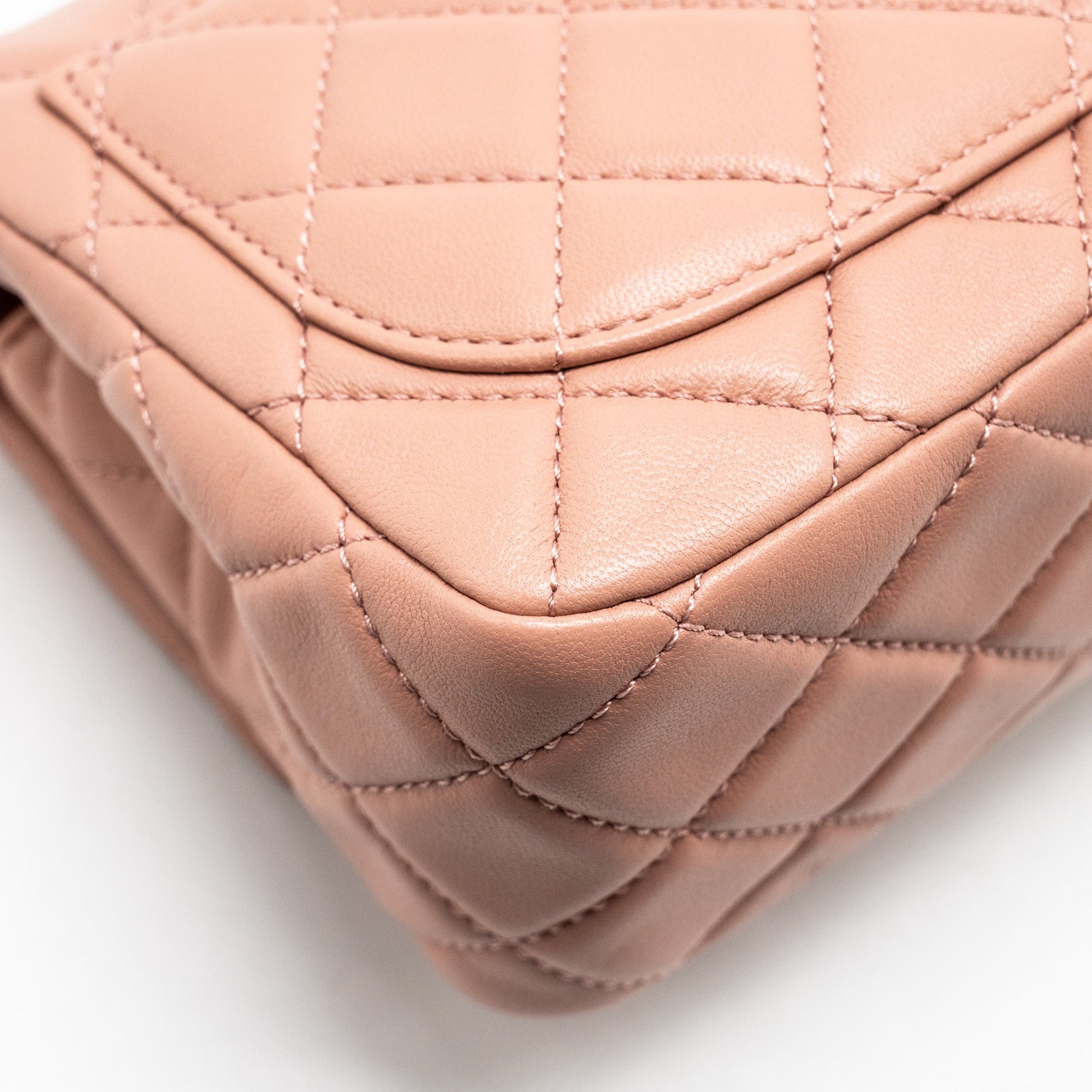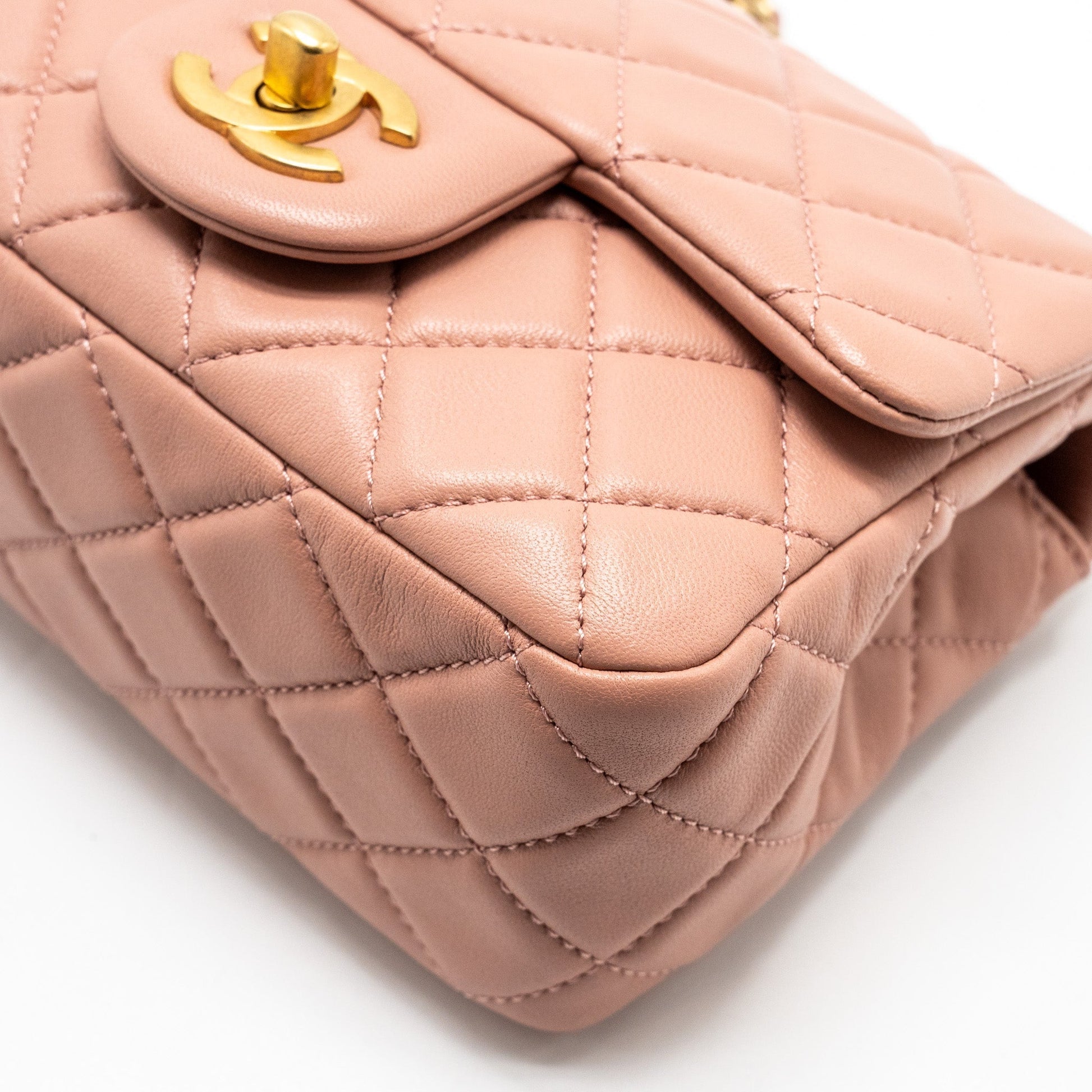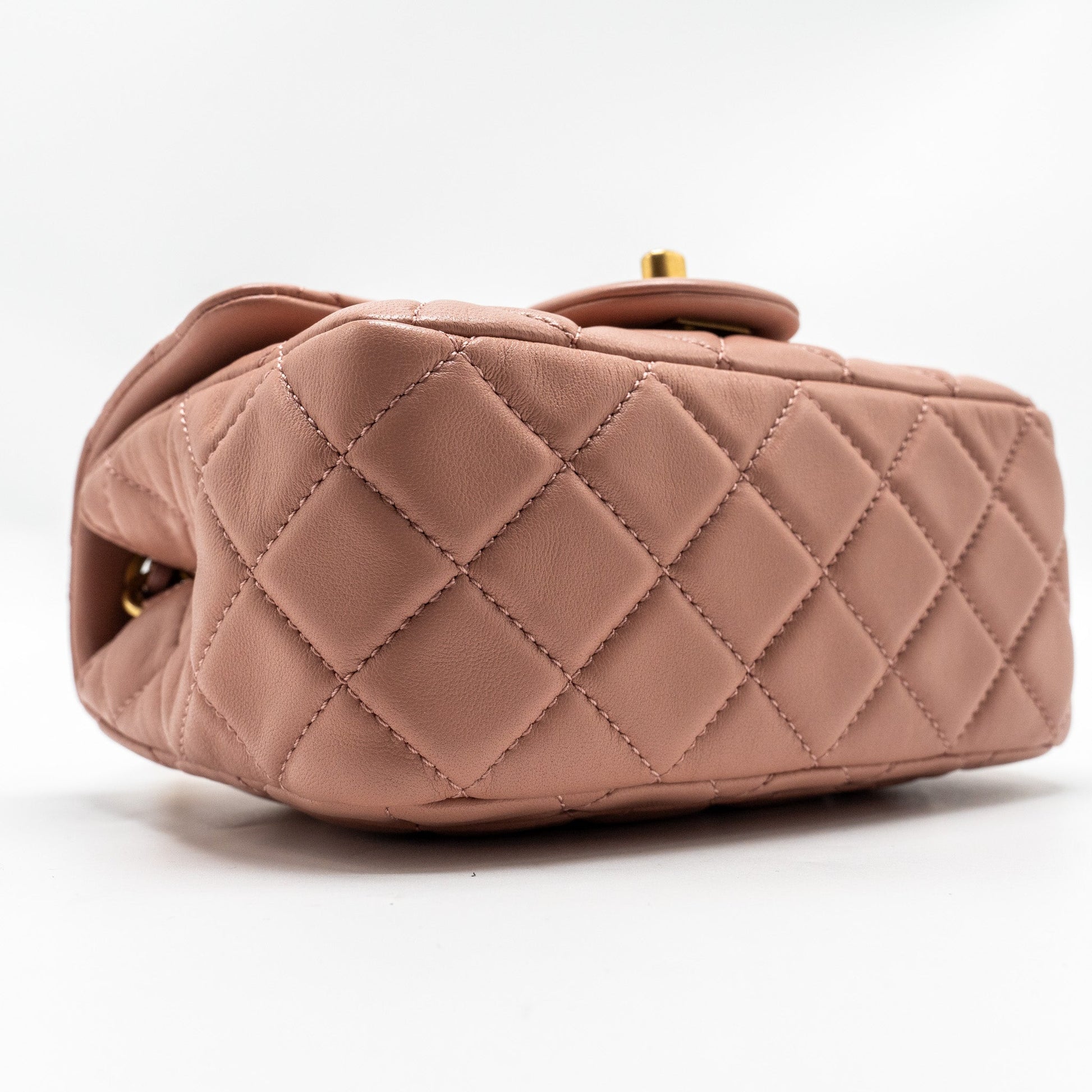 Chanel Pearl Crush Mini Square Flap Bag Lambskin Pink GHW(Microchip)
