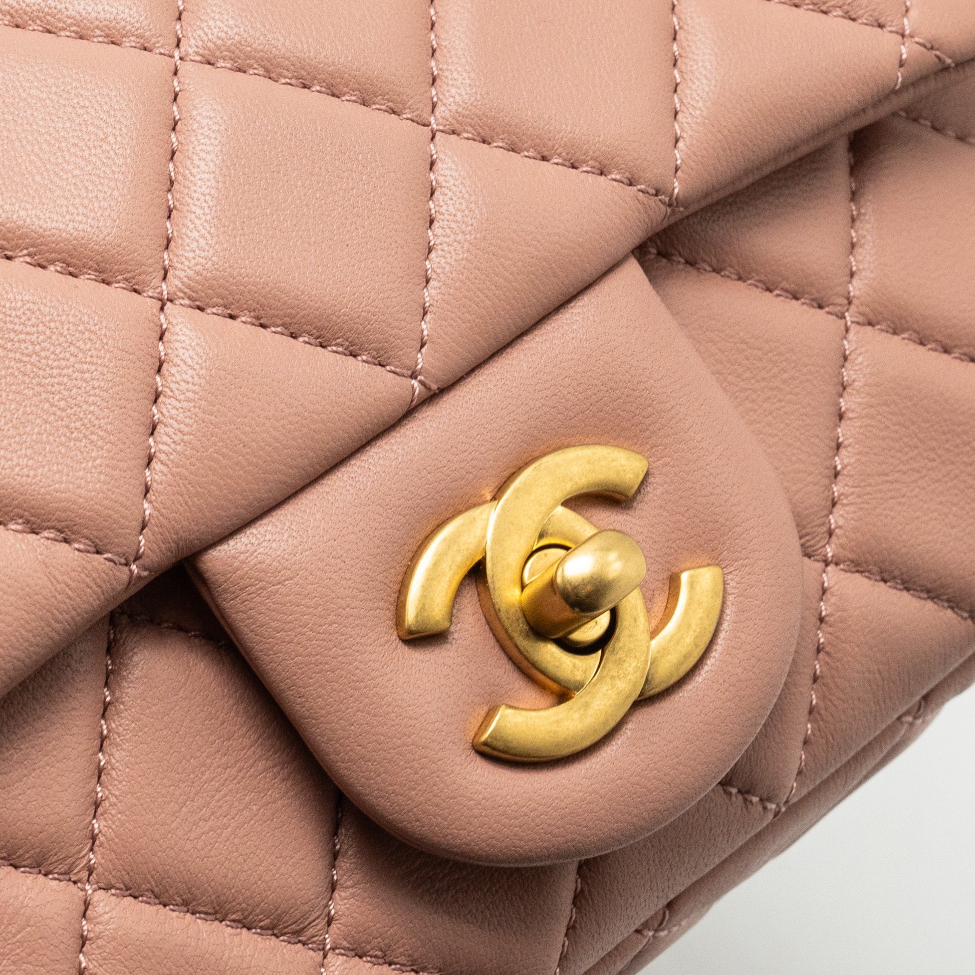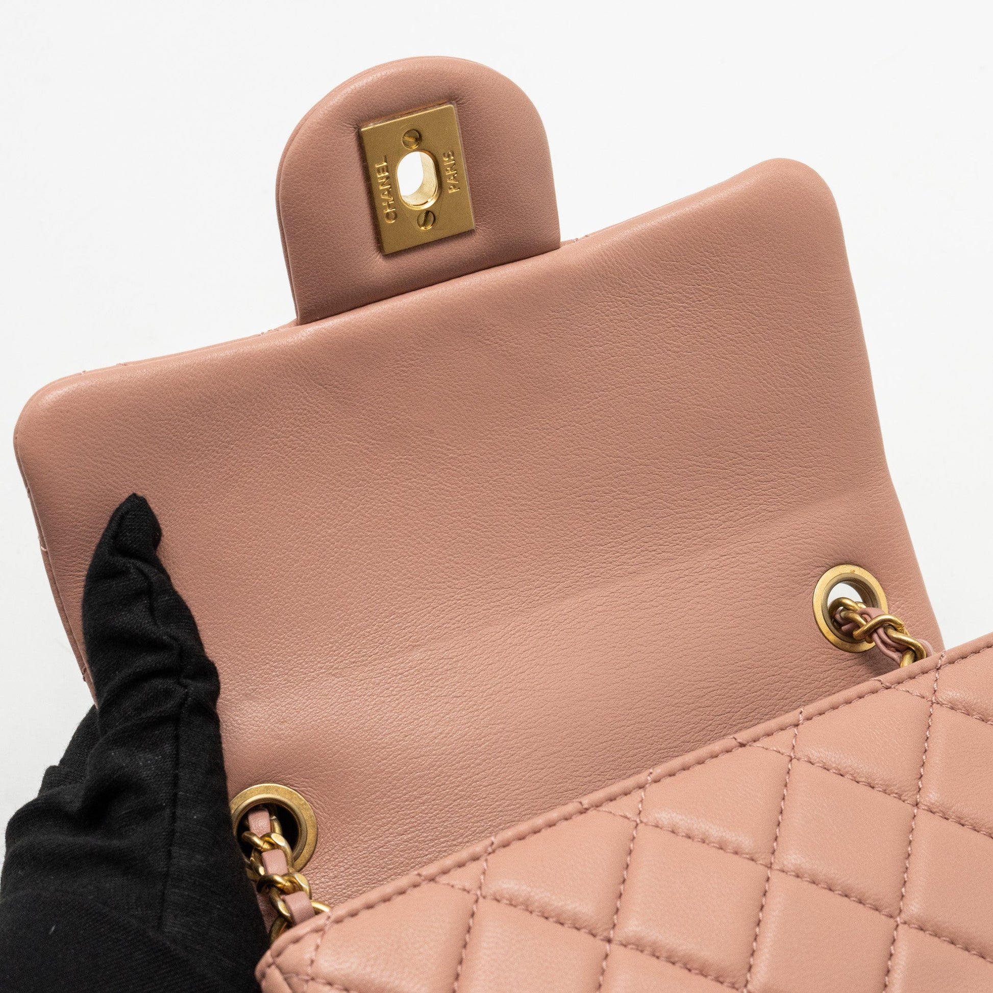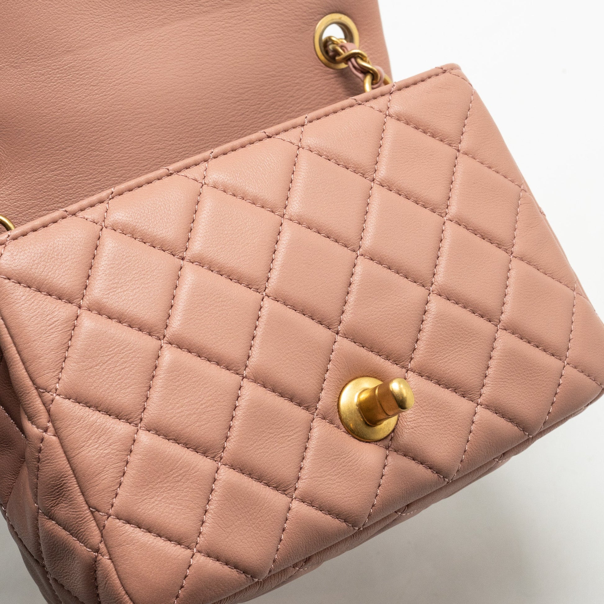 Chanel Pearl Crush Mini Square Flap Bag Lambskin Pink GHW(Microchip)