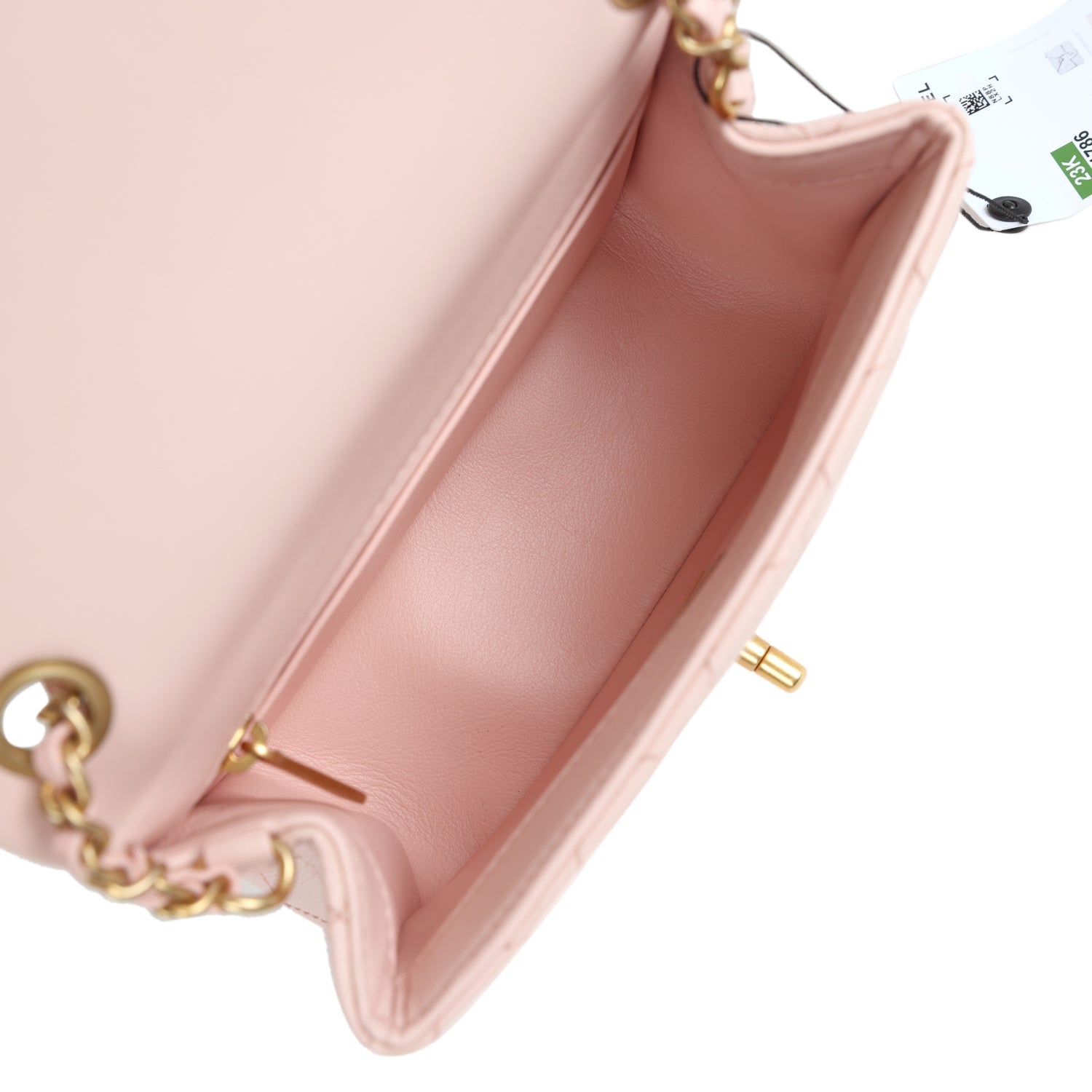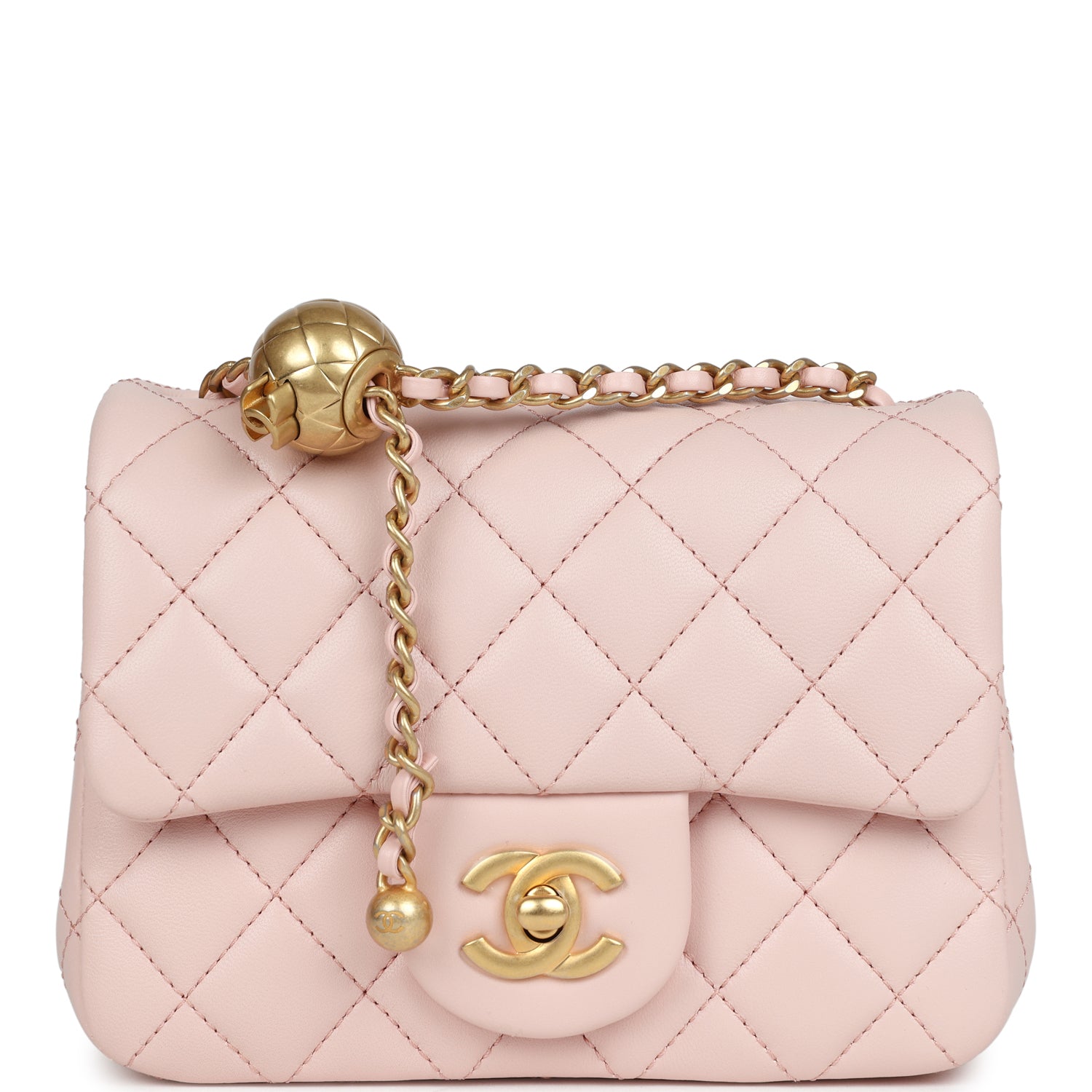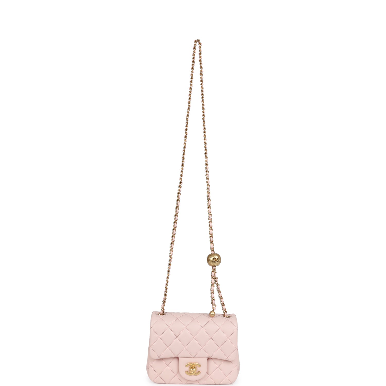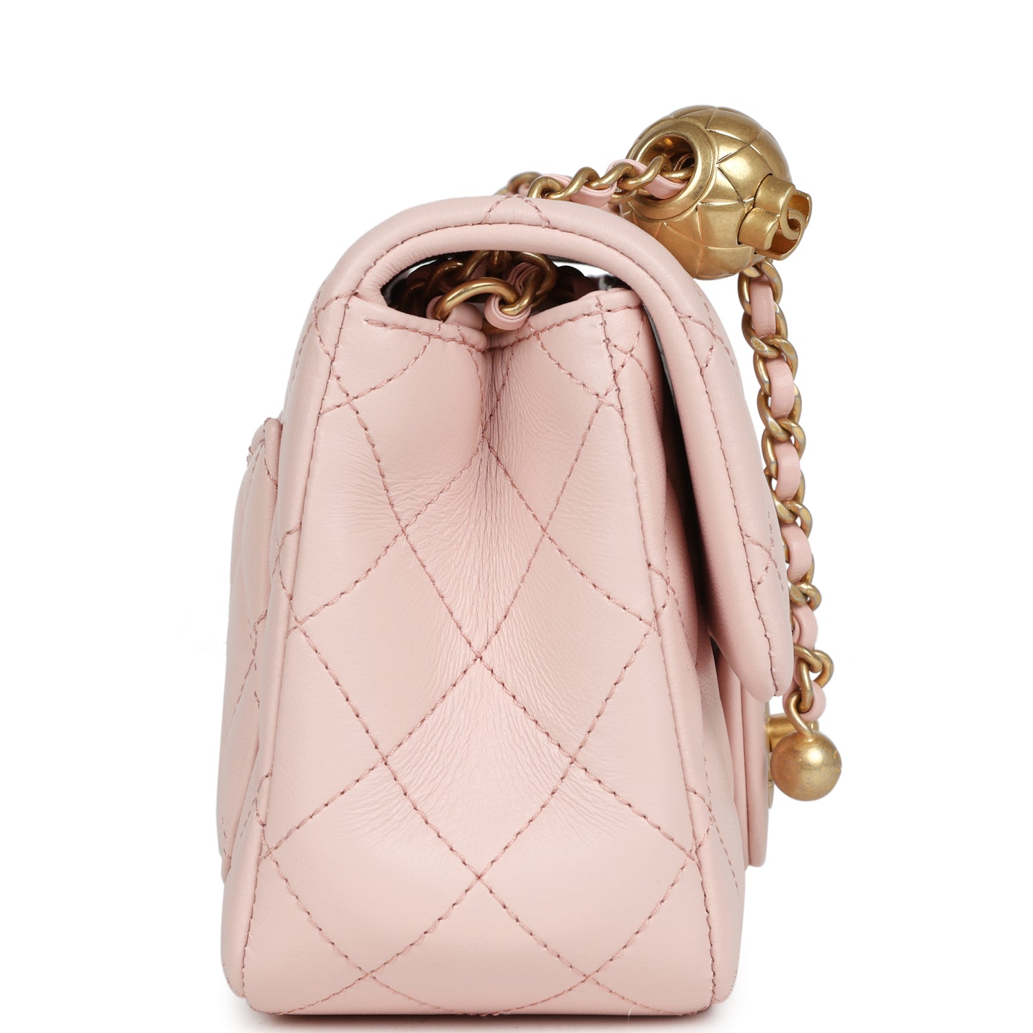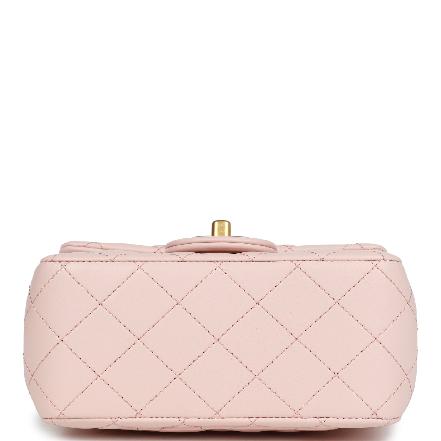 Chanel Pearl Crush Mini Square Flap Bag Light Pink Lambskin Antique Gold Hardware