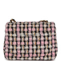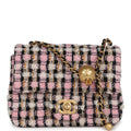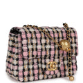 Chanel Pearl Crush Mini Square Flap Bag Pink and Black Tweed Antique Gold Hardware