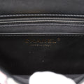 The interior is lined in black leather and features a zipper pocket with Chanel pull and an open pocket below.